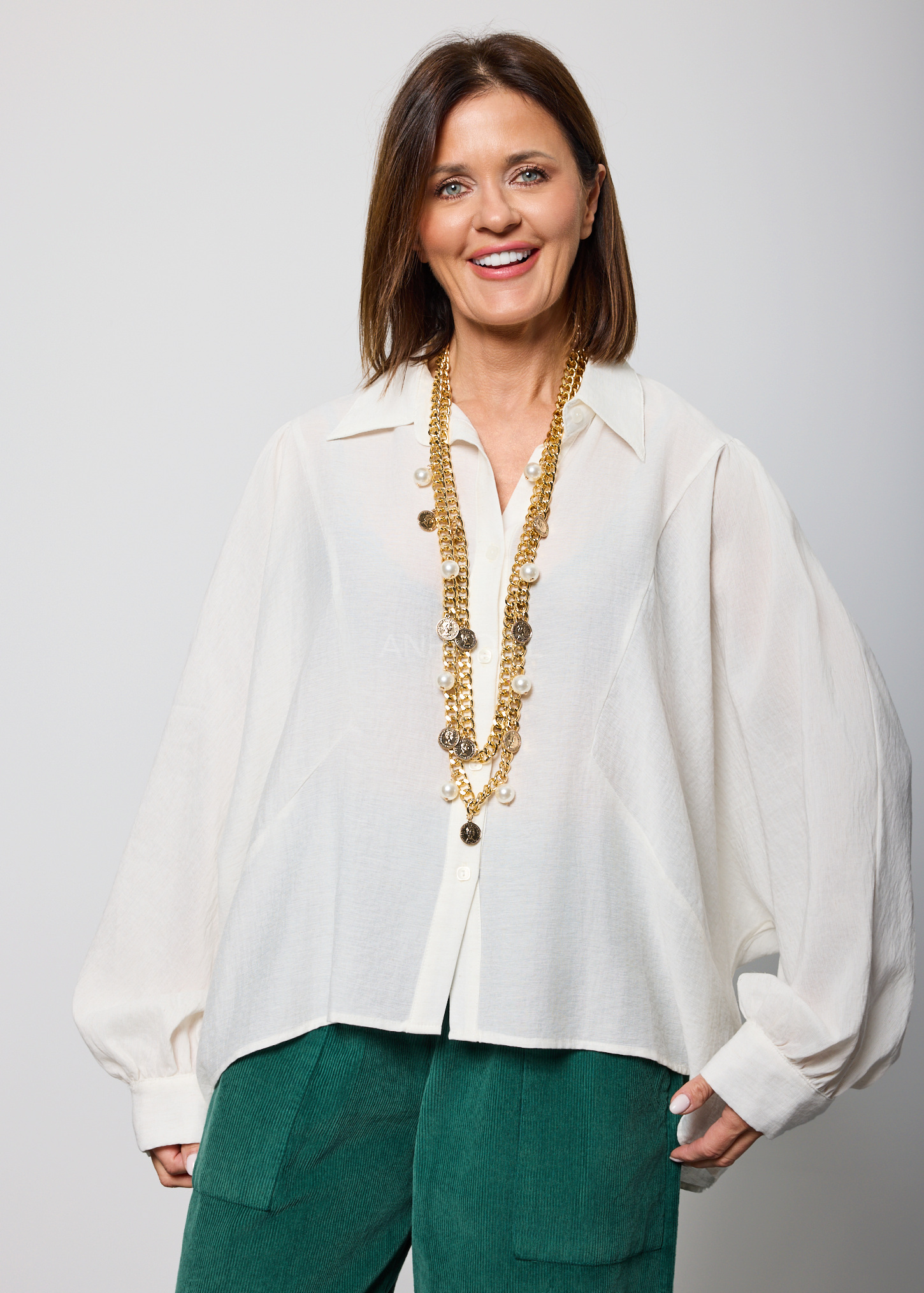 Koszula Batwing Biała - Luźna koszula w kolorze białym z efektownym, nietoperzowym rękawem. Nowoczesny basic, który robi całą stylizację. Swobodna, lekka i maksymalnie komfortowa.