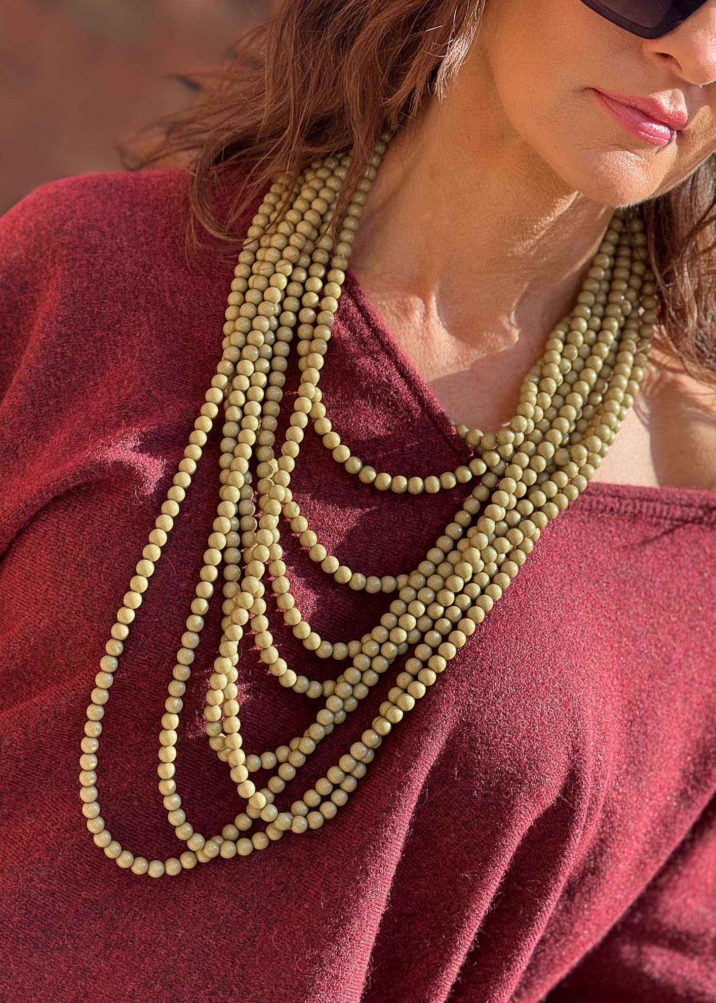 Naszyjnik boho wielowarstwowy Recoral Oliwkowy