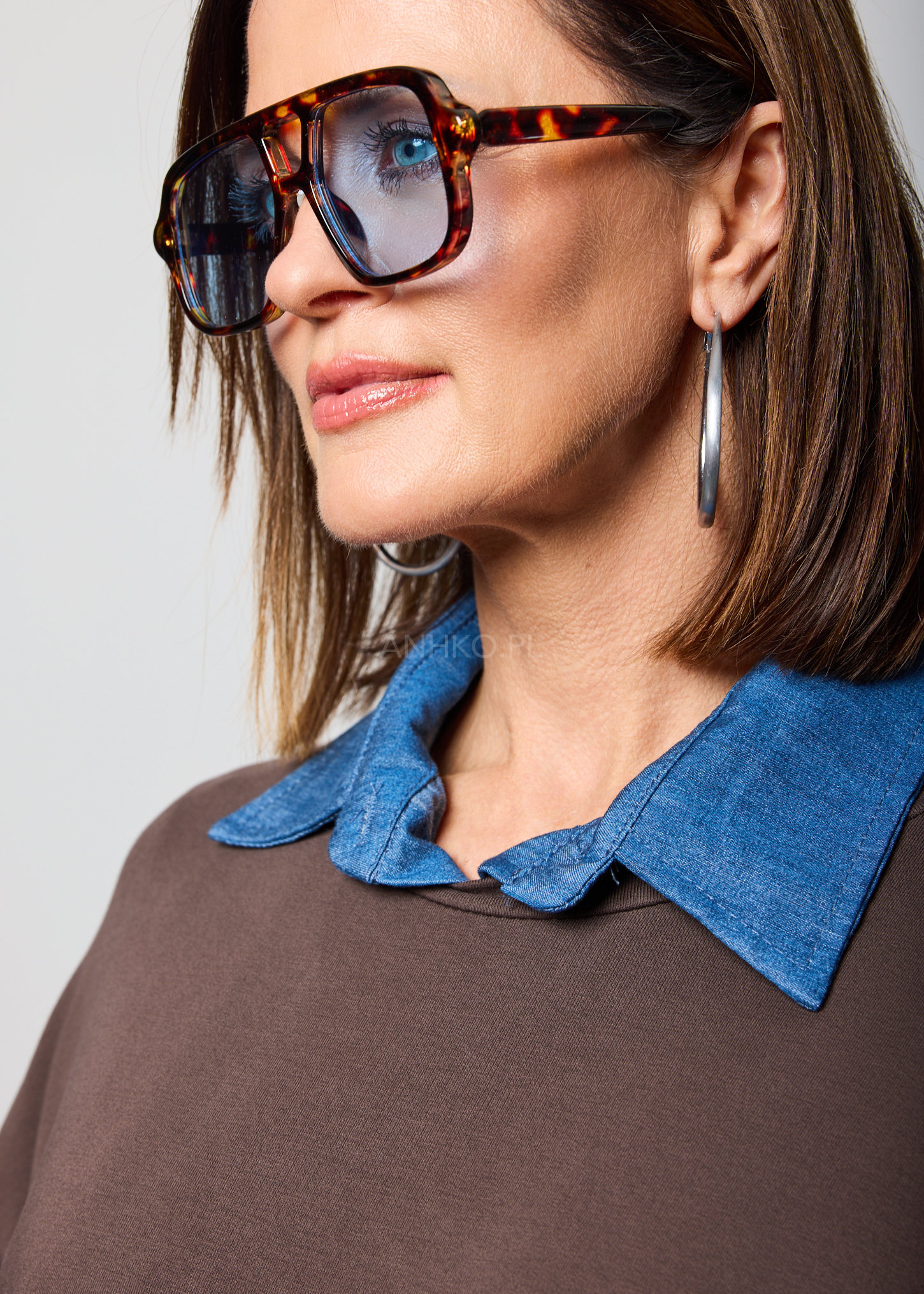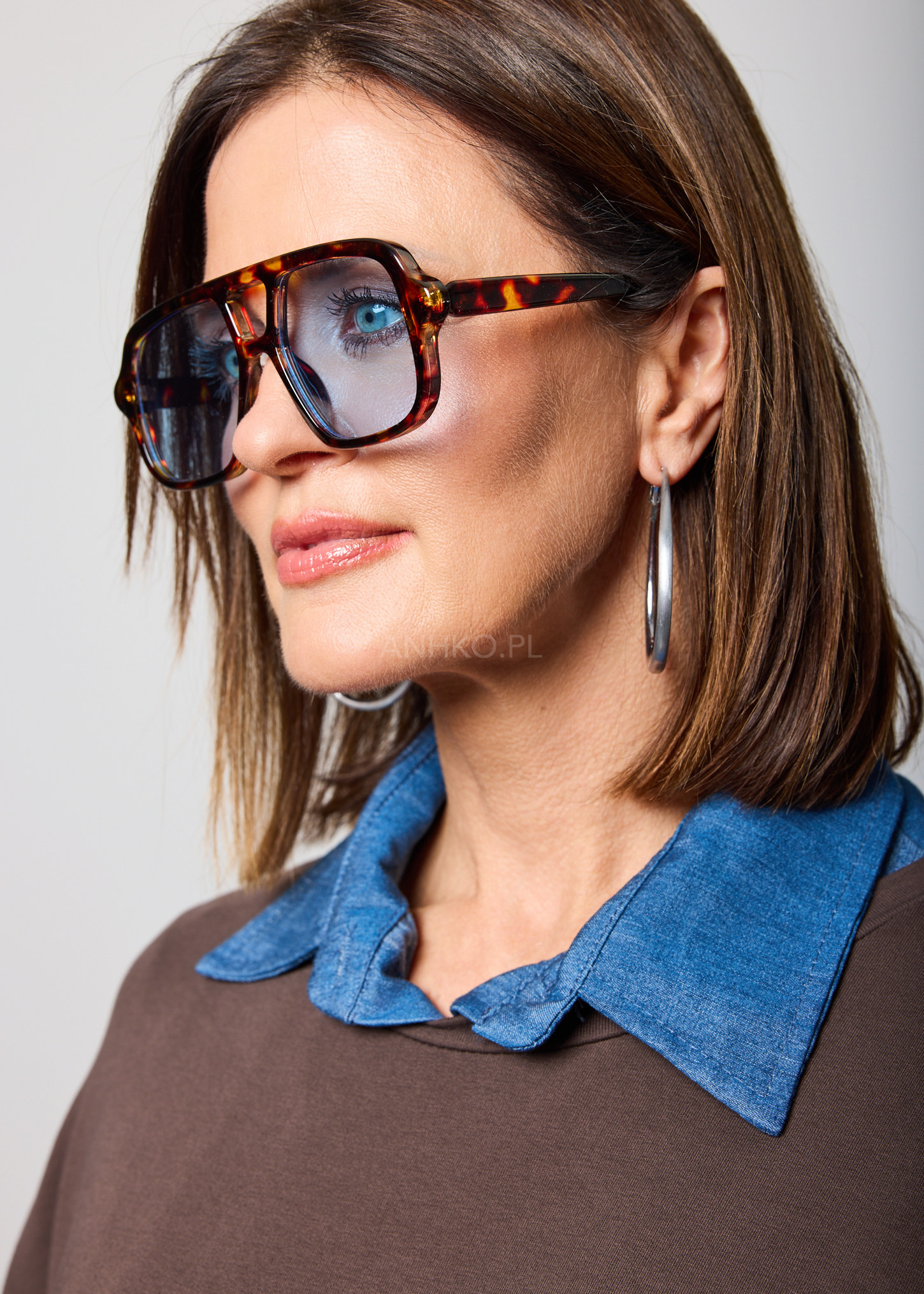 Połączenie ponadczasowego wzoru tortoise z nowoczesnym akcentem w postaci jasnoniebieskich soczewek. Prostokątny kształt oprawek podkreśla rysy twarzy i doskonale wpisuje się w aktualne trendy. Ciepłe odcienie brązu i bursztynu kontrastują z chłodnym kolorem soczewek, tworząc efektowny, a jednocześnie uniwersalny design. Model idealnie pasuje do letnich stylizacji – lnianych koszul, sukienek, jeansów czy basicowych t-shirtów. Sprawdzi się na co dzień, podczas wakacyjnych wyjazdów, spacerów, spotkań na świeżym powietrzu oraz jako modny akcent miejskich outfitów.