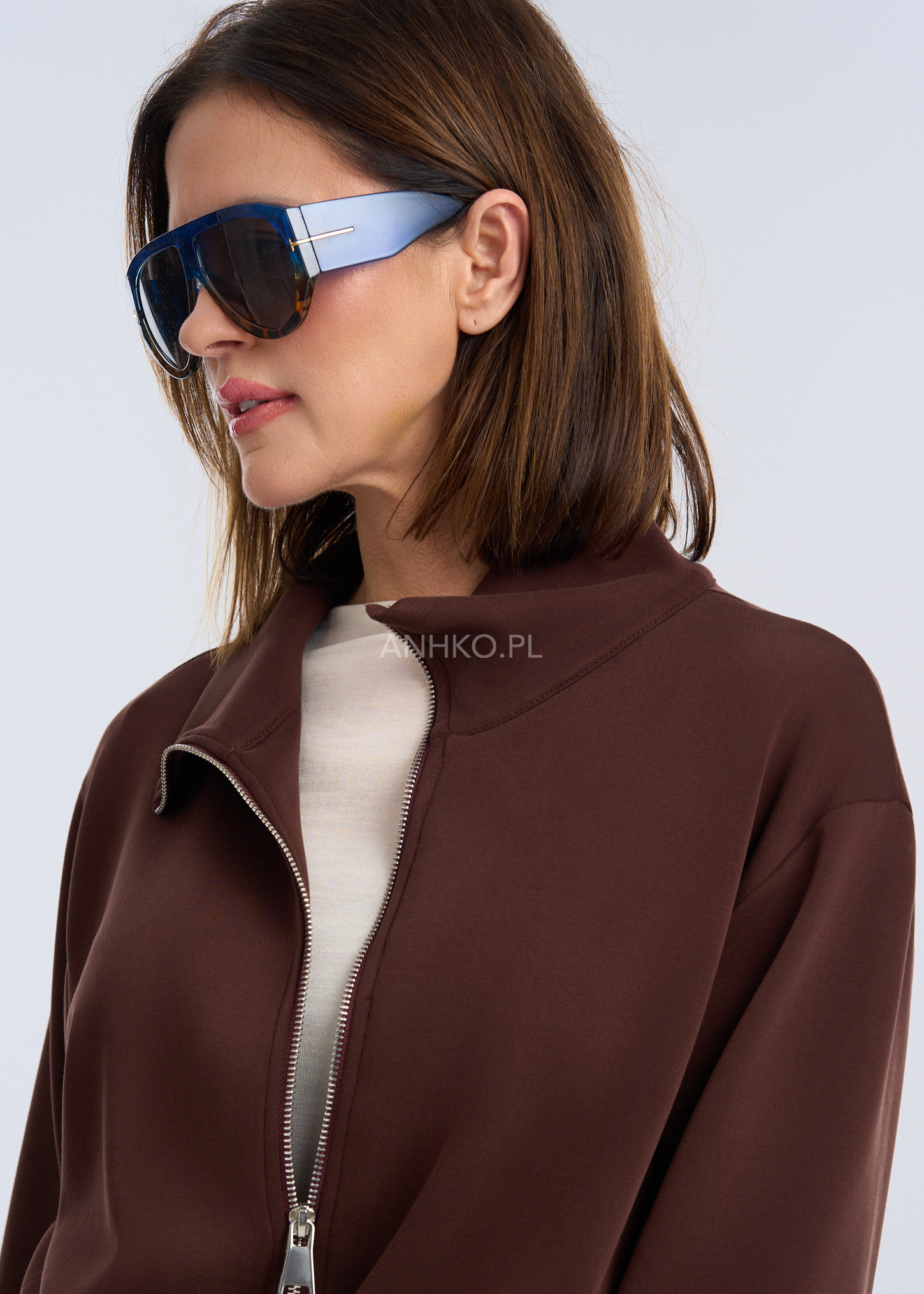 Bluza Virelle Soft Brązowa - Stylowa bluza zapinana na zamek z regulacją w talii, łącząca wygodę i nowoczesny design. Idealna do codziennych stylizacji, pracy oraz niezobowiązujących wyjść, gdzie liczy się komfort i estetyczna forma.