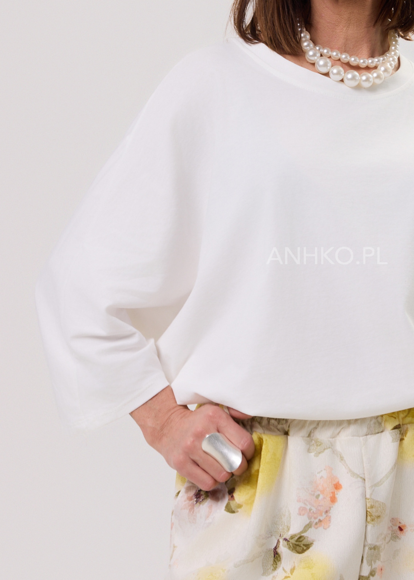 Bluzka Soft Flow Oversize Biała z Naszyjnikiem