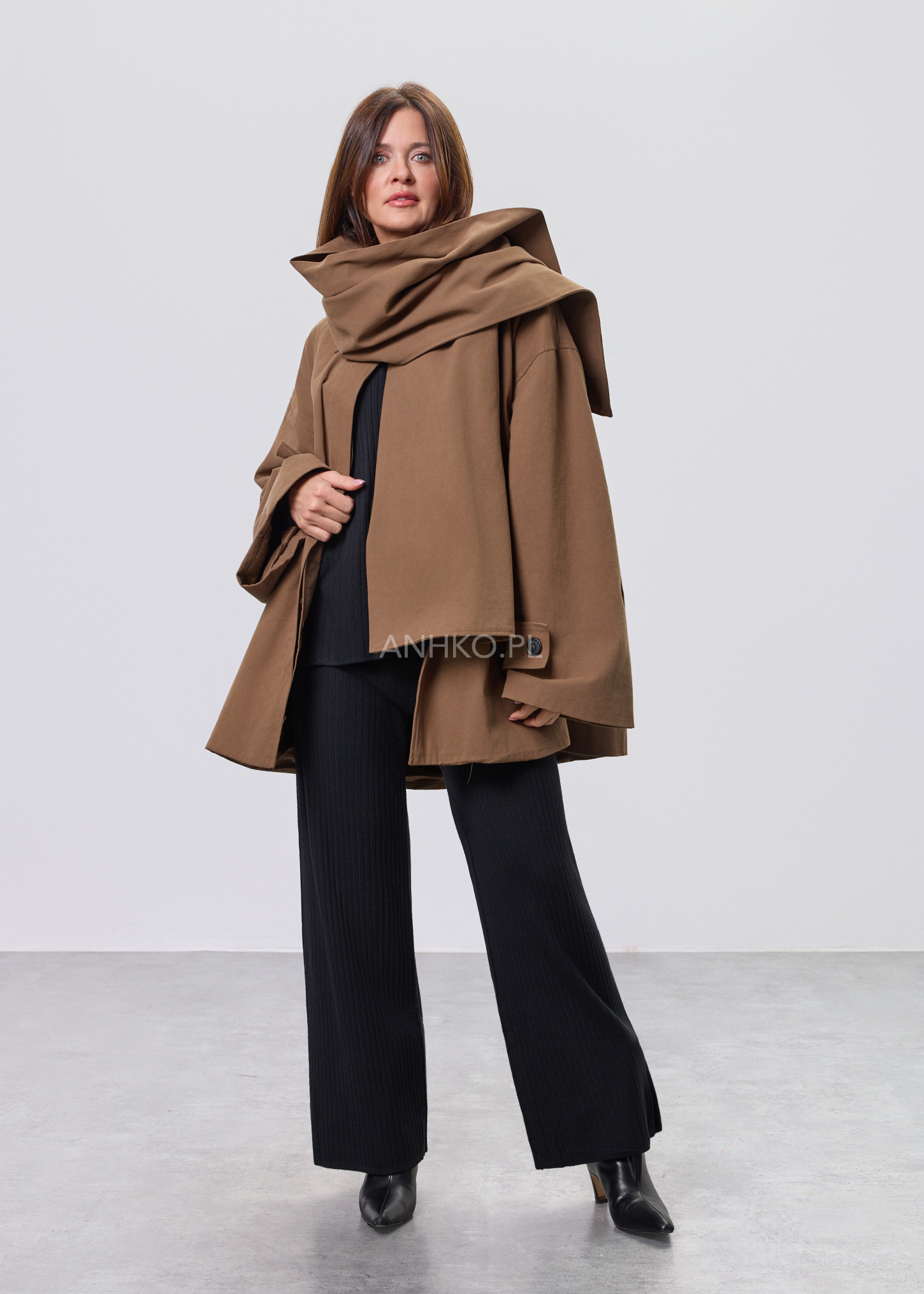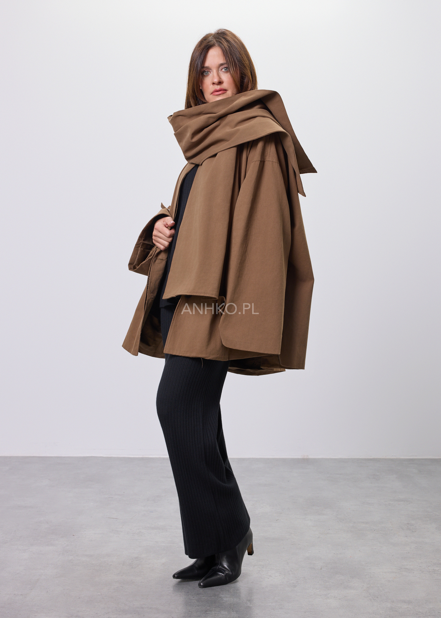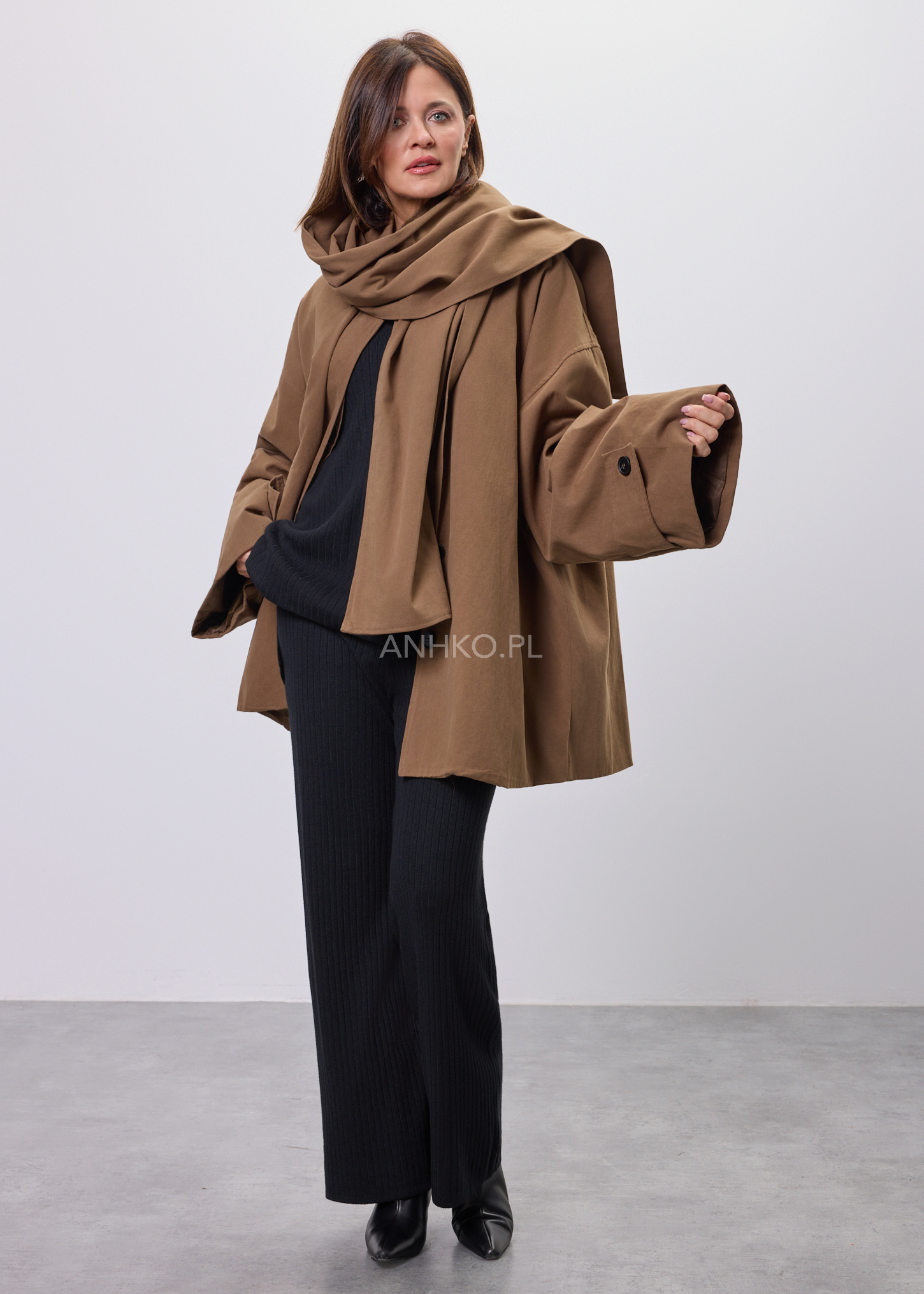Płaszcz Krótki Noelle Modern z Szalem Camel