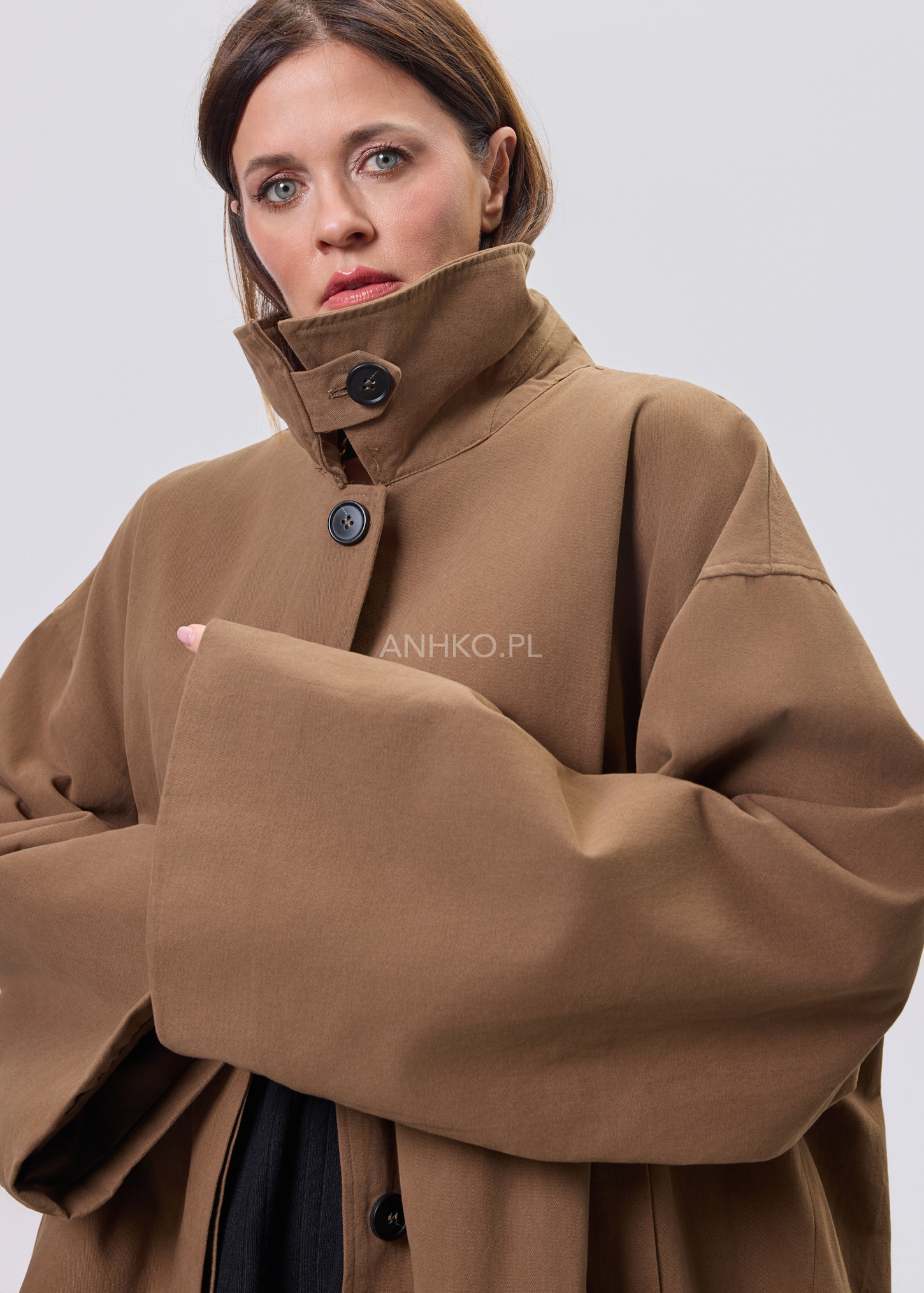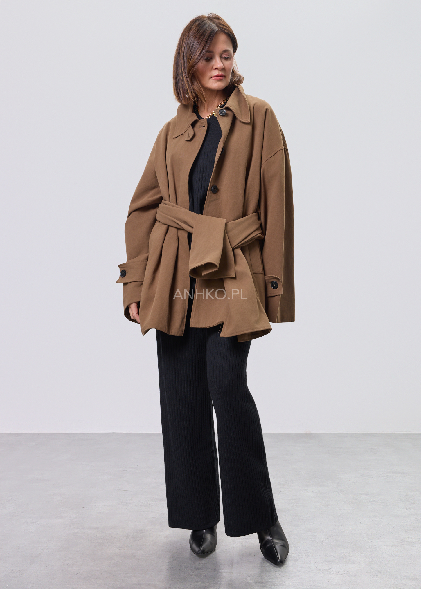 Ten elegancki płaszcz to doskonały wybór dla kobiet ceniących minimalistyczny styl i uniwersalne rozwiązania. Model o luźniejszym kroju świetnie układa się na sylwetce, dając swobodę ruchów i wysoki komfort noszenia. Zapinany na guziki, z klasycznym kołnierzem oraz praktycznymi kieszeniami po bokach, sprawdzi się zarówno w codziennych stylizacjach do pracy, jak i podczas wyjść na spotkania czy spacery po mieście. Dodatkowym atutem jest lekka podszewka, która zwiększa wygodę użytkowania. Płaszcz można nosić zarówno do spodni, jak i sukienek, tworząc spójne, nowoczesne zestawy na sezon przejściowy