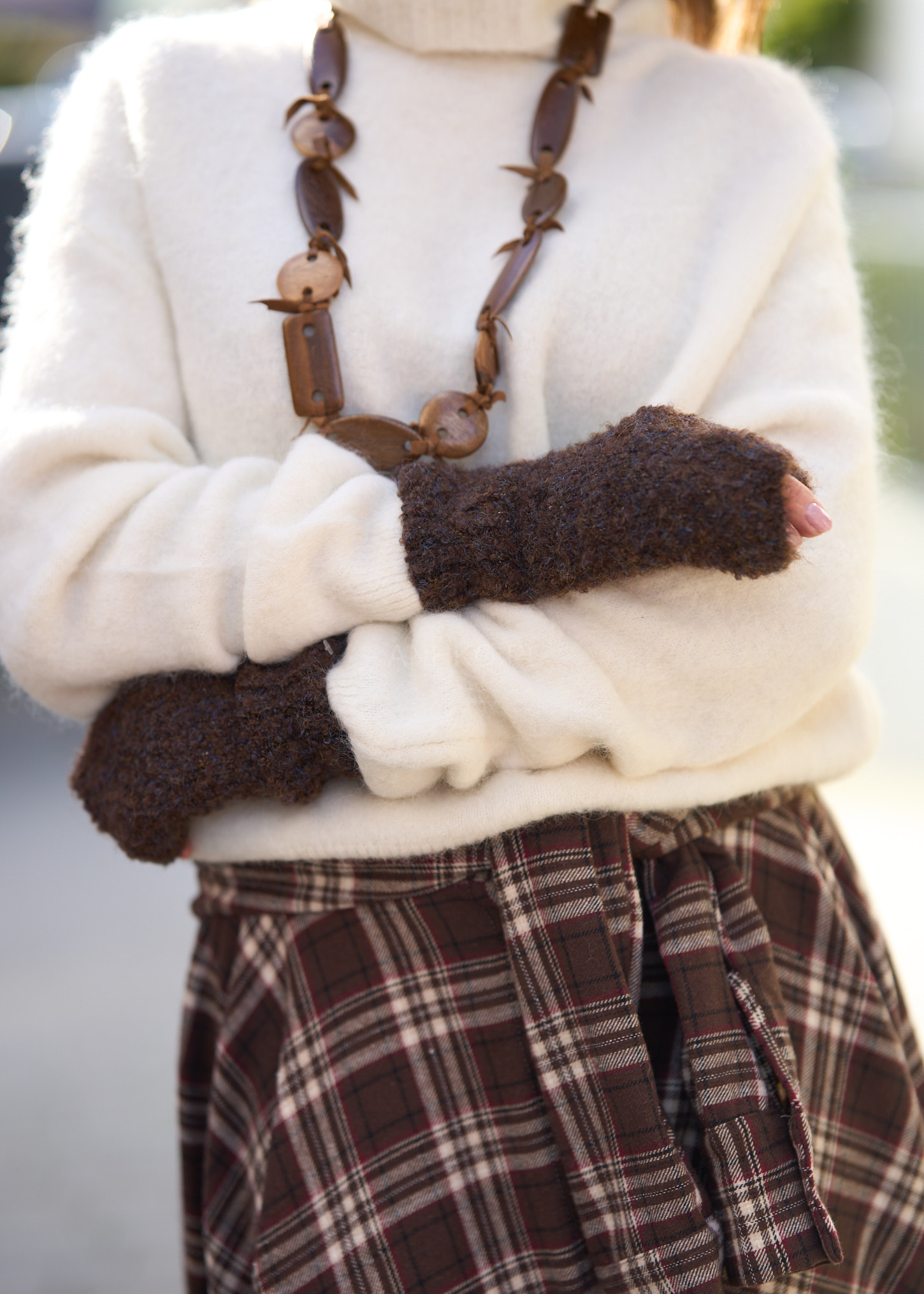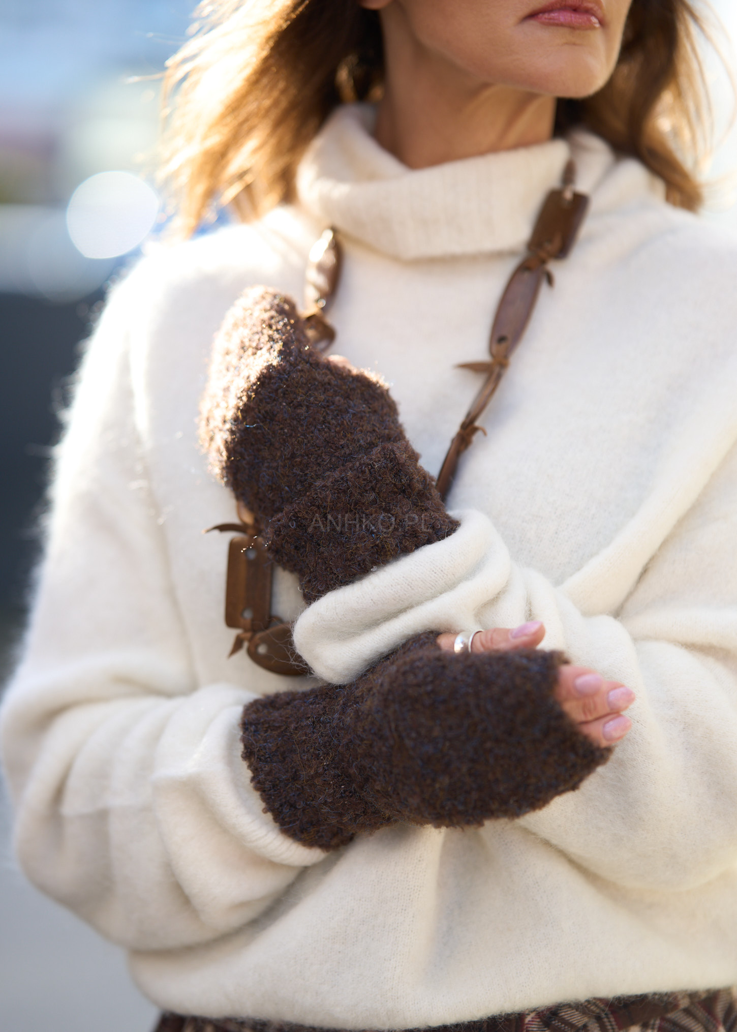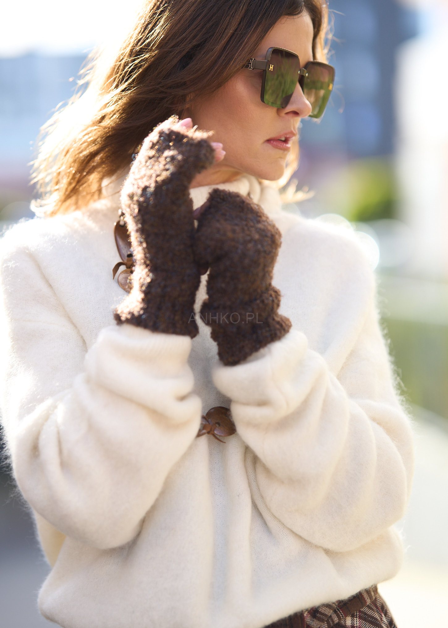 Idealny dodatek dla miłośniczek ciepła i oryginalnej faktury. Wykonane z miękkiej dzianiny boucle, łączą odcienie brązu, karmelu i błękitu, tworząc modny, naturalny efekt melanżu. Dzięki otwartym końcówkom palców zapewniają wygodę i swobodę ruchu – świetnie sprawdzą się podczas pracy, jazdy autem lub spacerów w chłodne dni. Doskonale komponują się z płaszczem, ponchem czy swetrem w stonowanych kolorach. To praktyczny i stylowy element garderoby, który doda przytulności każdej jesiennej stylizacji.