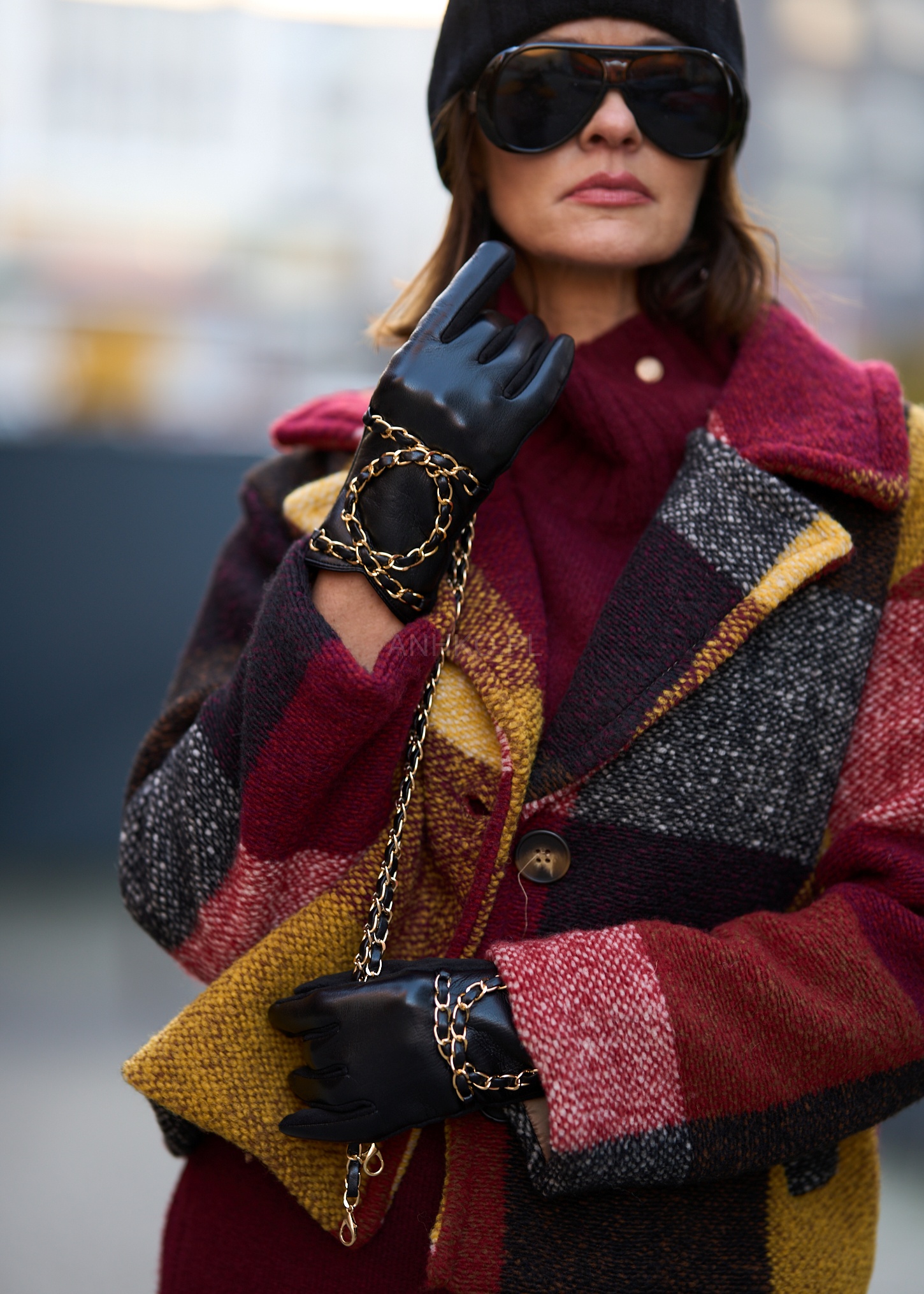Ekskluzywne rękawiczki Visconti to połączenie klasy i nowoczesnego stylu. Uszyte z wysokiej jakości skóry naturalnej w głębokim odcieniu czerni, zdobione efektownym złotym łańcuchem, który dodaje im wyjątkowego charakteru. Wewnętrzna, miękka warstwa zapewnia komfort i ciepło, a precyzyjne wykonanie gwarantuje trwałość. Ten model idealnie sprawdzi się w eleganckich stylizacjach – do płaszcza, trencza czy wełnianego poncza. Rękawiczki Visconti to nie tylko ochrona przed zimnem, ale także wyraz kobiecego stylu i klasy.