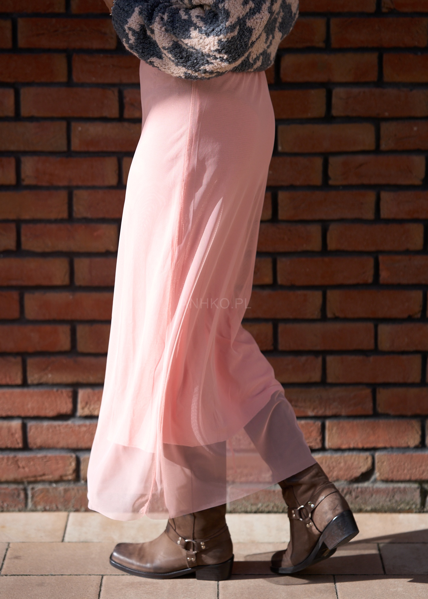 To spódnica, która łączy lekkość, elegancję i nowoczesny styl. Wykonana z półprzezroczystej siateczki z podszewką, nadaje sylwetce zwiewnego charakteru, a pastelowy odcień różu dodaje subtelnego uroku. Dzięki elastycznej talii idealnie dopasowuje się do różnych sylwetek, gwarantując komfort noszenia. To doskonały wybór na letnie dni, wieczorne wyjścia czy specjalne okazje. Można ją zestawić zarówno z elegancką bluzką i szpilkami, jak i luźnym T-shirtem i sneakersami, tworząc efektowny look. Idealna dla kobiet ceniących styl i wygodę.