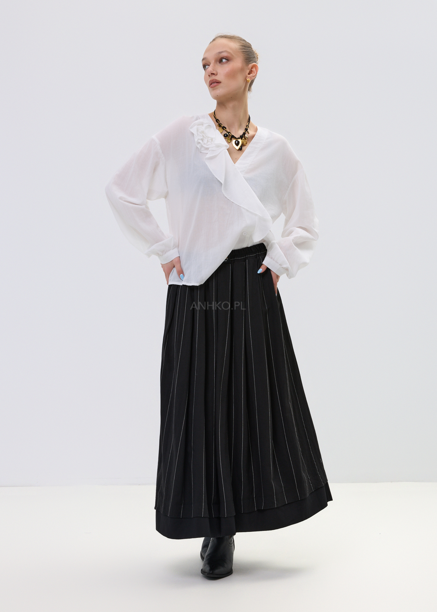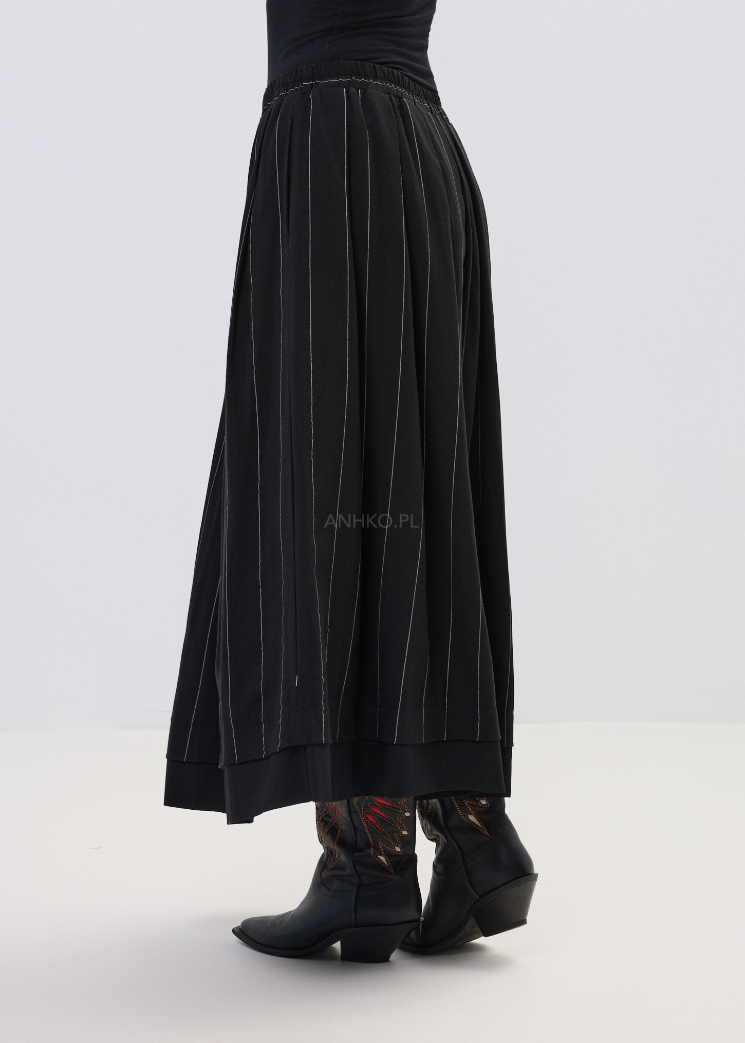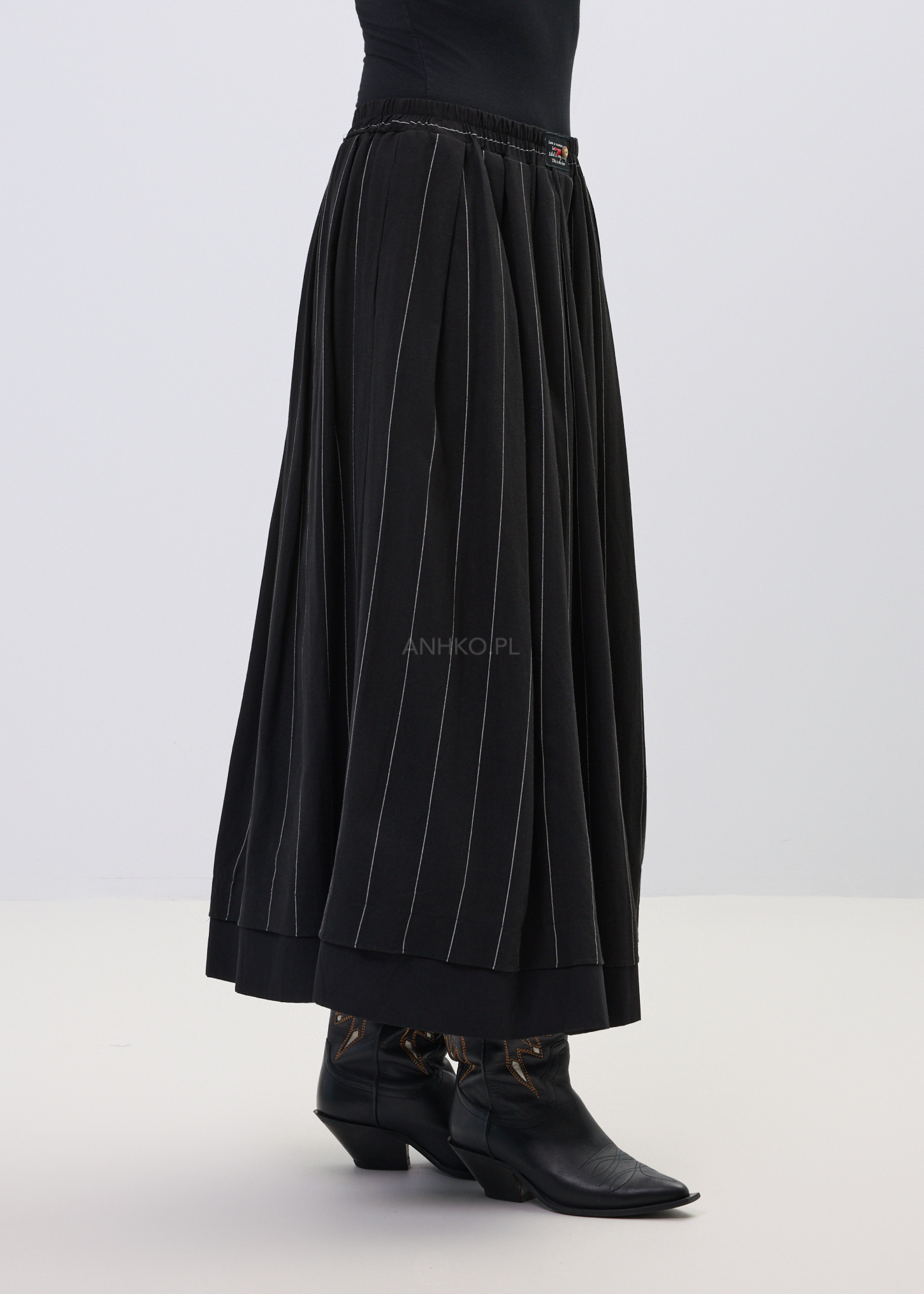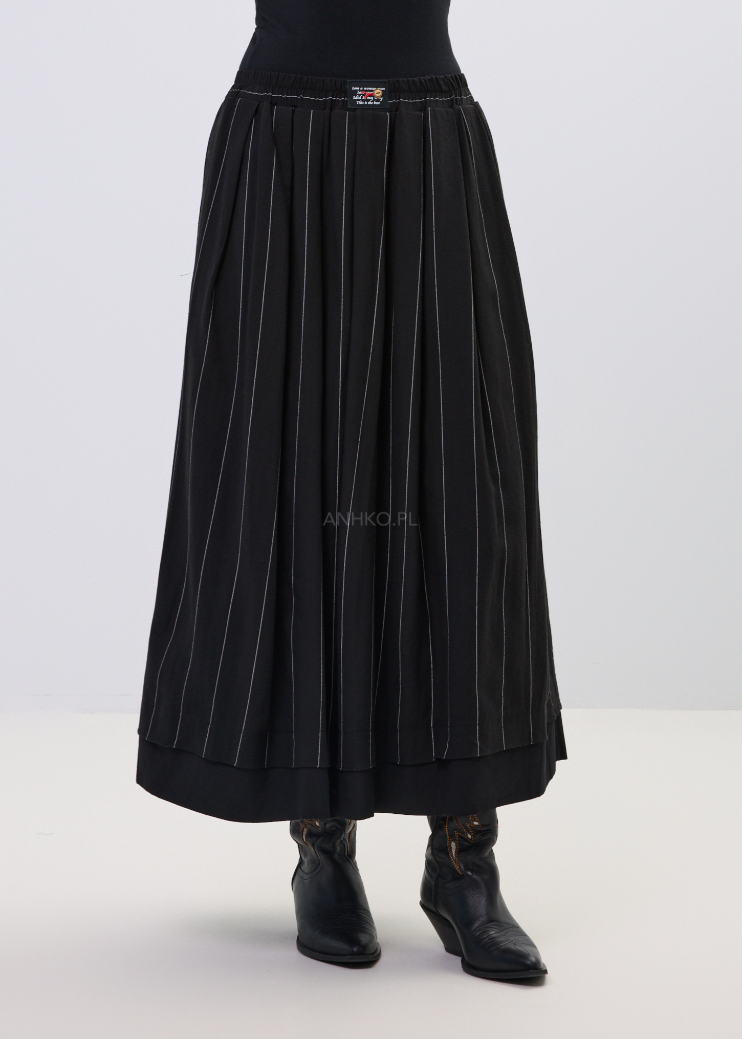 Spódnica z Dodatkiem Lnu Lume Stripe Czarna