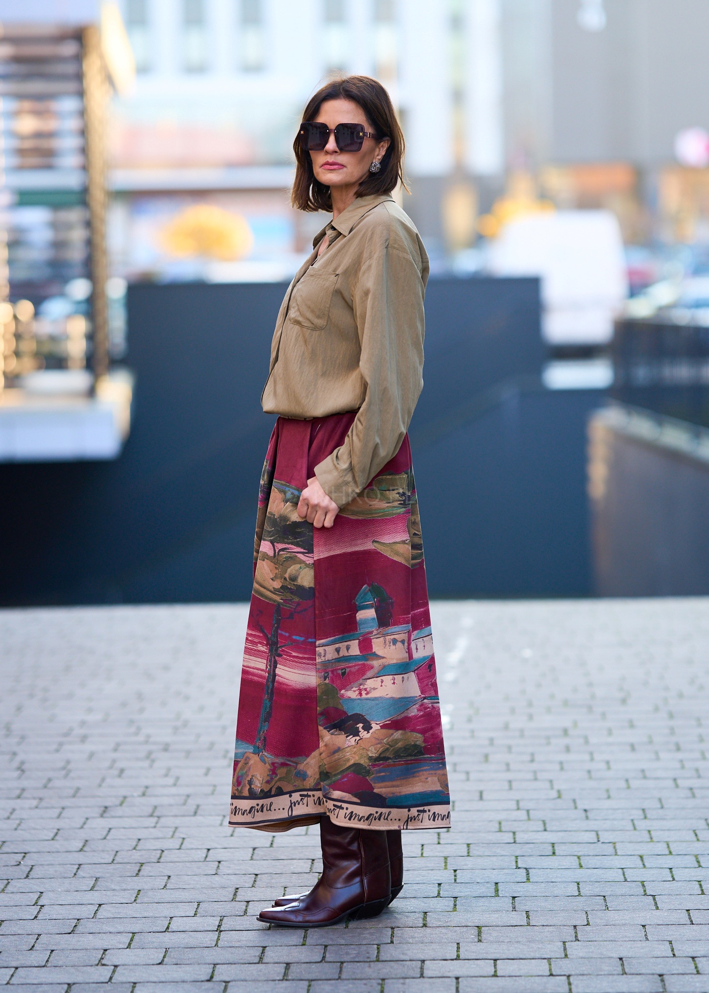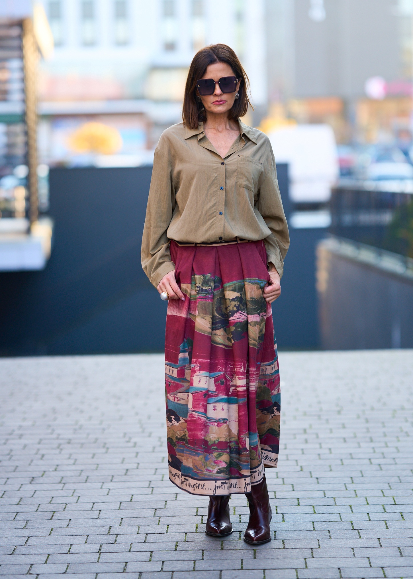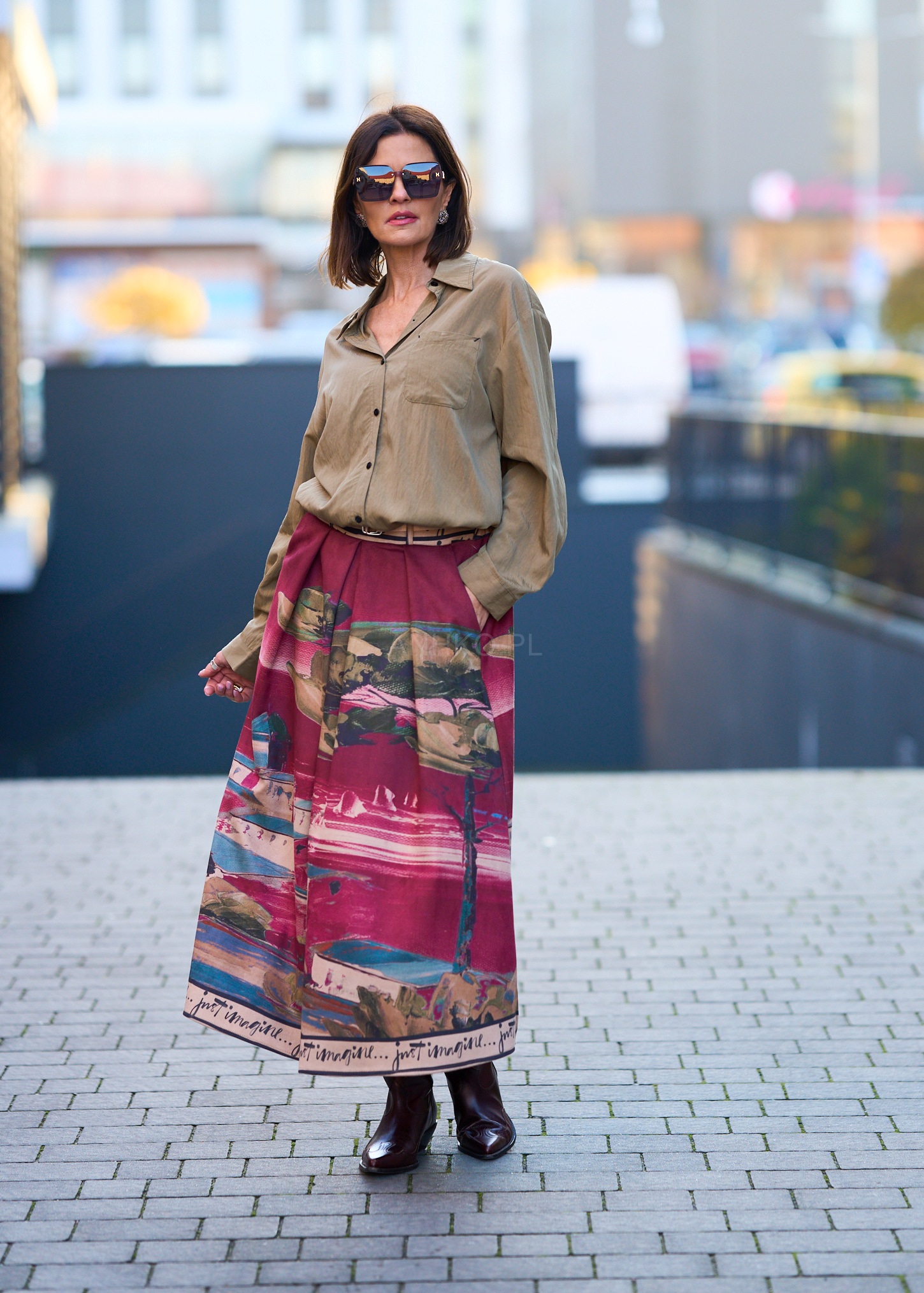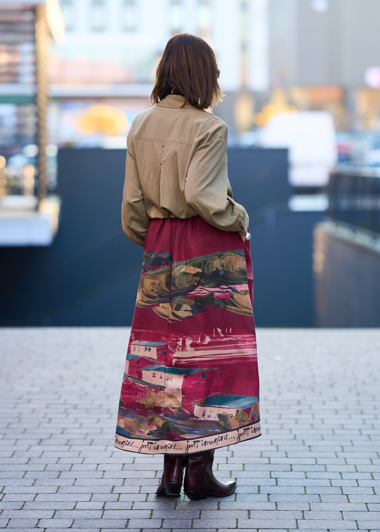 Ta designerska spódnica to połączenie wygody i artystycznego wyrazu. Wykonana z miękkiego, lejącego materiału, pięknie układa się w ruchu i zapewnia komfort noszenia przez cały dzień. Elastyczna talia dopasowuje się do sylwetki, a dekoracyjny pasek z regulacją dodaje nowoczesnego charakteru i pozwala na indywidualne stylizowanie. Model posiada praktyczne kieszenie po bokach oraz brak podszewki, dzięki czemu jest lekki i przewiewny. Doskonale sprawdzi się w codziennych stylizacjach, na spotkania, spacery, wyjazdy czy artystyczne eventy. Świetnie wygląda zarówno z prostym topem, jak i dzianinowym swetrem lub koszulą.