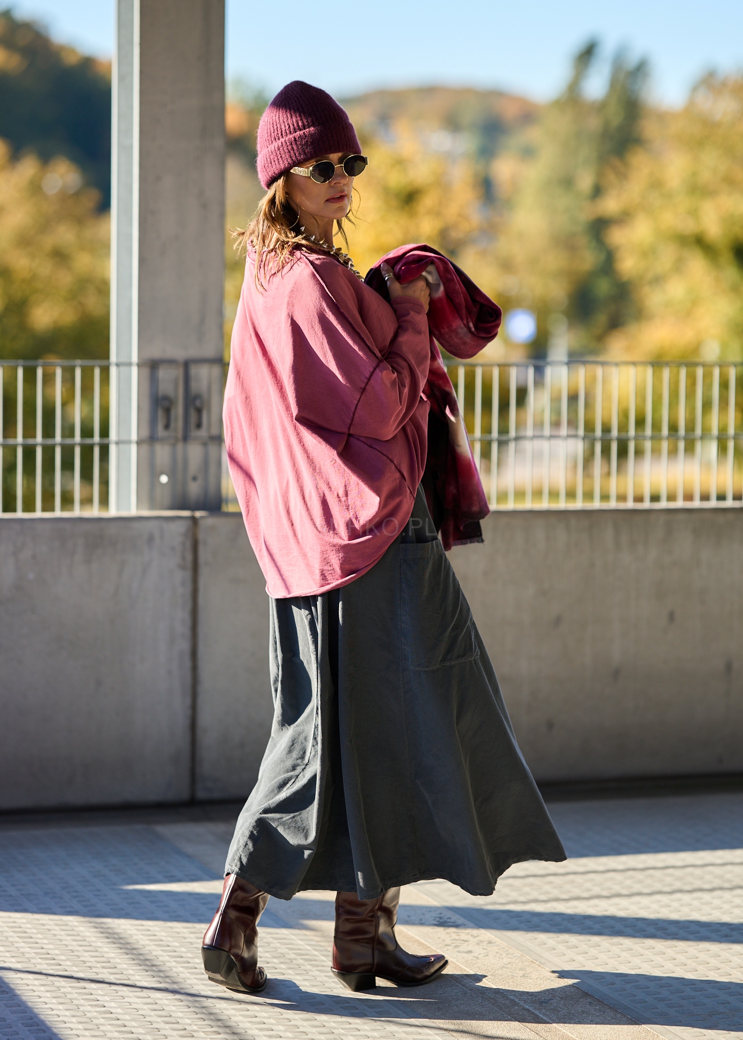 Zachwyca prostotą i subtelnym urokiem naturalnej tkaniny. Uszyta z miękkiego, bawełnianego sztruksu, ma przyjemną w dotyku fakturę i pięknie układa się na sylwetce. Luźny, nieco rozszerzany krój z elastyczną gumką w pasie zapewnia wygodę noszenia przez cały dzień. Po bokach znajdują się praktyczne kieszenie, które dodają funkcjonalności i luzu. Sztruksowy materiał sprawia, że model doskonale pasuje do jesiennych i zimowych stylizacji – świetnie wygląda z oversize’owym swetrem, grubymi rajstopami i botkami. Idealna na co dzień, do pracy lub weekendowy spacer.