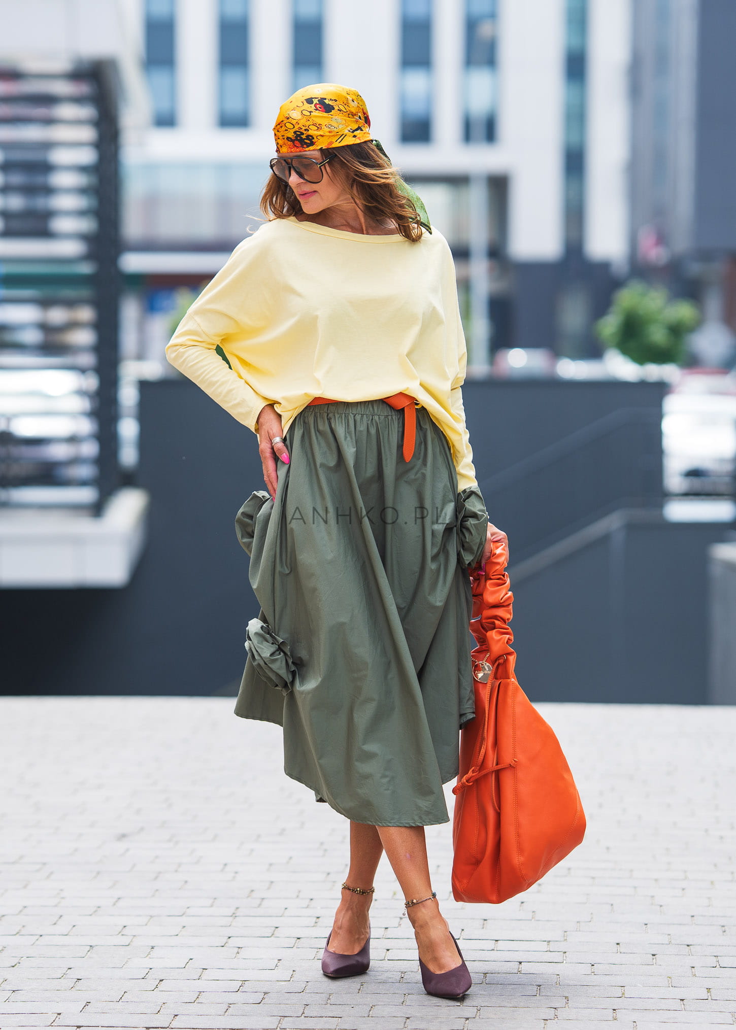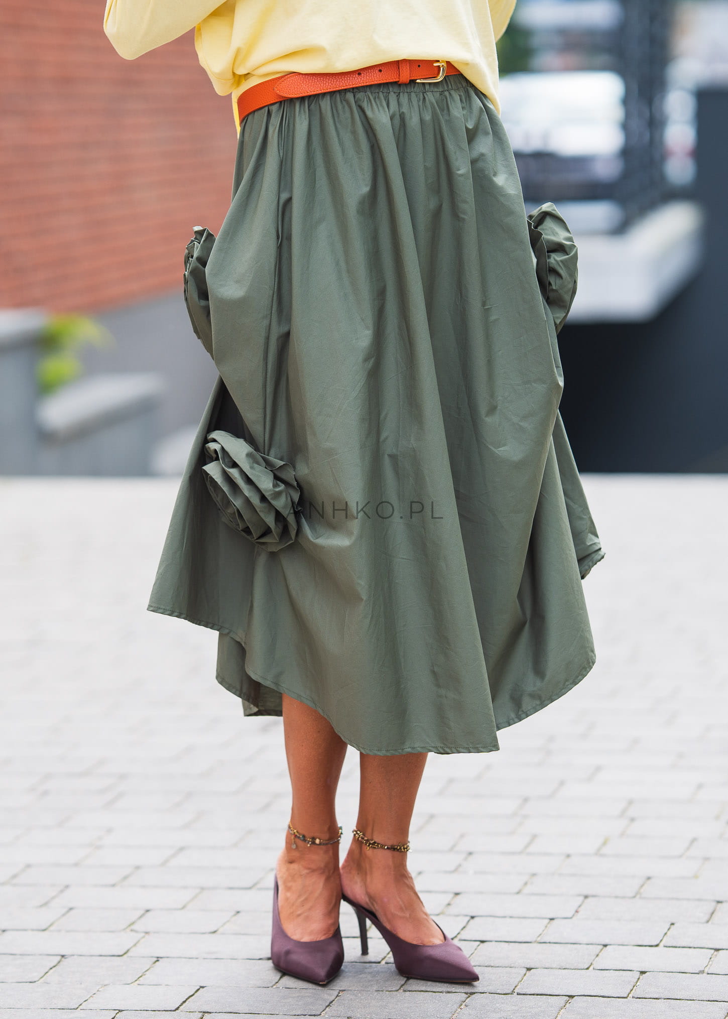 Lekko asymetryczna spódnica maxi to połączenie elegancji i wygody. Wyposażona w gumkę w pasie, zapewnia idealne dopasowanie i wygodę noszenia. Ozdobiona dwoma kwiatami dodaje jej uroku i delikatności, nadając jednocześnie subtelny akcent. Doskonała na letnie dni, ta spódnica pozwala Ci cieszyć się swobodą i stylem w każdej sytuacji.