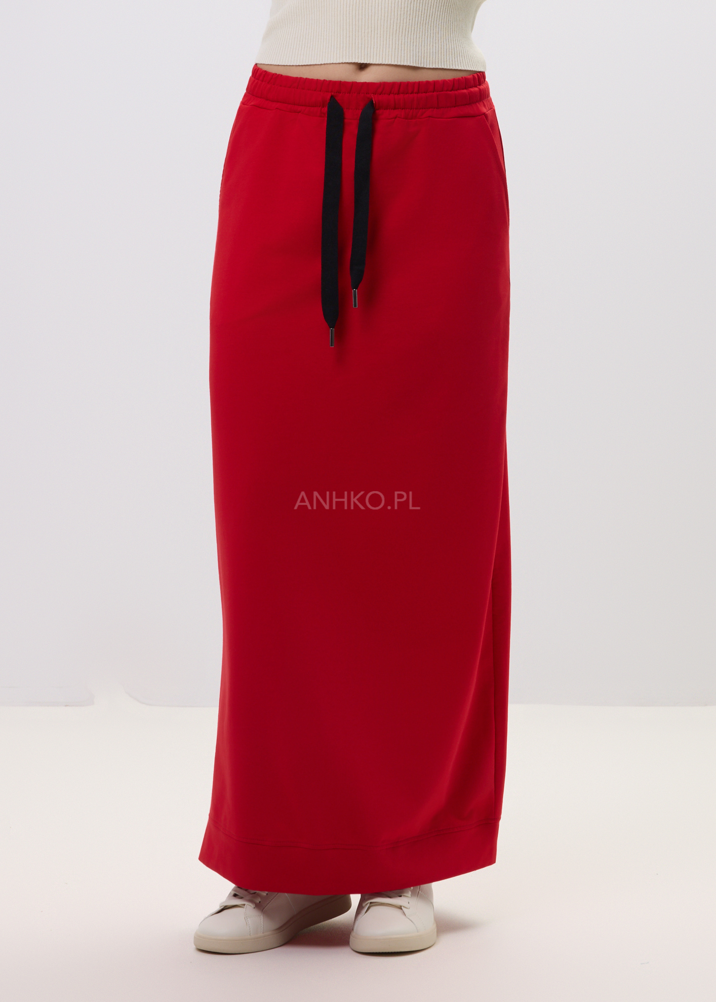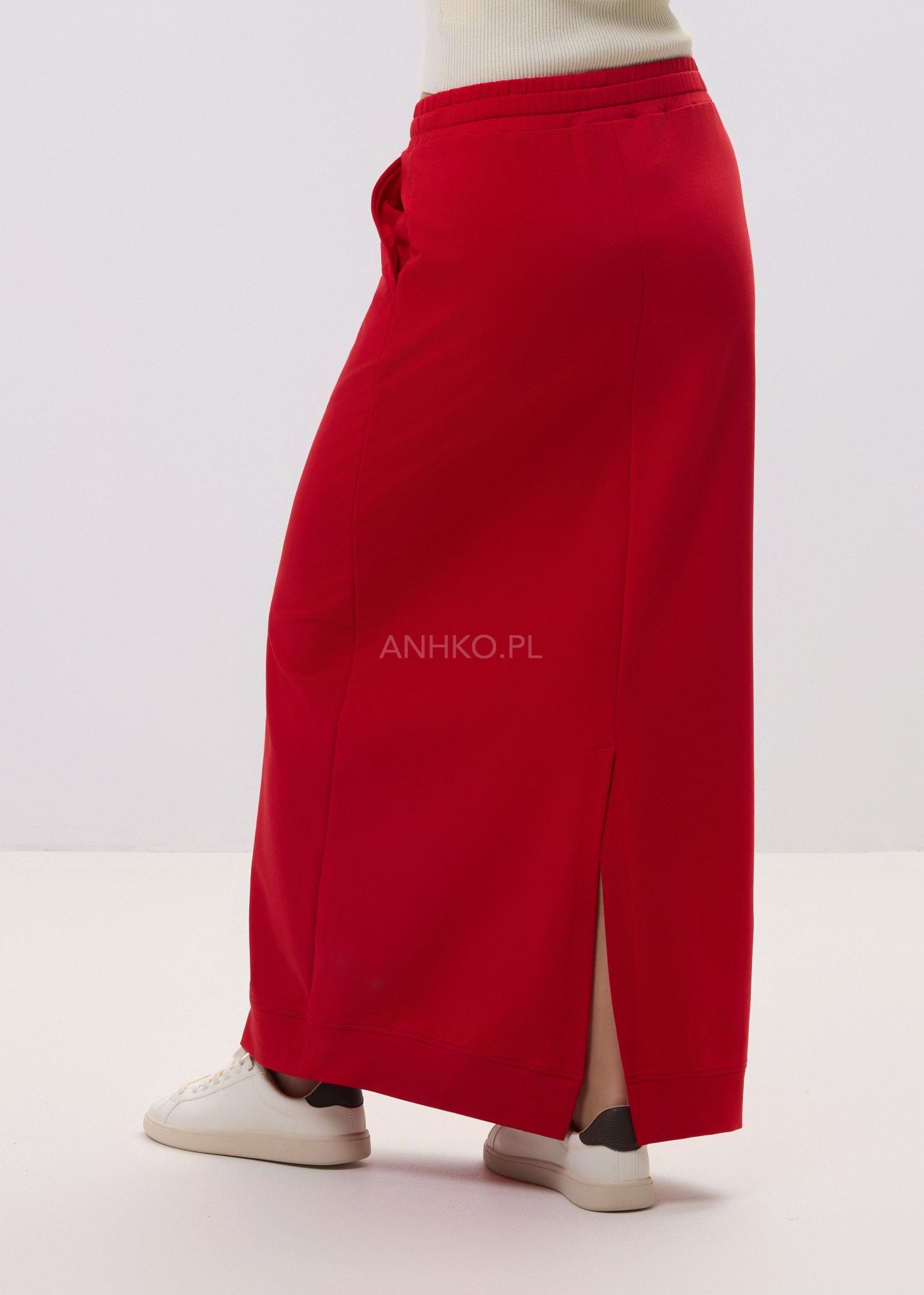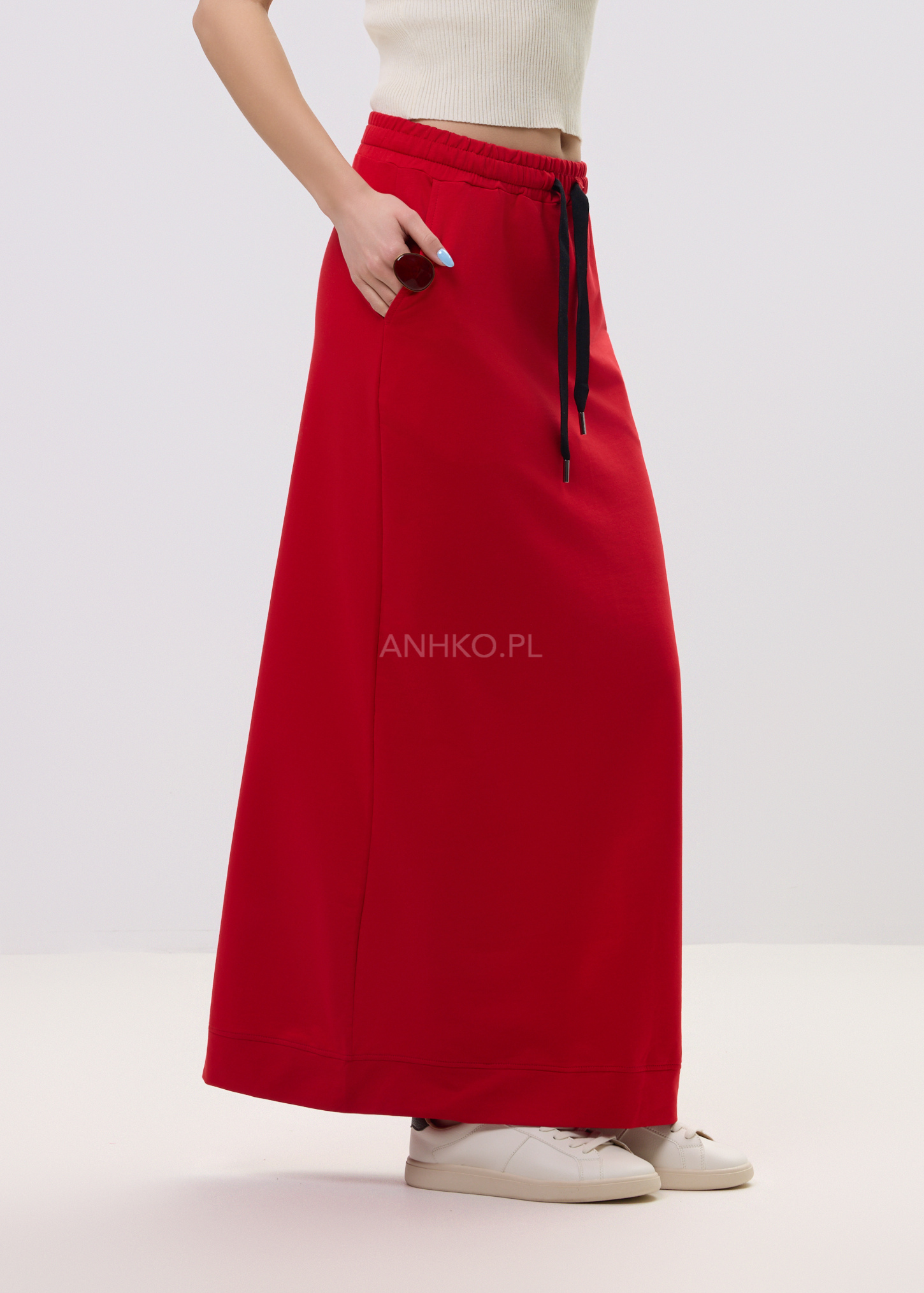 Spódnica maxi przyciąga uwagę intensywnym kolorem oraz prostym, nowoczesnym krojem, który pięknie układa się na sylwetce. Długość maxi optycznie wydłuża proporcje i nadaje stylizacji lekkości, jednocześnie zachowując wygodny, casualowy charakter. To model, który świetnie sprawdzi się zarówno w codziennych stylizacjach, jak i w bardziej dopracowanych zestawach.