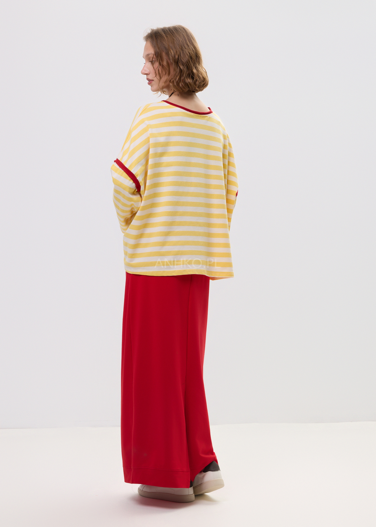 Bluza Teyora - Bluza w paski w kolorach żółtego i ecru z detalami w kolorze czerwonym. Wykonana w 100% z bawełny, komfortowa i przewiewna. Idealna na co dzień – do jeansów, spódnic i casualowych zestawów.
