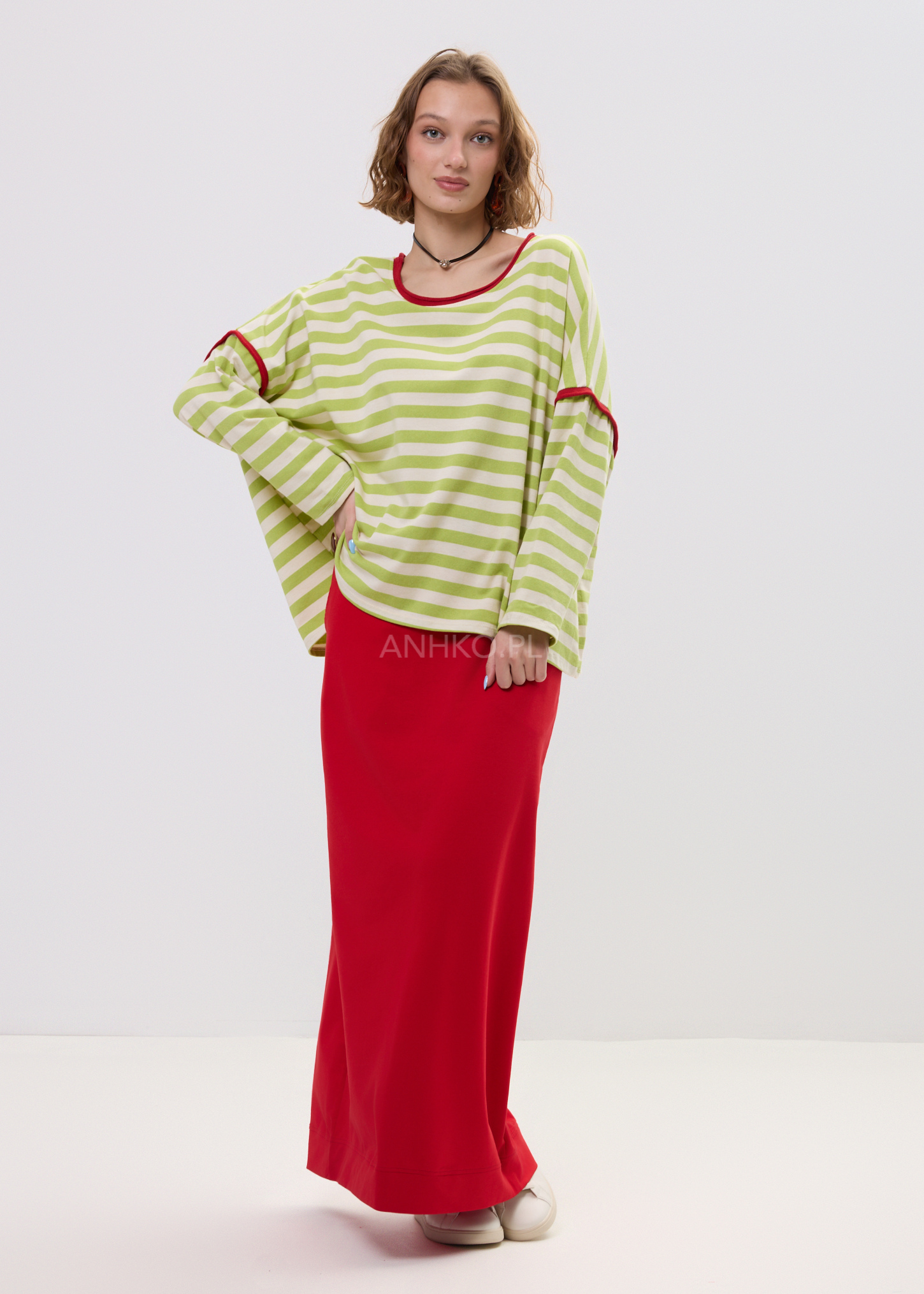Bluza Teyora - Bluza w paski w kolorach limonki i ecru z detalami w kolorze czerwonym. Wykonana w 100% z bawełny, komfortowa i przewiewna. Idealna na co dzień – do jeansów, spódnic i casualowych zestawów.