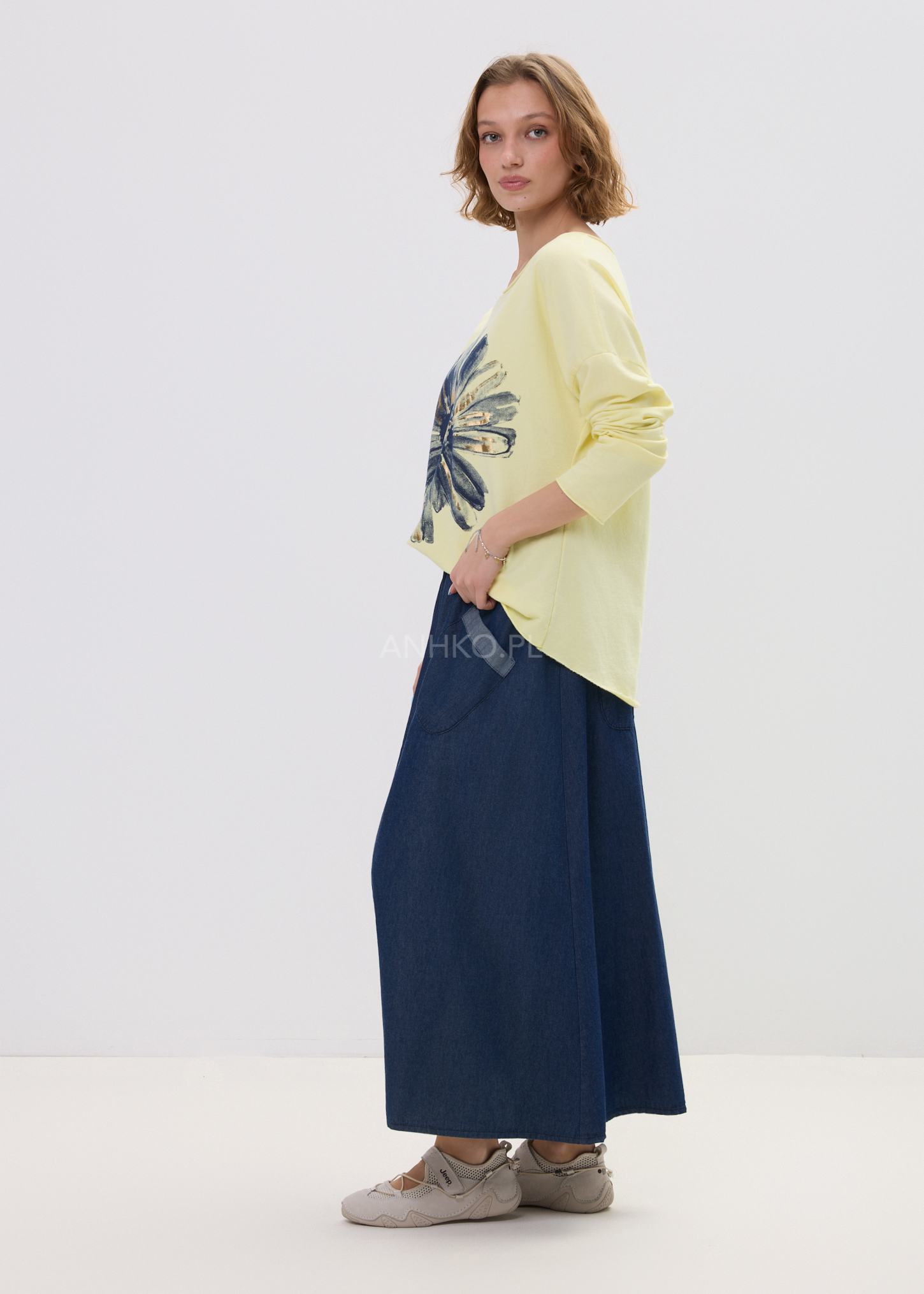 Bluzka Florencja Cytrynowa - Luźna bluzka w pastelowym odcieniu z artystycznym kwiatowym printem. Komfortowa, lekka i idealna na co dzień – wystarczy jeden element, żeby zrobić stylizację.