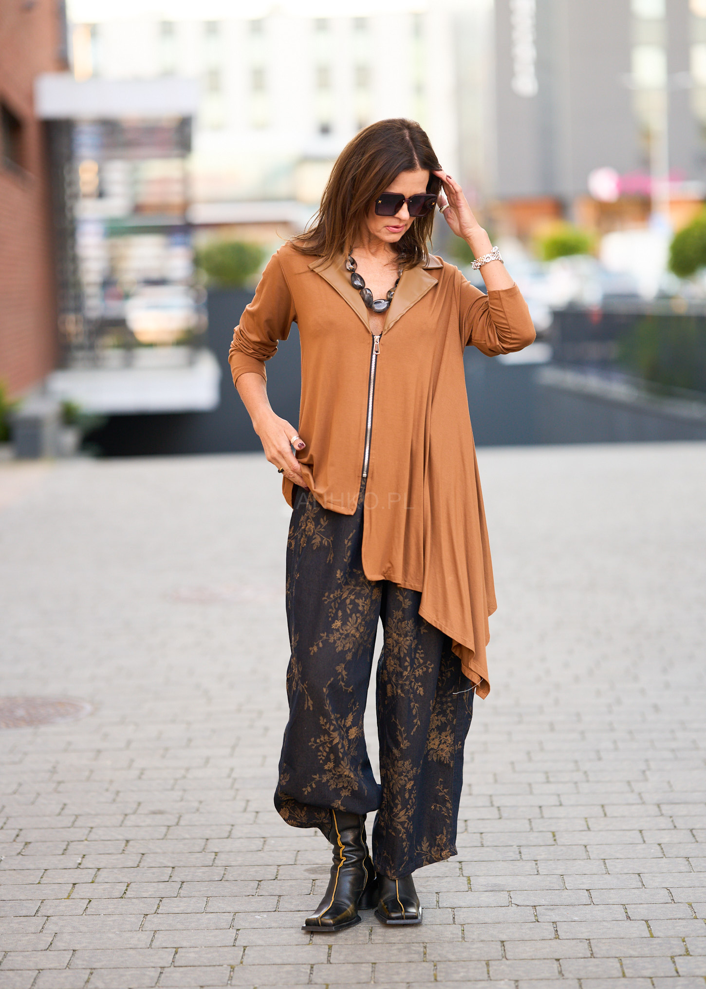 Bluzka Faux Leather Collar Camel - Ta stylowa bluzka łączy w sobie nowoczesny design i wygodę, tworząc idealny dodatek do Twojej garderoby. Jej unikalny wygląd sprawi, że każda stylizacja nabierze nowoczesnego charakteru.