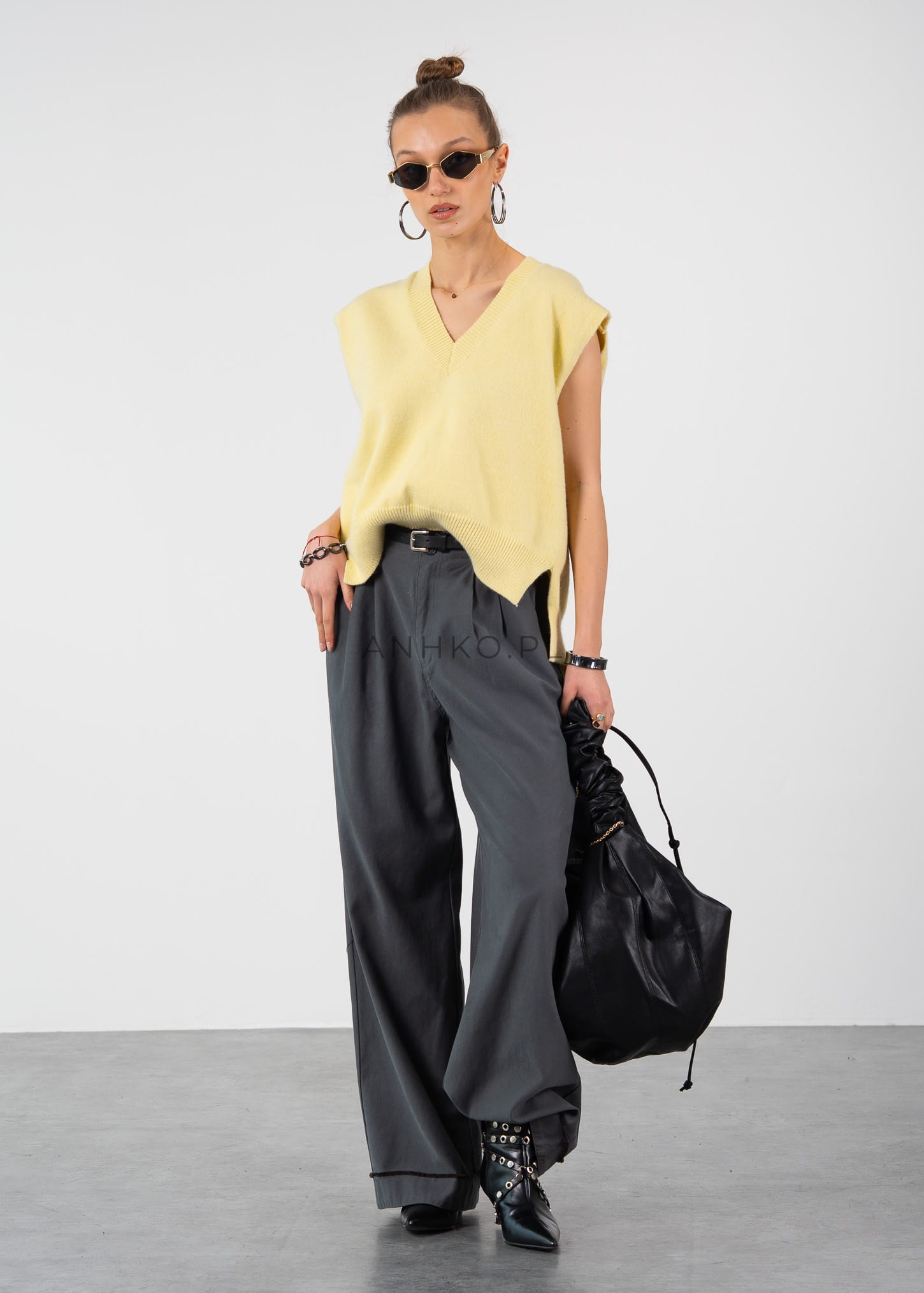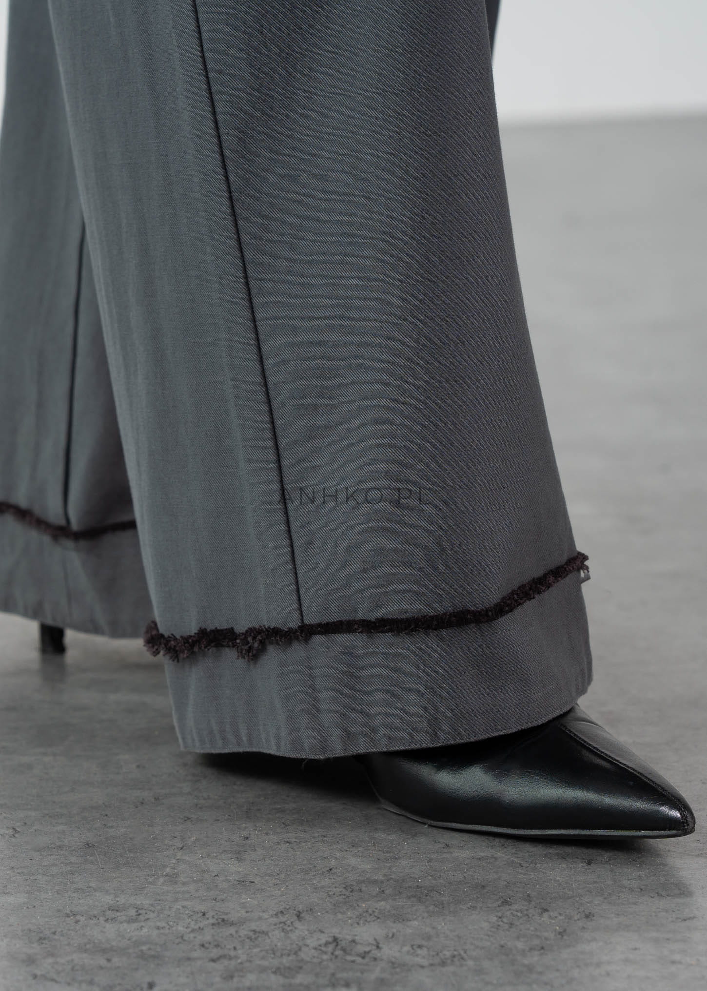 - Fason: Elegancki, z lekko zwężanymi nogawkami