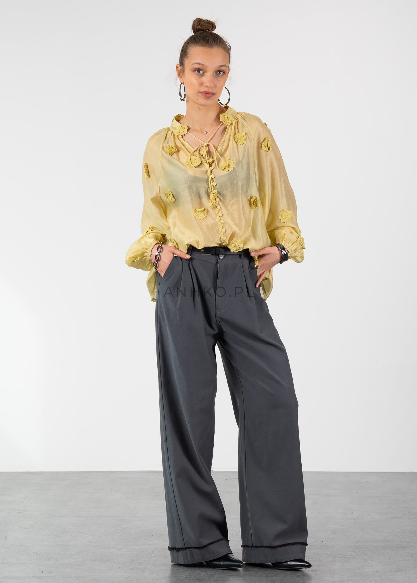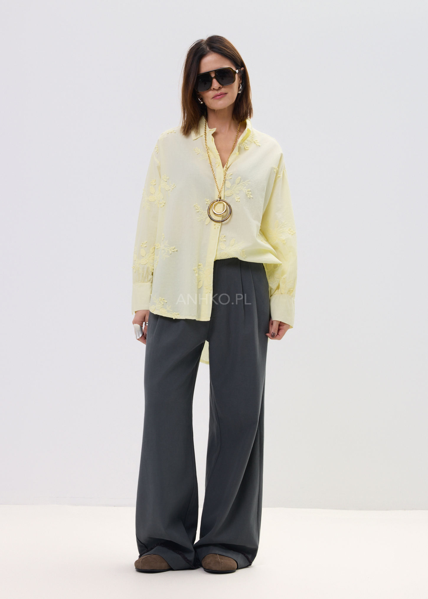 Koszula Hatonna Żółta - Lekka, żółta koszula z subtelnym haftem, która dodaje stylizacji delikatności i świeżości. Luźny krój i miękki materiał sprawiają, że to idealna baza na co dzień – wygodna, ale z charakterem.