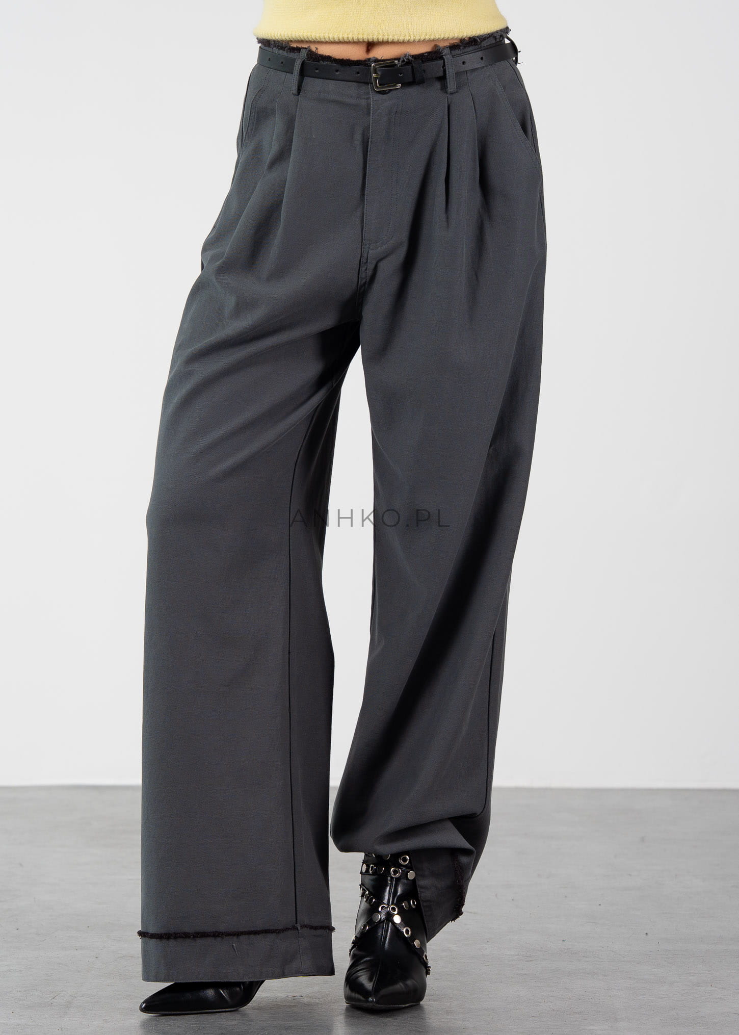 To propozycja dla kobiet, które cenią sobie unikalny styl i wygodę. Wykonane z połączenia Tencelu i bawełny, są lekkie, oddychające i przyjemne w dotyku. Surowe wykończenie w pasie oraz na nogawkach nadaje im nowoczesnego, lekko nonszalanckiego charakteru, a dołączony pasek podkreśla talię, zapewniając idealne dopasowanie. Ich klasyczny, luźniejszy krój sprawia, że świetnie komponują się zarówno z eleganckimi koszulami, jak i swobodnymi T-shirtami. Doskonałe do biura, na spotkania czy wieczorne wyjścia – zawsze dodadzą stylu i oryginalności każdej stylizacji.