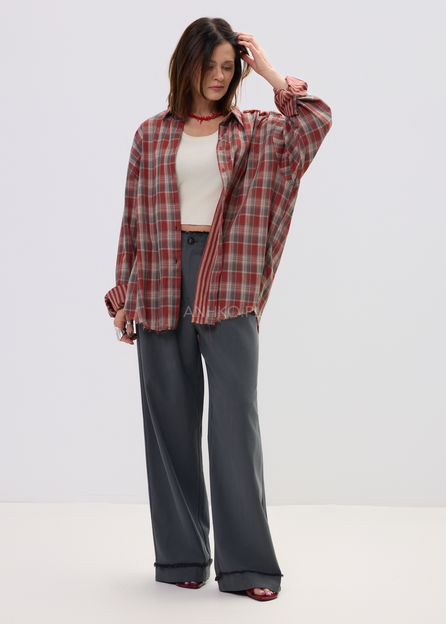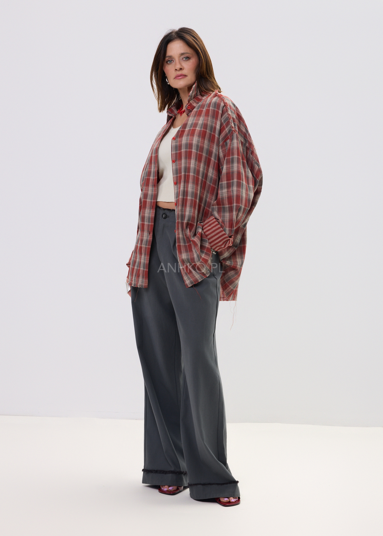 Koszula Rusty Rebel Czerwona w Kratę - Luźna koszula w klimacie vintage z efektem surowego wykończenia. Czerwono-beżowa krata i oversize’owy krój nadają jej charakteru – idealna do codziennych, lekko grunge’owych stylizacji.