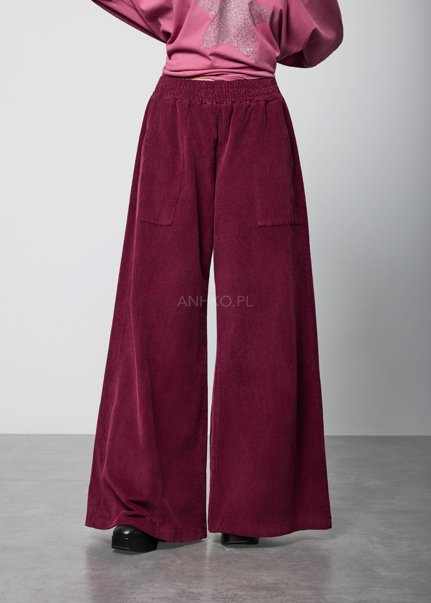 Spodnie Sztruksowe Calen Soft Śliwkowe