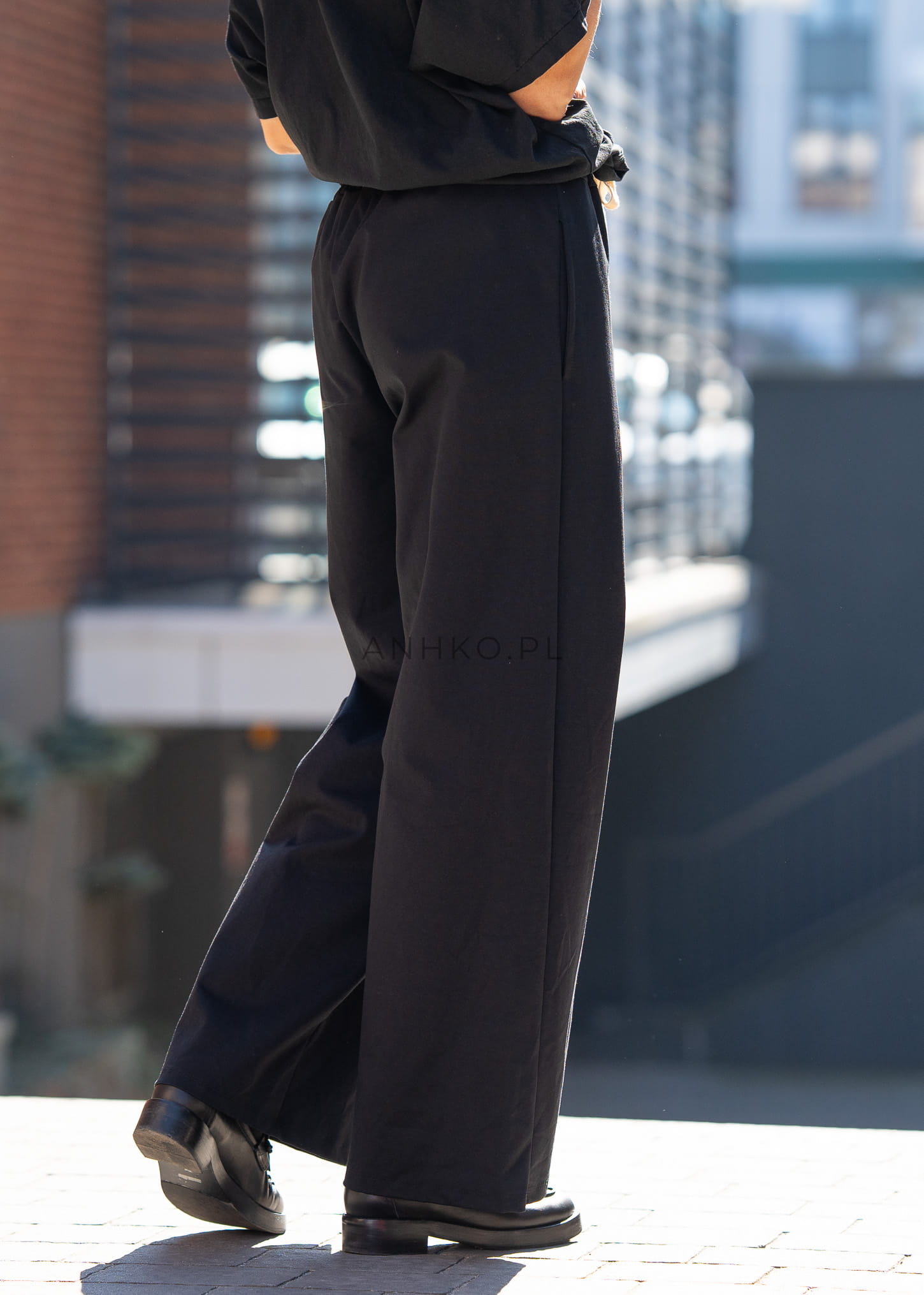 - Krój: Luźny, swobodny fason z szeroką nogawką.