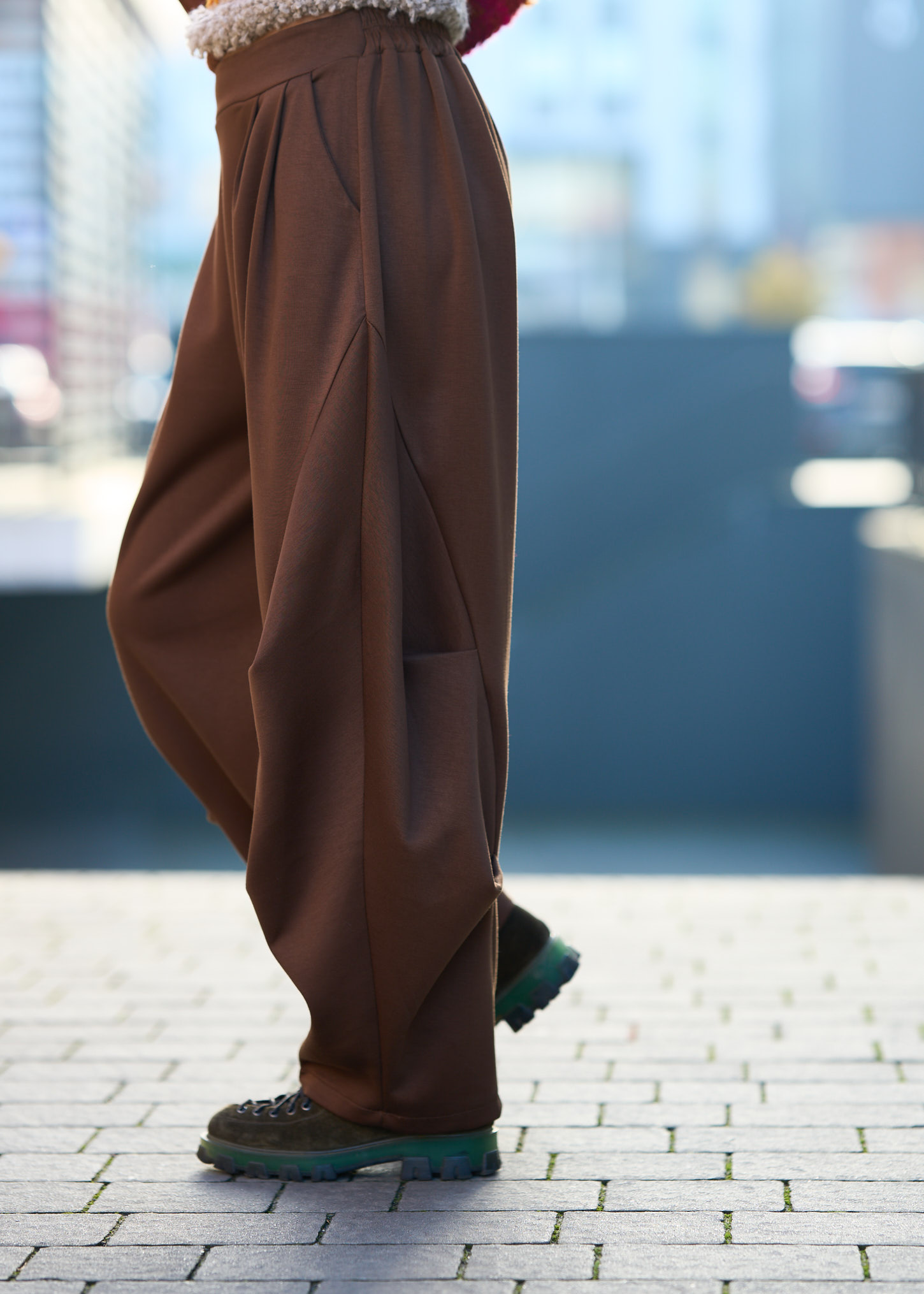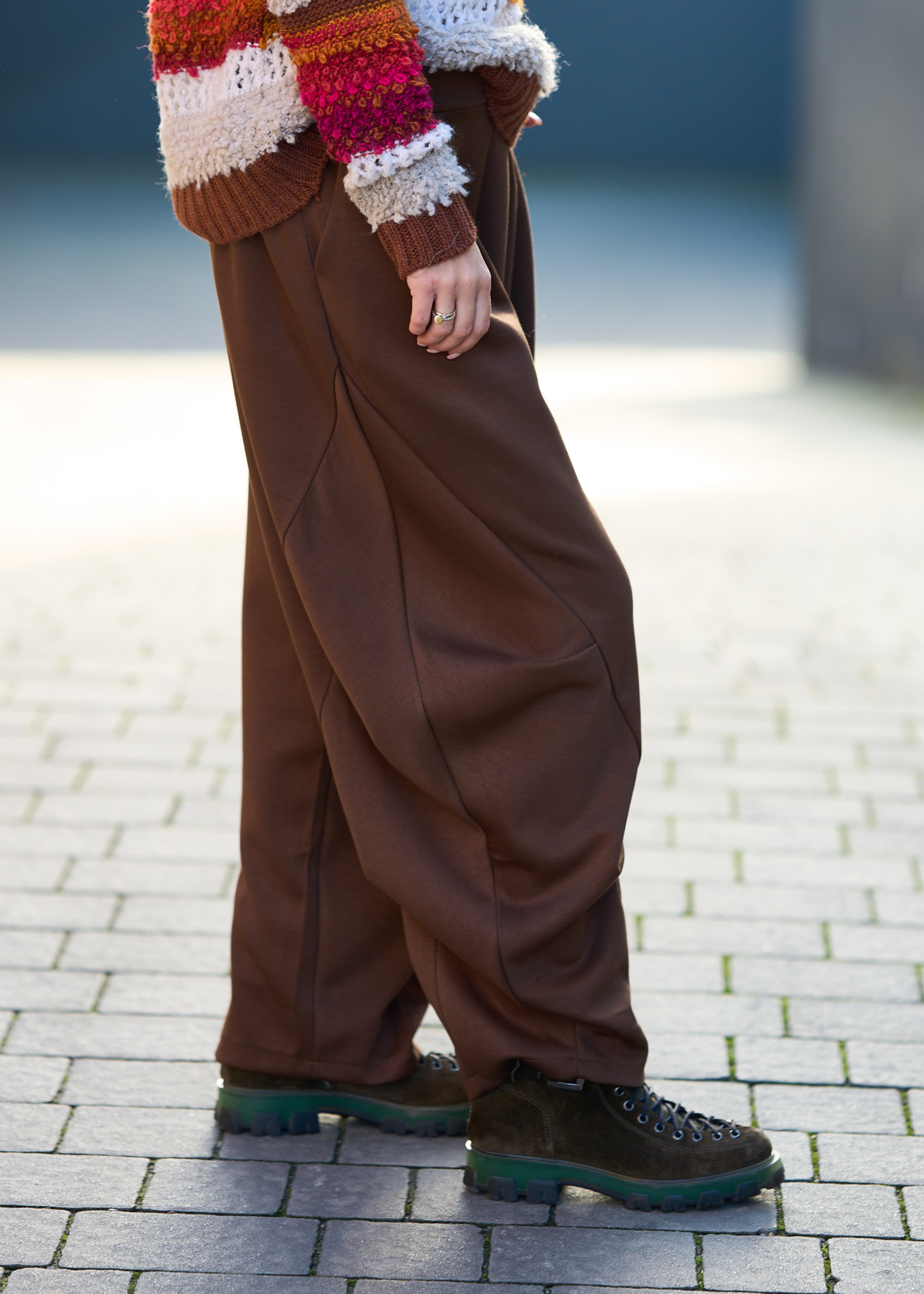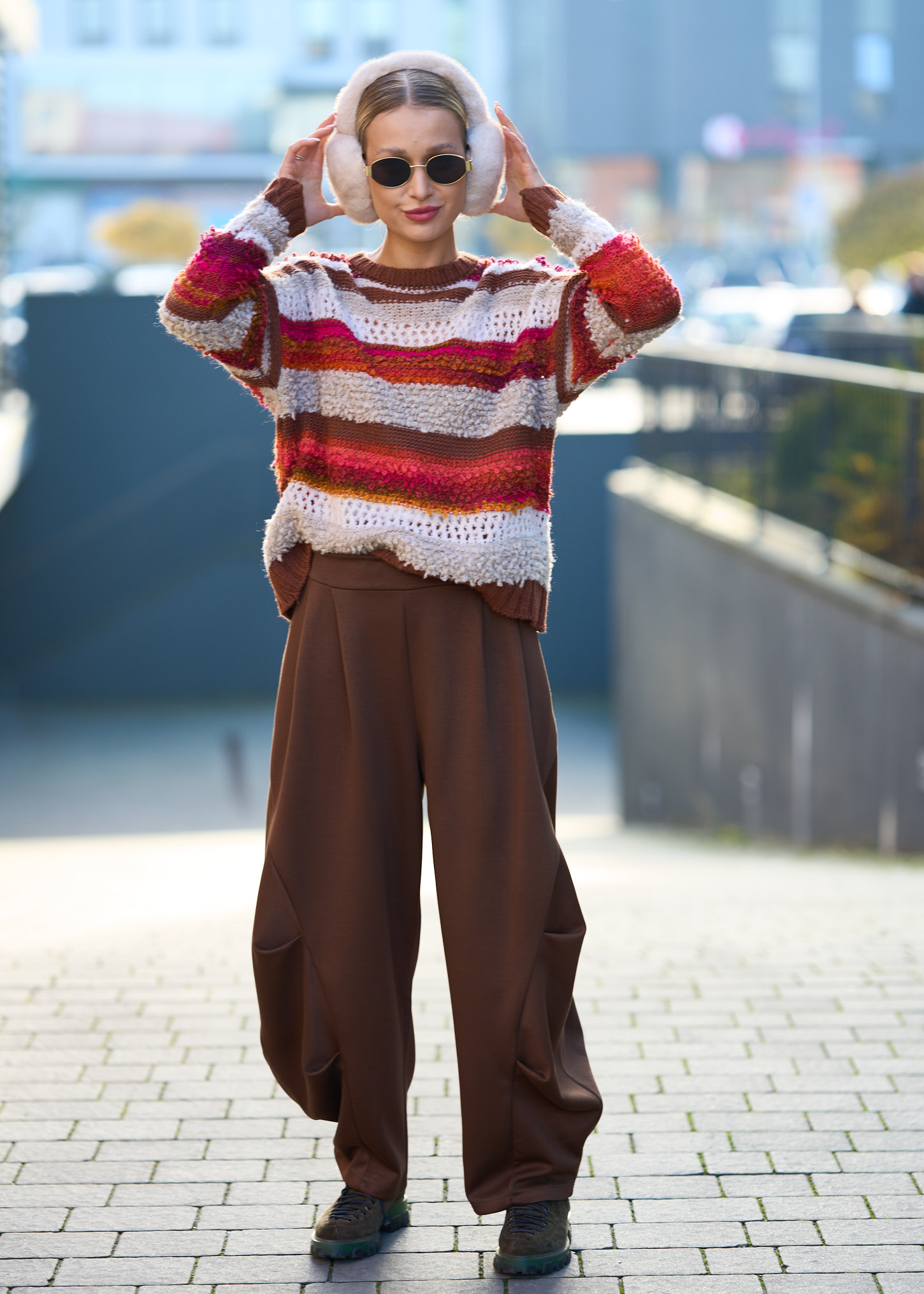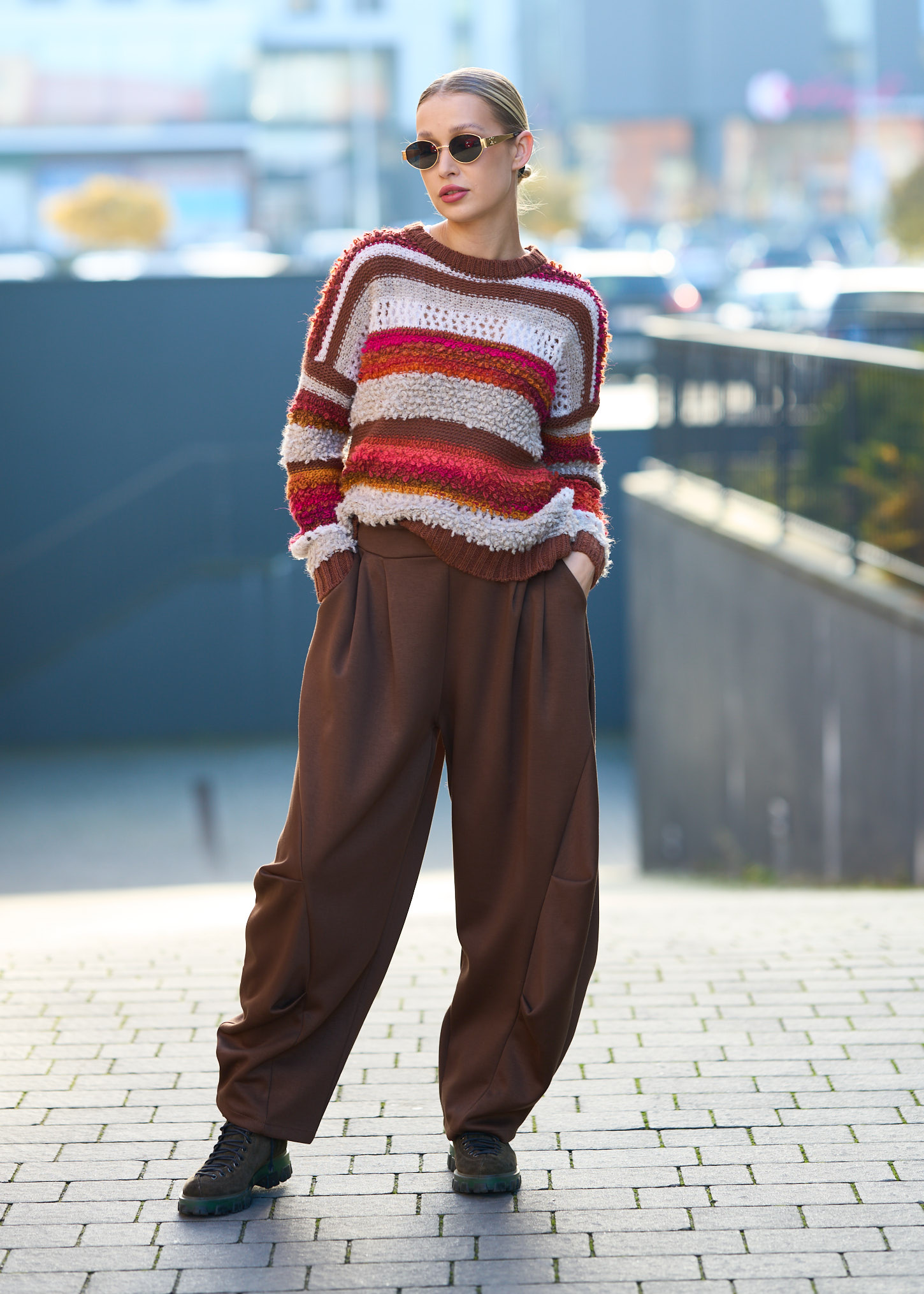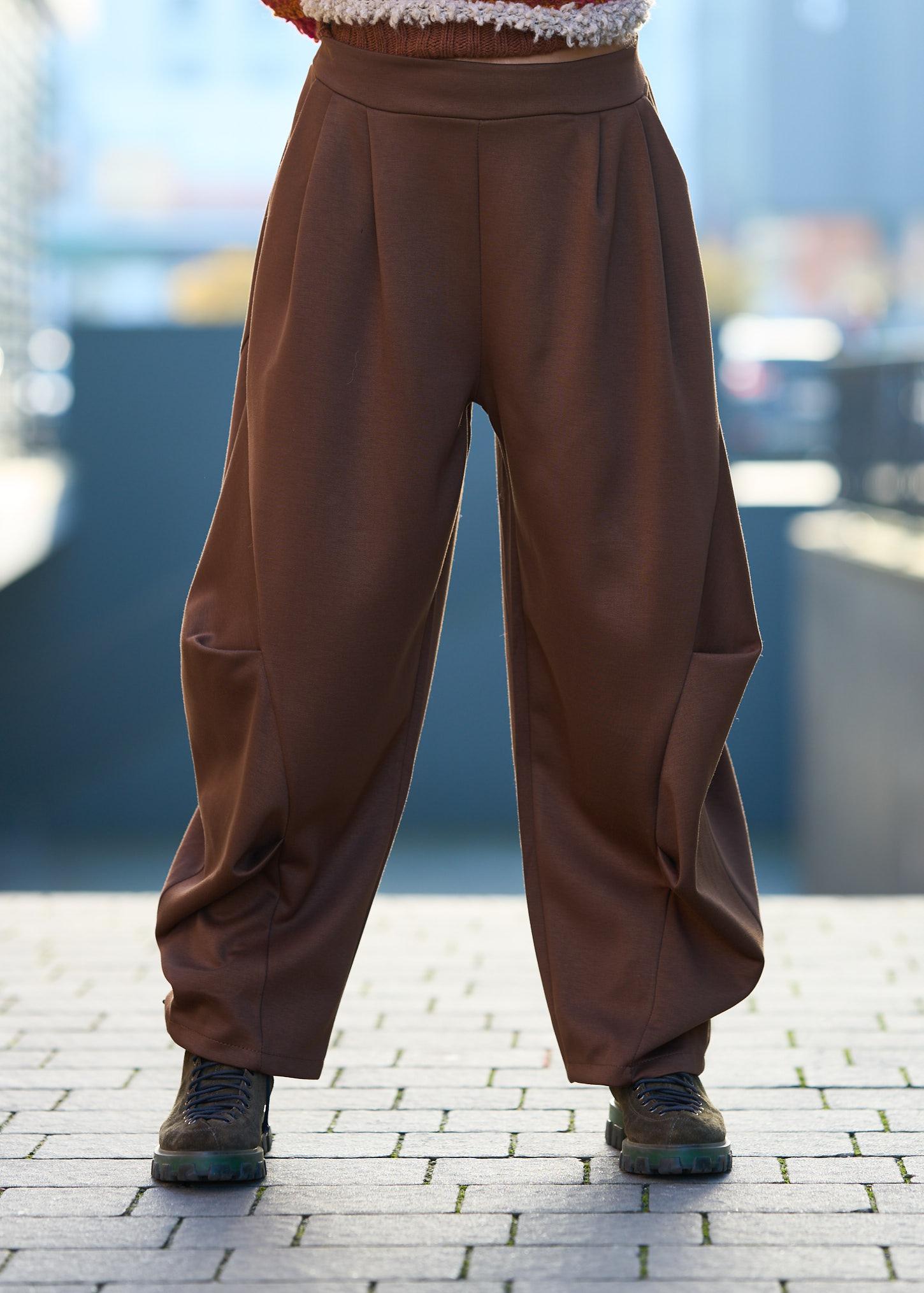 To połączenie wygody i nowoczesnego stylu. Wykonane z wysokiej jakości mieszanki wiskozy, poliestru i spandexu, gwarantują komfort noszenia przez cały dzień. Elastyczny pas zapewnia idealne dopasowanie, a luźny, lekko zwężany krój nadaje im wyjątkowego charakteru. Subtelne zakładki i praktyczne boczne kieszenie dodają funkcjonalności. Spodnie w kolorze brązowym doskonale komponują się z eleganckimi koszulami, lekkimi swetrami czy casualowymi t-shirtami. Sprawdzą się zarówno w codziennych stylizacjach, jak i na spotkaniach biznesowych czy wieczornych wyjściach.