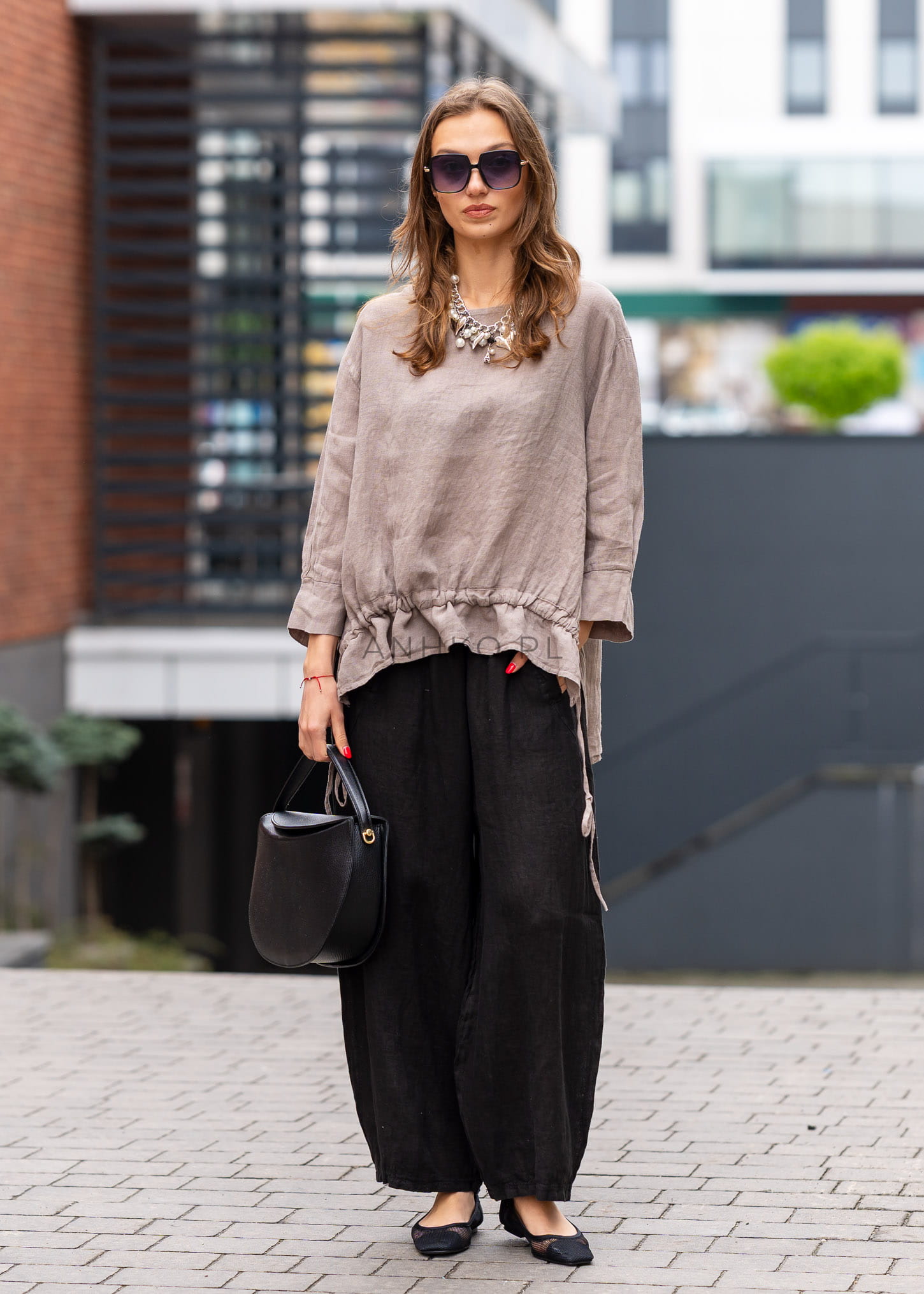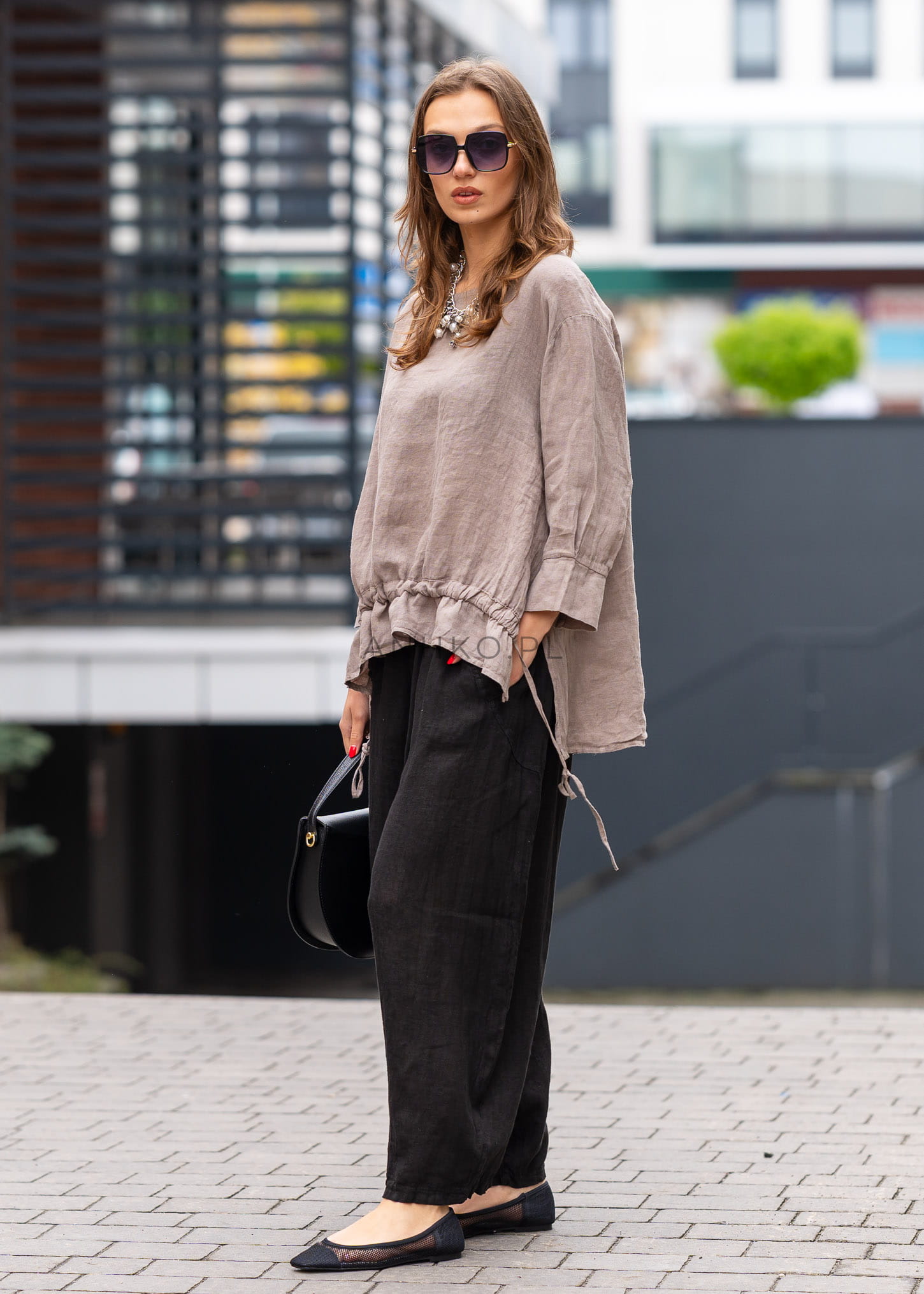 Bluzka Lniana Tatiano Taupe - Lekka i przewiewna lniana bluzka w taupe kolorze , idealna na ciepłe dni. Prosty krój z ozdobnymi wiązaniami.