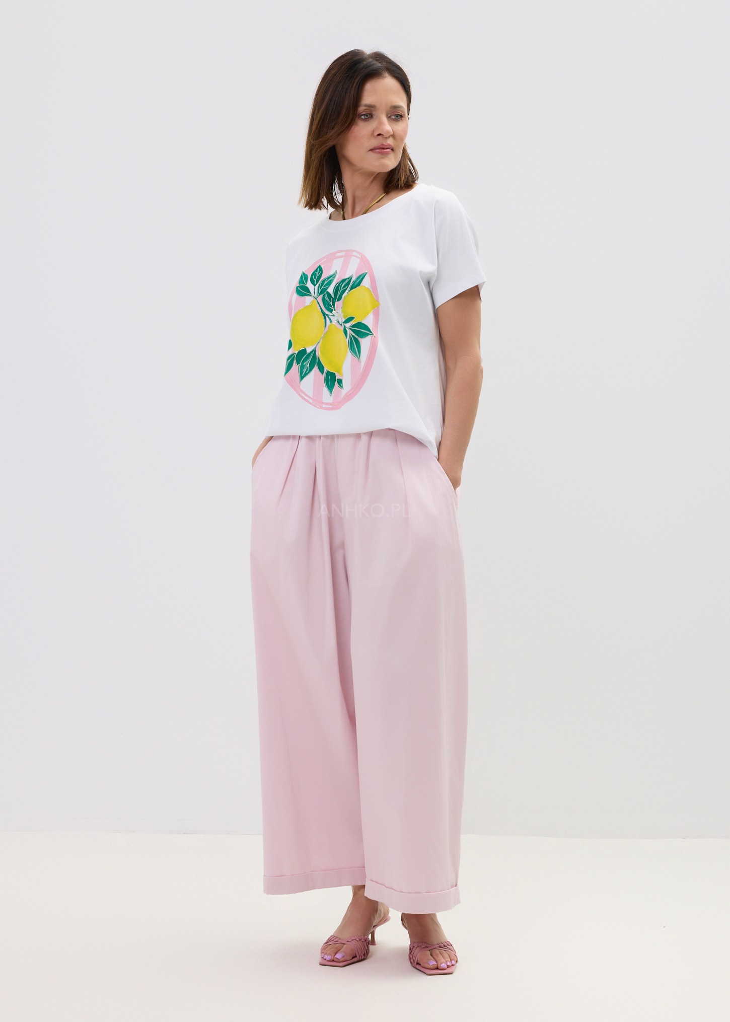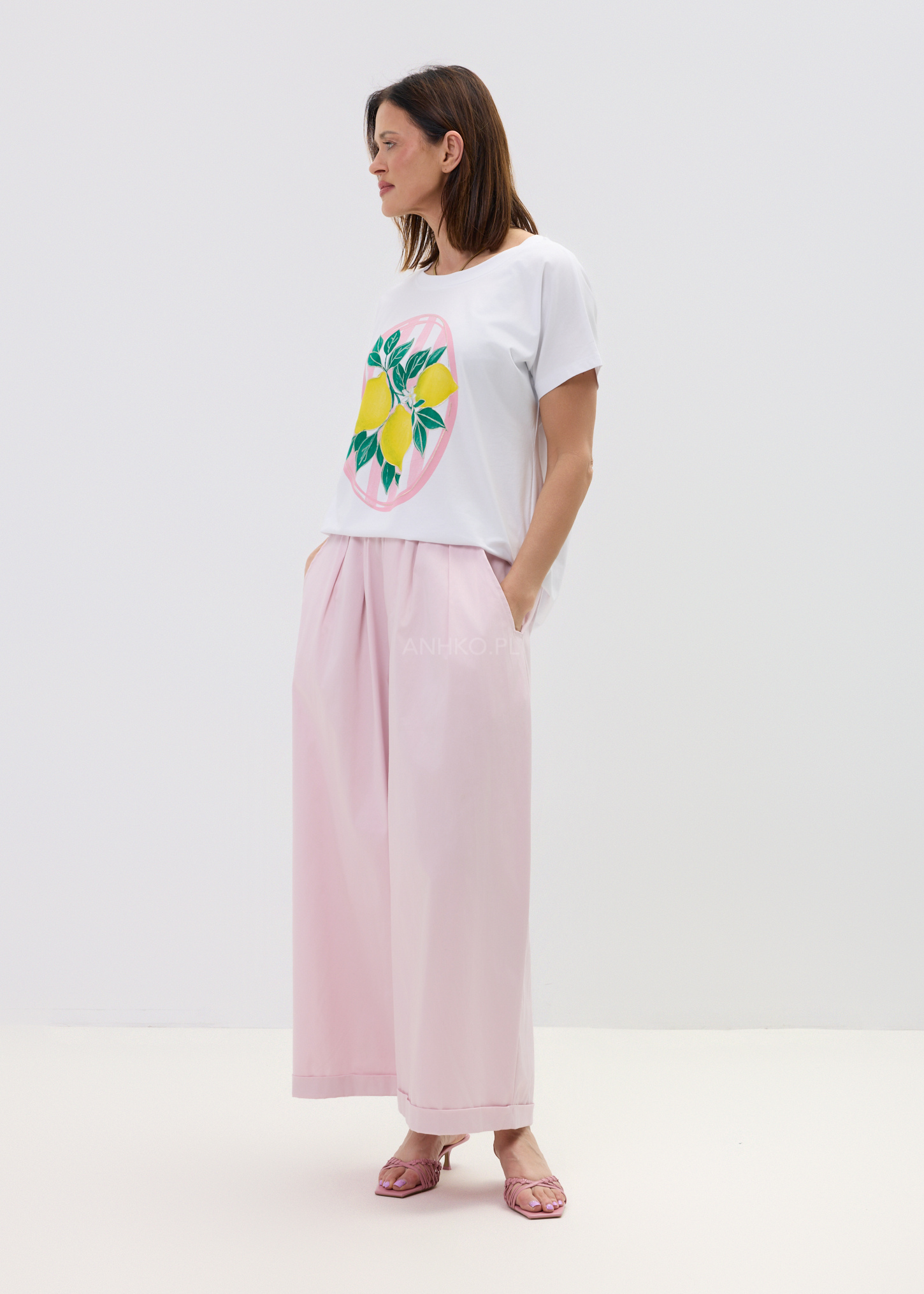 Bluzka Lemon Pop Pink Biała - Luźny t-shirt z energetycznym printem cytryn to idealna baza na lato. Świeży vibe, wygodny krój i lekko wakacyjny klimat – zakładasz raz i nie chcesz zdejmować.