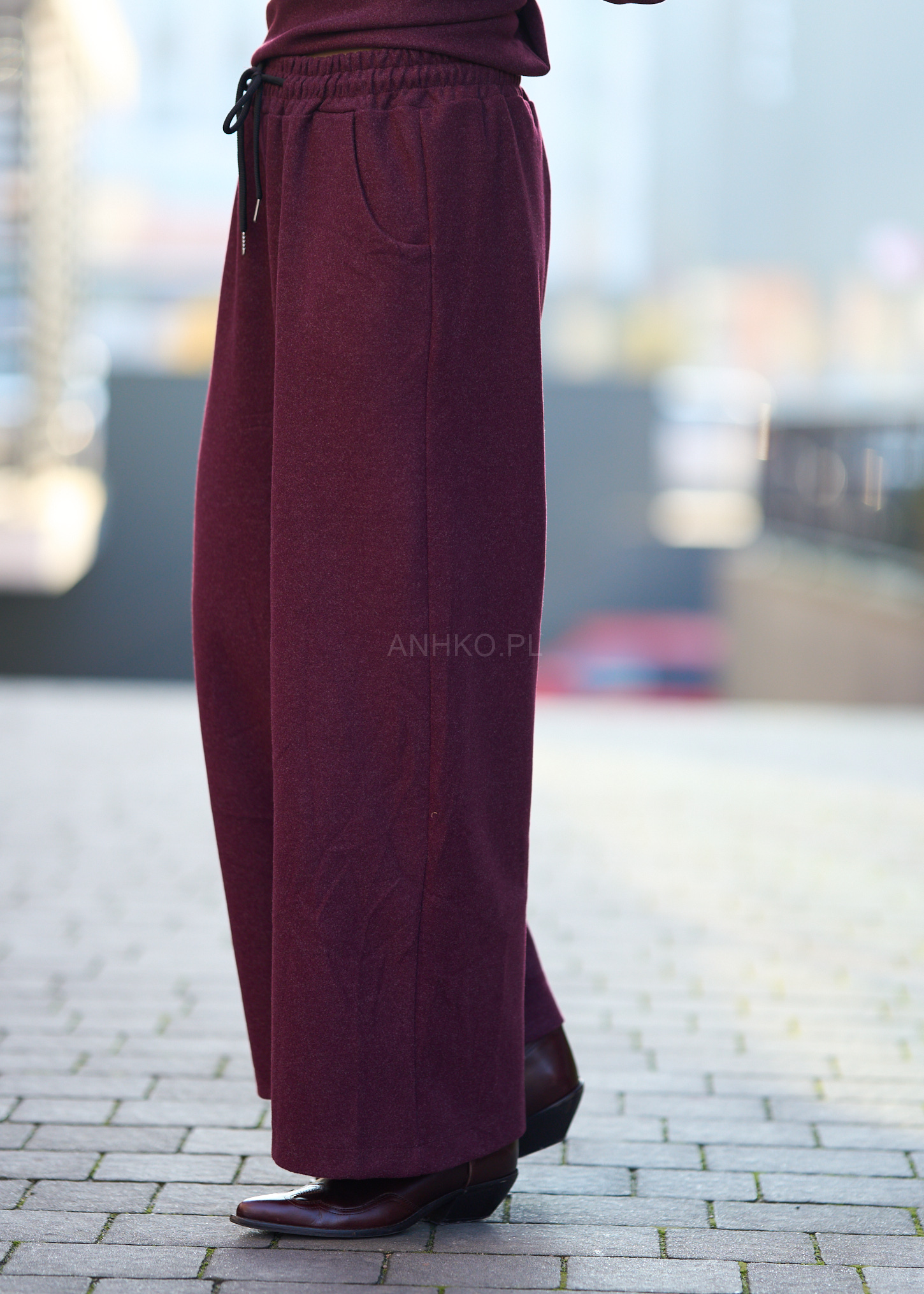 Te stylowe, spodnie zachwycają wygodą i nowoczesnym krojem. Elastyczna talia z regulowanym sznurkiem sprawia, że idealnie dopasowują się do sylwetki, a dwie boczne kieszenie dodają praktyczności. Luźne, opadające nogawki gwarantują pełen komfort noszenia zarówno w ciągu dnia, jak i podczas podróży czy weekendowego relaksu. Miękki materiał z przewagą wiskozy delikatnie układa się na ciele, zapewniając ciepło i swobodę ruchu. Model świetnie sprawdzi się w zestawach casualowych, sportowych lub domowych, a w połączeniu z gładką bluzką lub swetrem stworzy modną, minimalistyczną stylizację. Idealne na spacery, spotkania i codzienne aktywności.