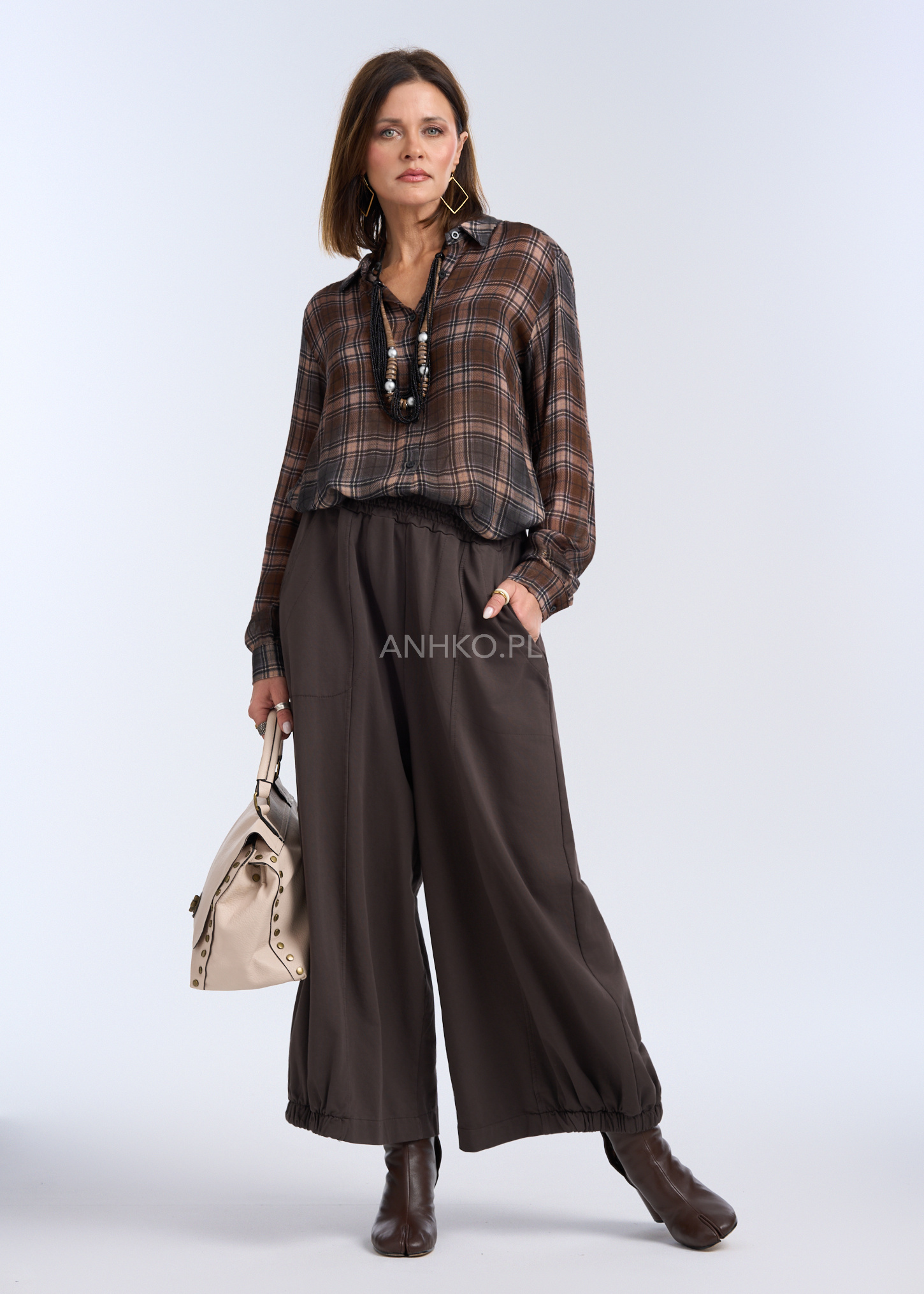 Koszula Caelum w Kratę Beżowo-Brązowa - Lekka koszula o luźnym kroju z subtelnym wzorem w kratę. Swobodna forma zapewnia komfort noszenia i łatwe dopasowanie do codziennych stylizacji. Idealna na co dzień, do pracy oraz na niezobowiązujące spotkania.