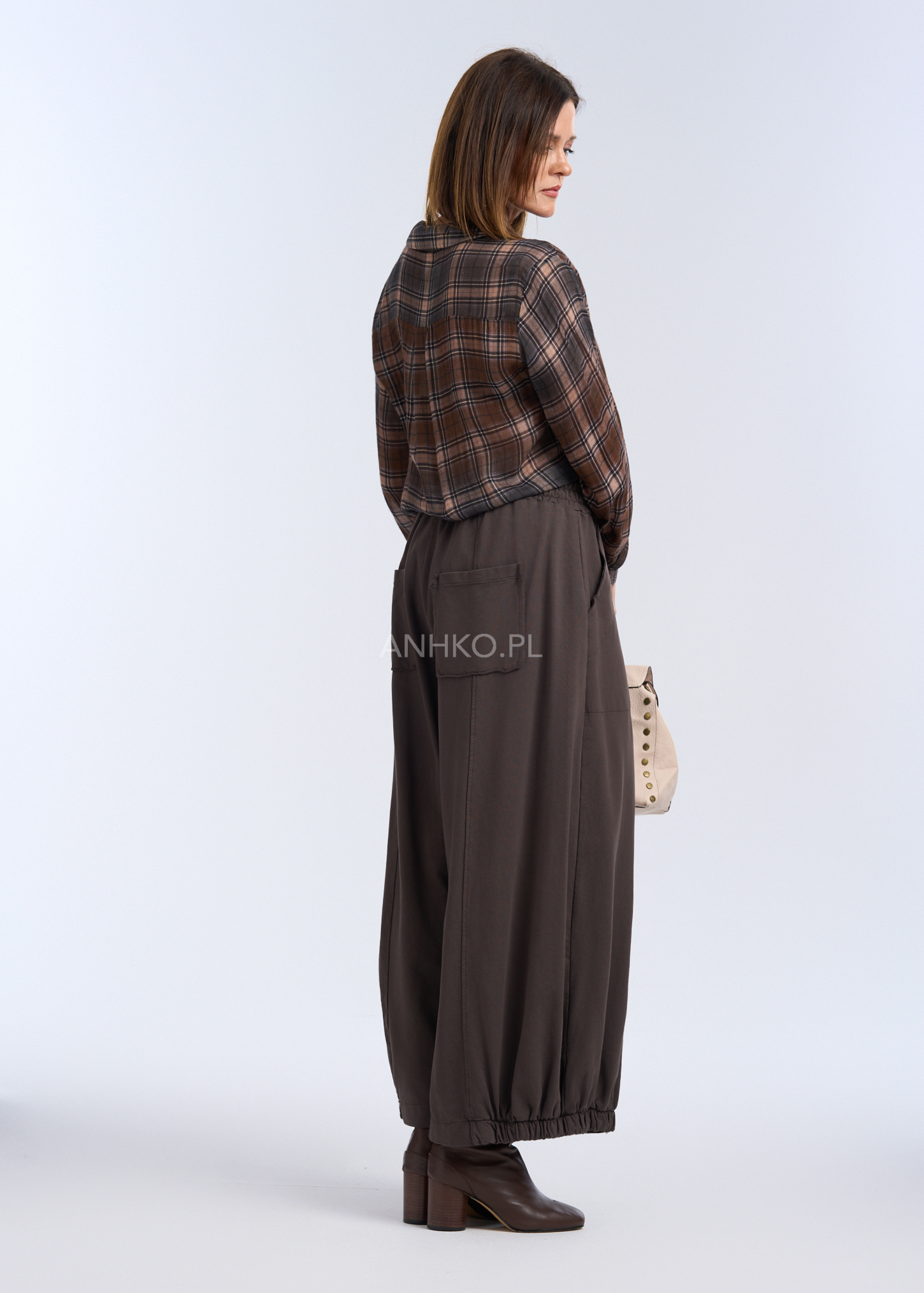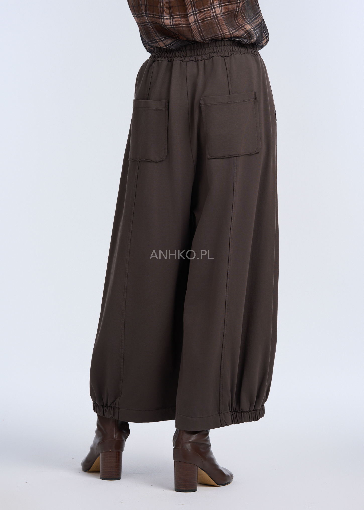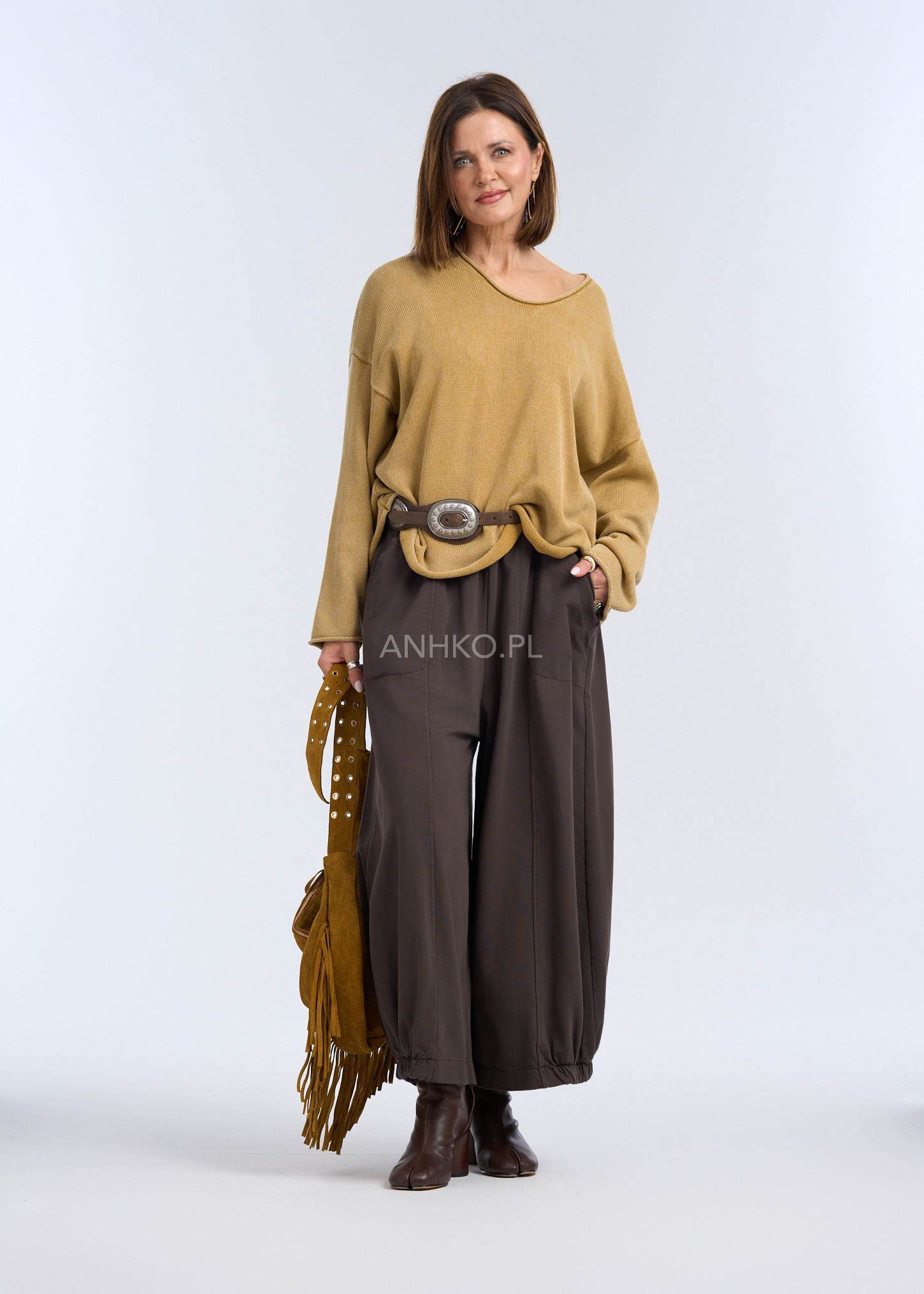 Te spodnie zostały zaprojektowane z myślą o maksymalnym komforcie i uniwersalnym stylu. Luźny krój oraz elastyczna talia sprawiają, że doskonale dopasowują się do sylwetki, nie krępując ruchów. Model posiada praktyczne kieszenie po bokach, które podnoszą funkcjonalność i codzienny charakter spodni. Nogawki zakończone delikatnym ściągaczem nadają całości nowoczesnej formy. Świetnie sprawdzą się w zestawieniu z t-shirtem, swetrem lub bluzą, zarówno na co dzień, do pracy w trybie casual, jak i na spacery czy podróże.