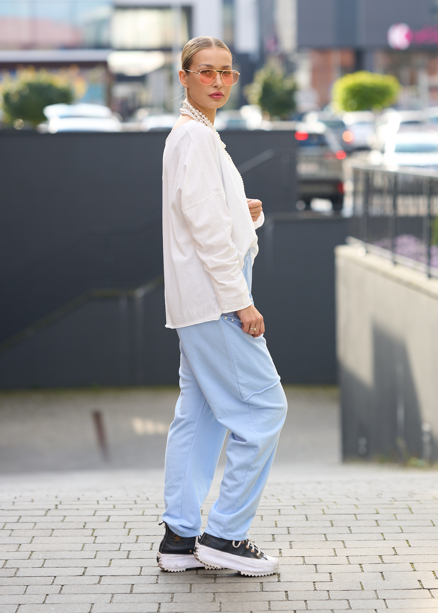 Świetnie wyglądają z prostym t-shirtem, oversize’ową bluzą lub dopasowanym topem. W połączeniu ze sneakersami tworzą nowoczesny miejski look.