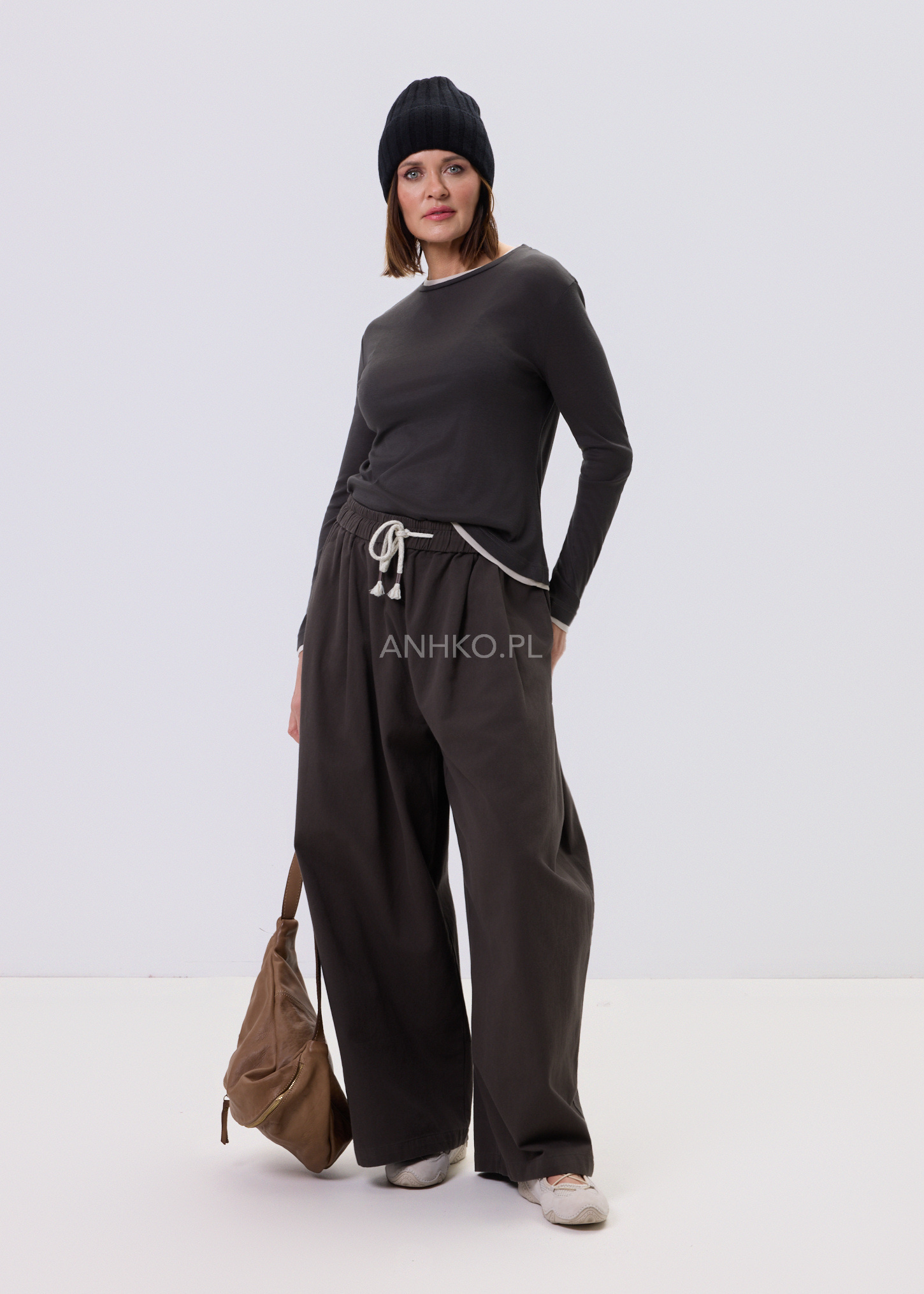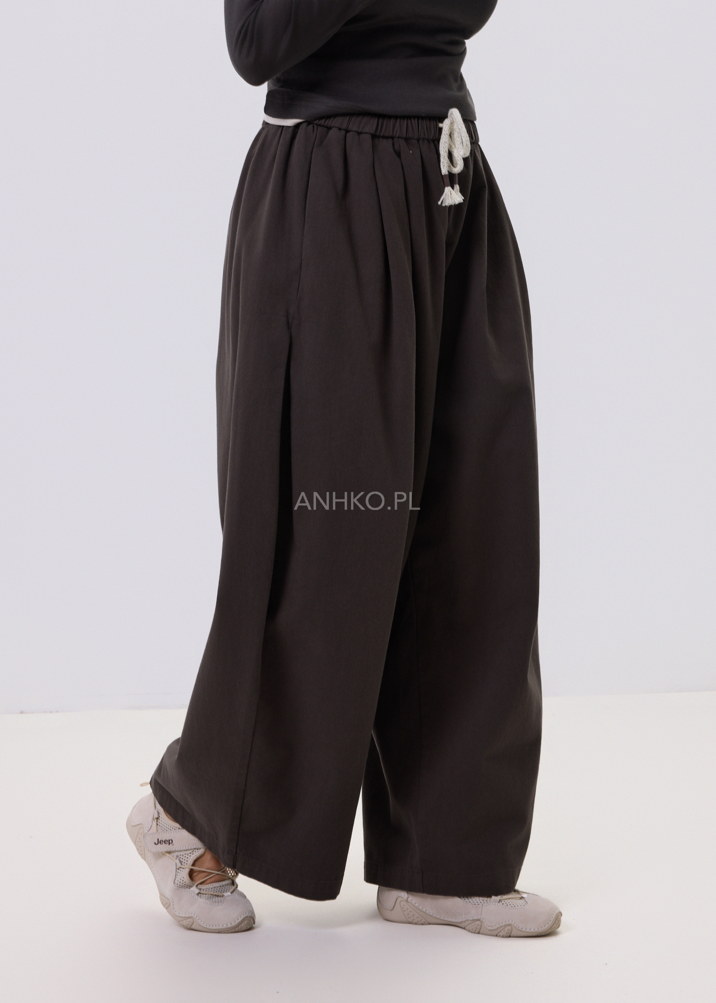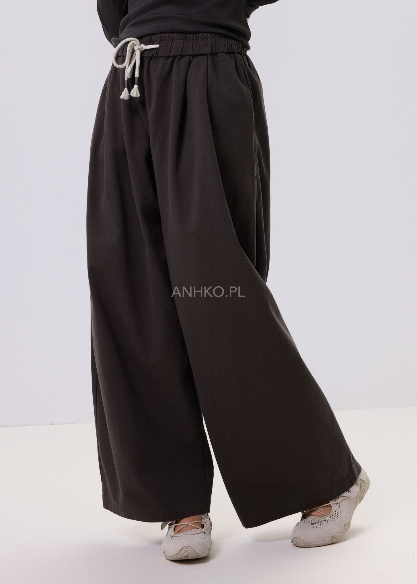 To propozycja dla kobiet, które stawiają na komfort i nowoczesny, miejski styl. Luźny fason z szeroką nogawką zapewnia swobodę ruchów i wpisuje się w aktualne trendy. Elastyczna talia z wiązaniem pozwala dopasować spodnie do sylwetki, a neutralny odcień khaki świetnie łączy się zarówno z basicowymi topami, jak i bardziej wyrazistymi elementami garderoby. To model, który sprawdzi się na co dzień – do sneakersów, botków czy lekkich mokasynów. Idealny wybór na miejski spacer, zakupy czy spotkanie z przyjaciółmi.