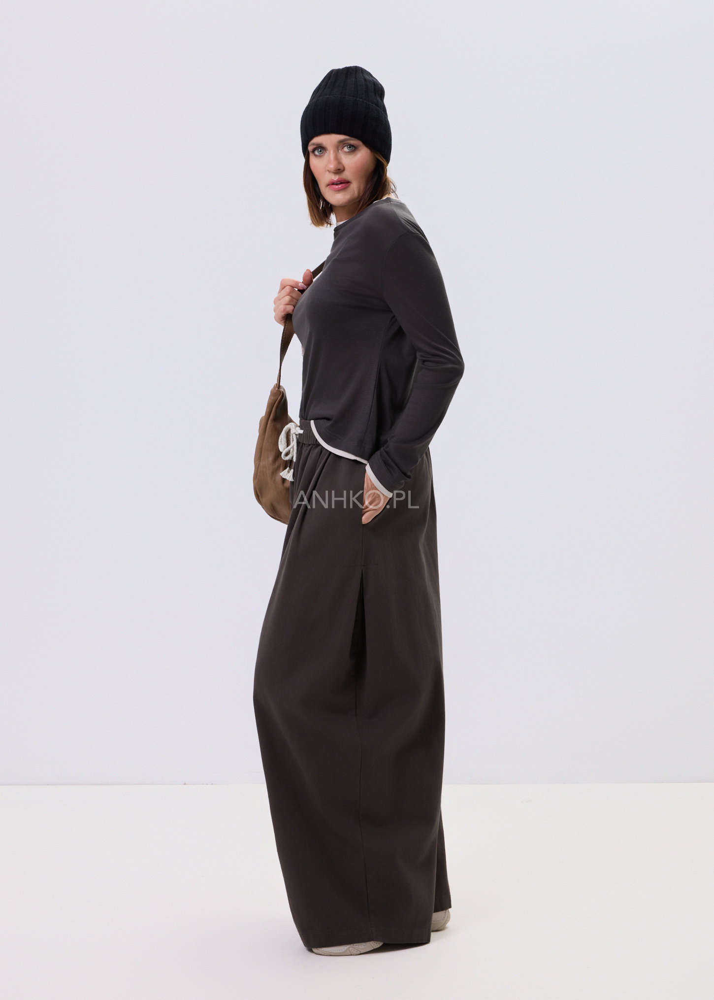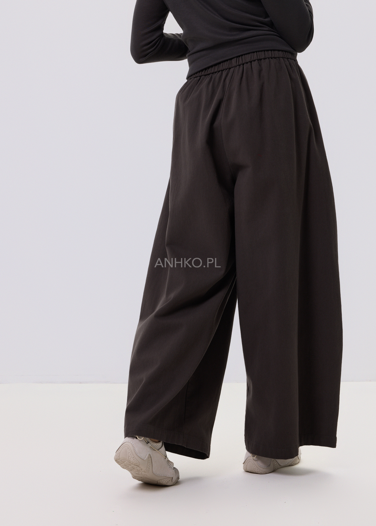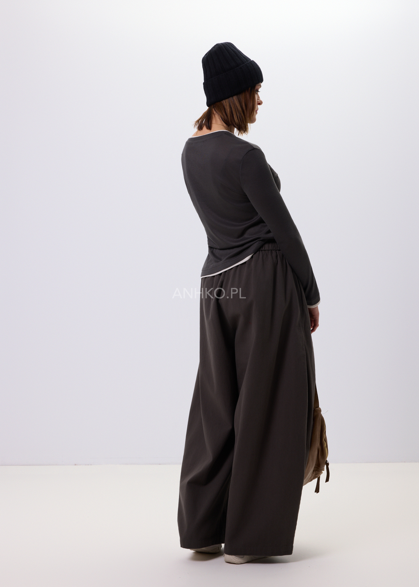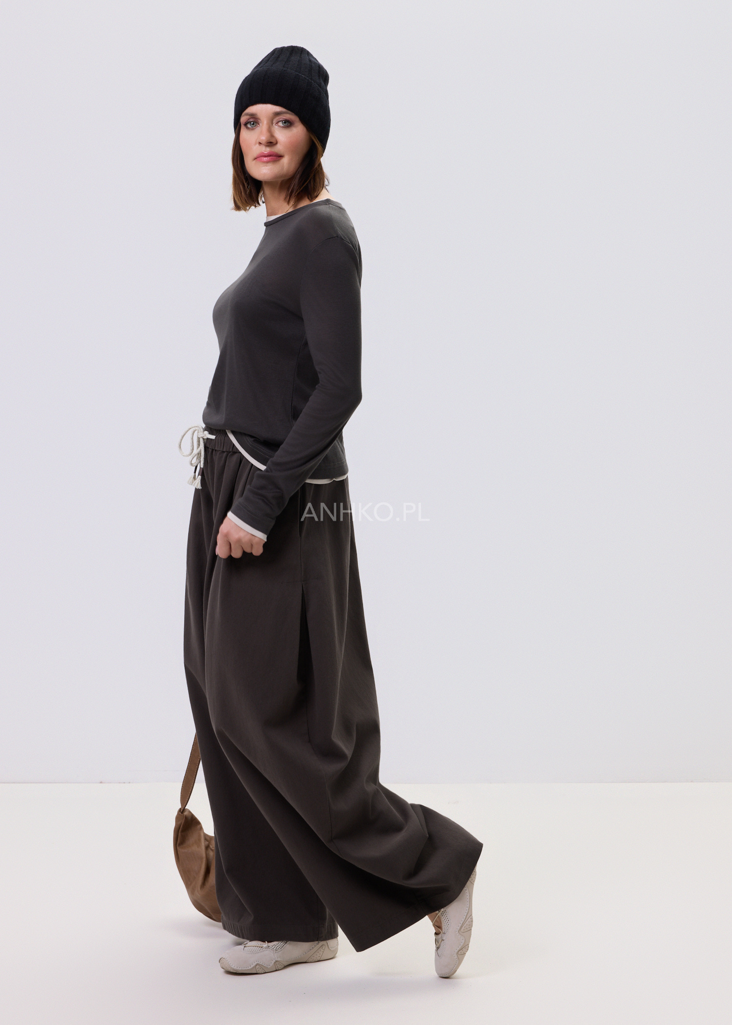 To propozycja dla kobiet, które stawiają na komfort i nowoczesny, miejski styl. Luźny fason z szeroką nogawką zapewnia swobodę ruchów i wpisuje się w aktualne trendy. Elastyczna talia z wiązaniem pozwala dopasować spodnie do sylwetki, a neutralny odcień khaki świetnie łączy się zarówno z basicowymi topami, jak i bardziej wyrazistymi elementami garderoby. To model, który sprawdzi się na co dzień – do sneakersów, botków czy lekkich mokasynów. Idealny wybór na miejski spacer, zakupy czy spotkanie z przyjaciółmi.