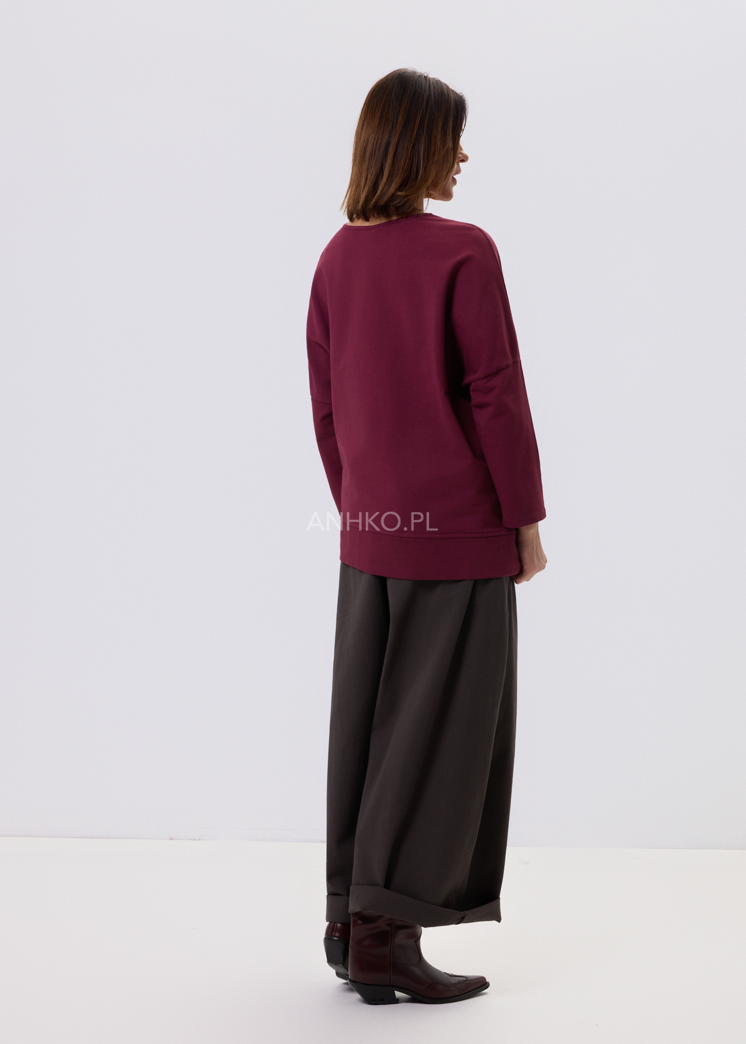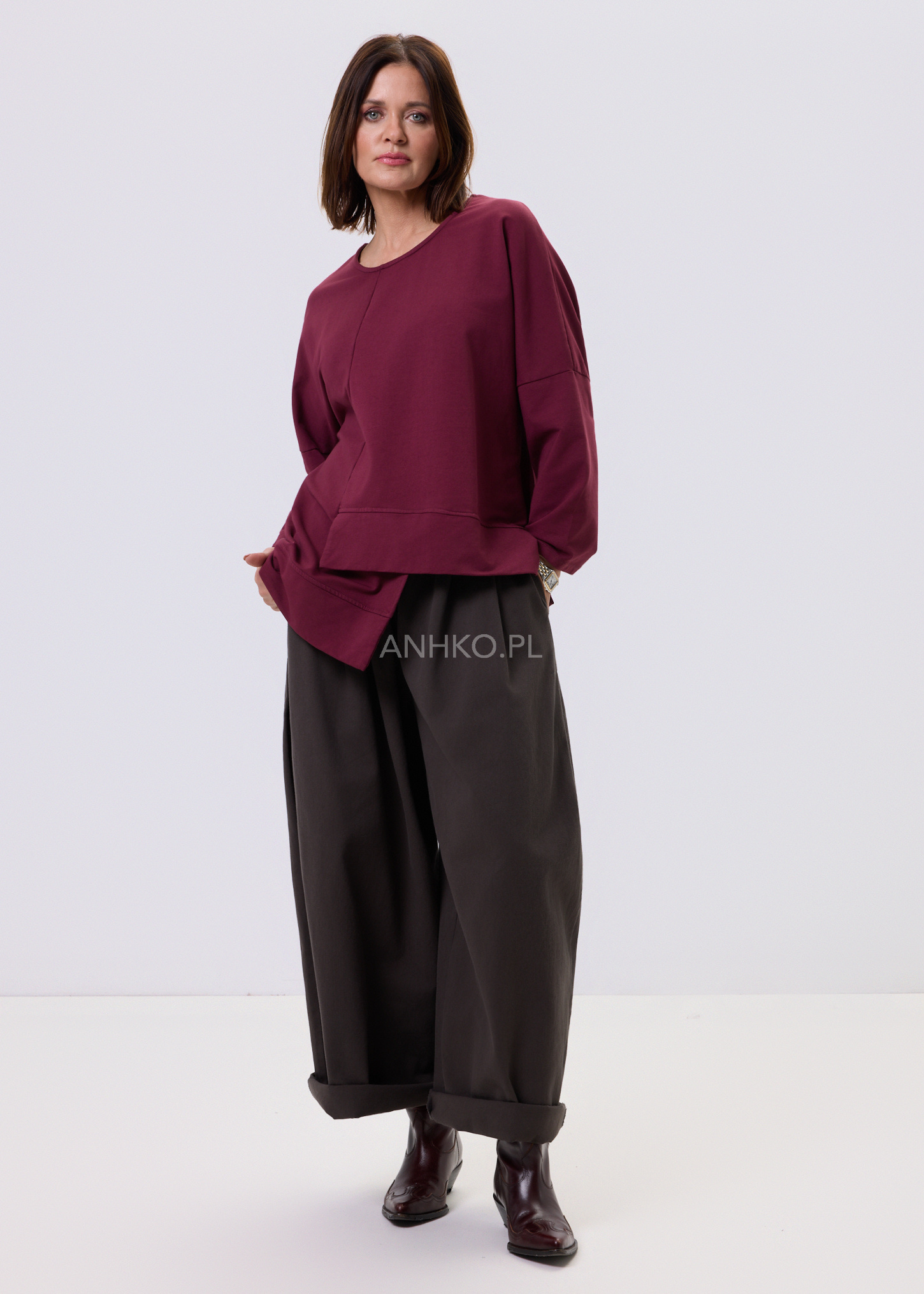 Bluza Ama Bordowa - Bluza z przeszyciami i asymetrycznym dołem to doskonały wybór dla tych, którzy szukają lekkiego, ale stylowego elementu garderoby.
