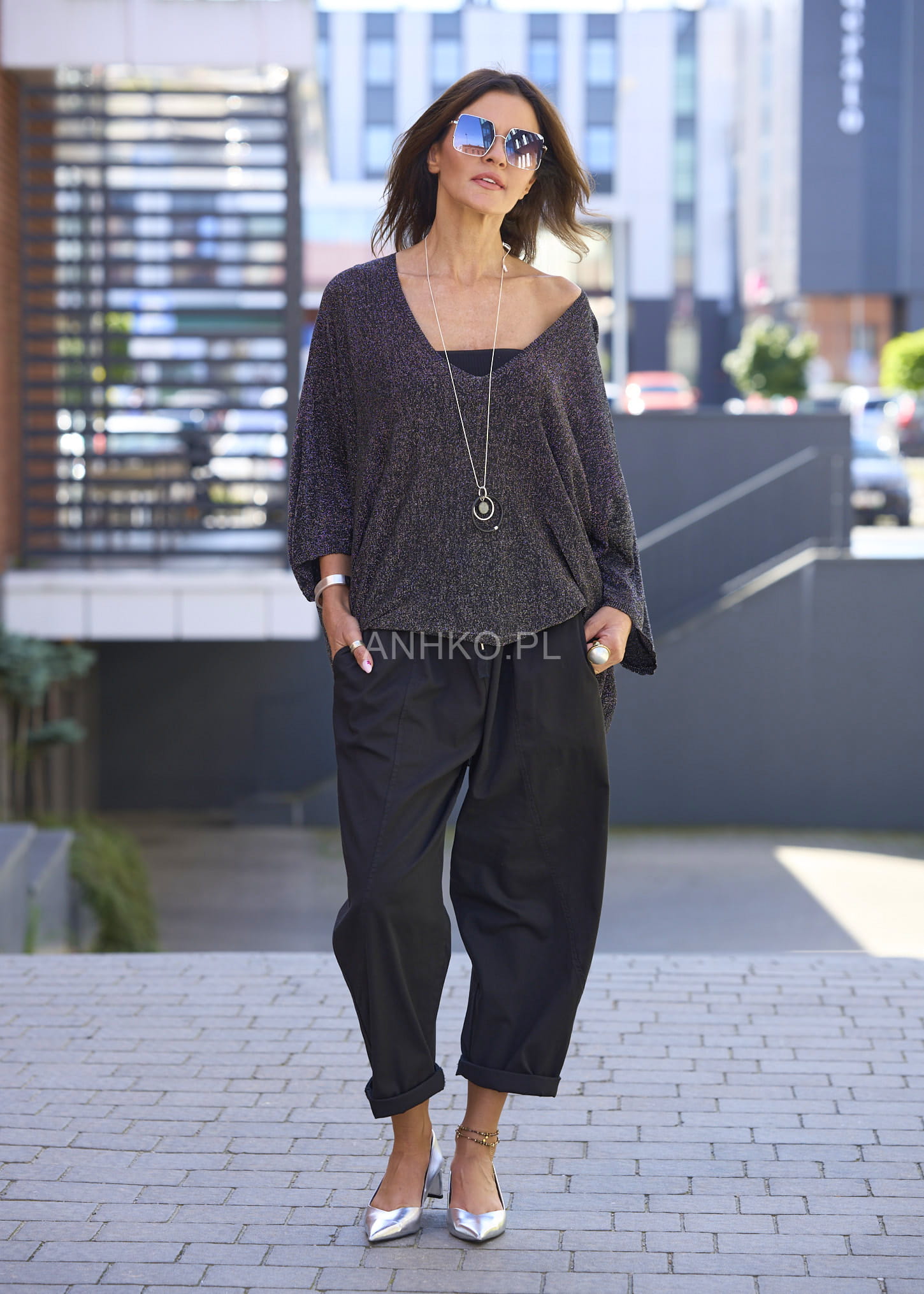 Gładka tkanina z dodatkiem elastanu zapewnia komfort noszenia przez cały dzień i dopasowanie do ruchu. Boczne kieszenie dodają funkcjonalności, a delikatnie obniżony krok i swobodna forma sprawiają, że spodnie prezentują się lekko i nowocześnie. To idealny wybór do stylizacji z dzianinowym swetrem, koszulą czy minimalistycznym topem.