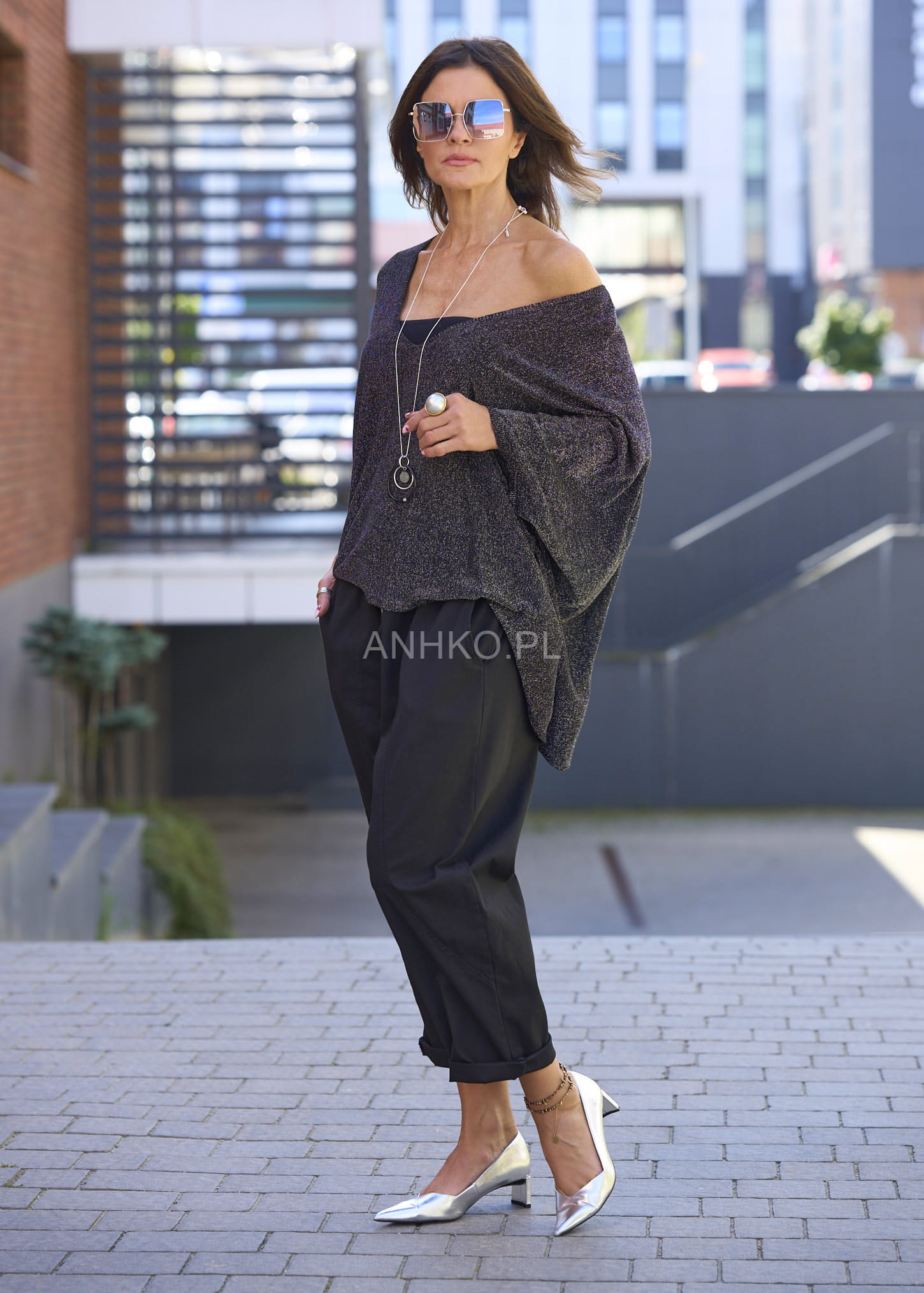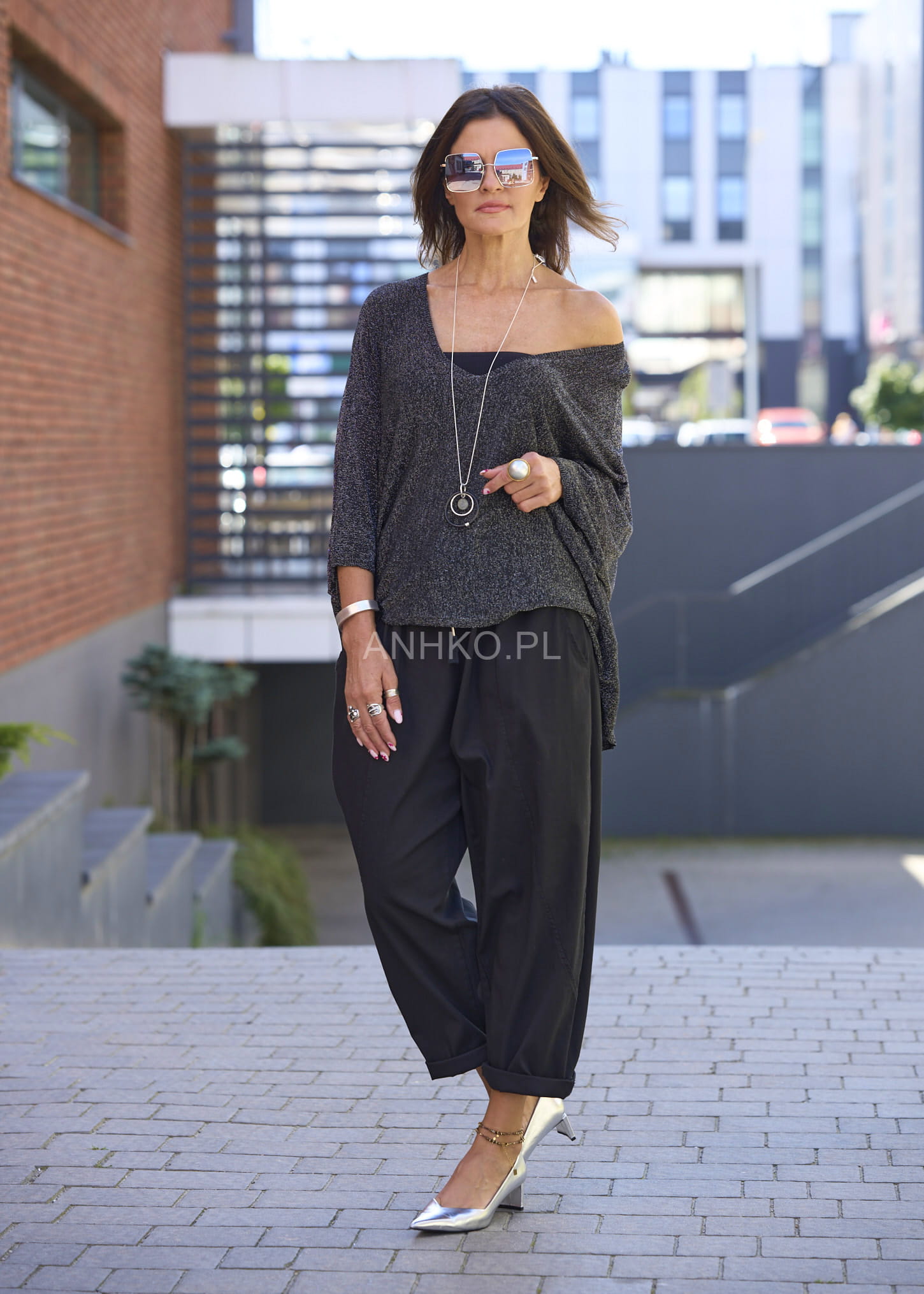 Te spodnie damskie o luźnym kroju typu relaxed pięknie układają się na sylwetce, tworząc swobodną, lekko nonszalancką linię. Elastyczny pas z troczkiem podkreśla talię, a miękko opadające nogawki zakończone podwinięciem nadają całości miejskiego charakteru. Model w kolorze czarnym to ponadczasowa baza stylizacji, która sprawdzi się zarówno w codziennych zestawach, jak i w bardziej dopracowanym looku.