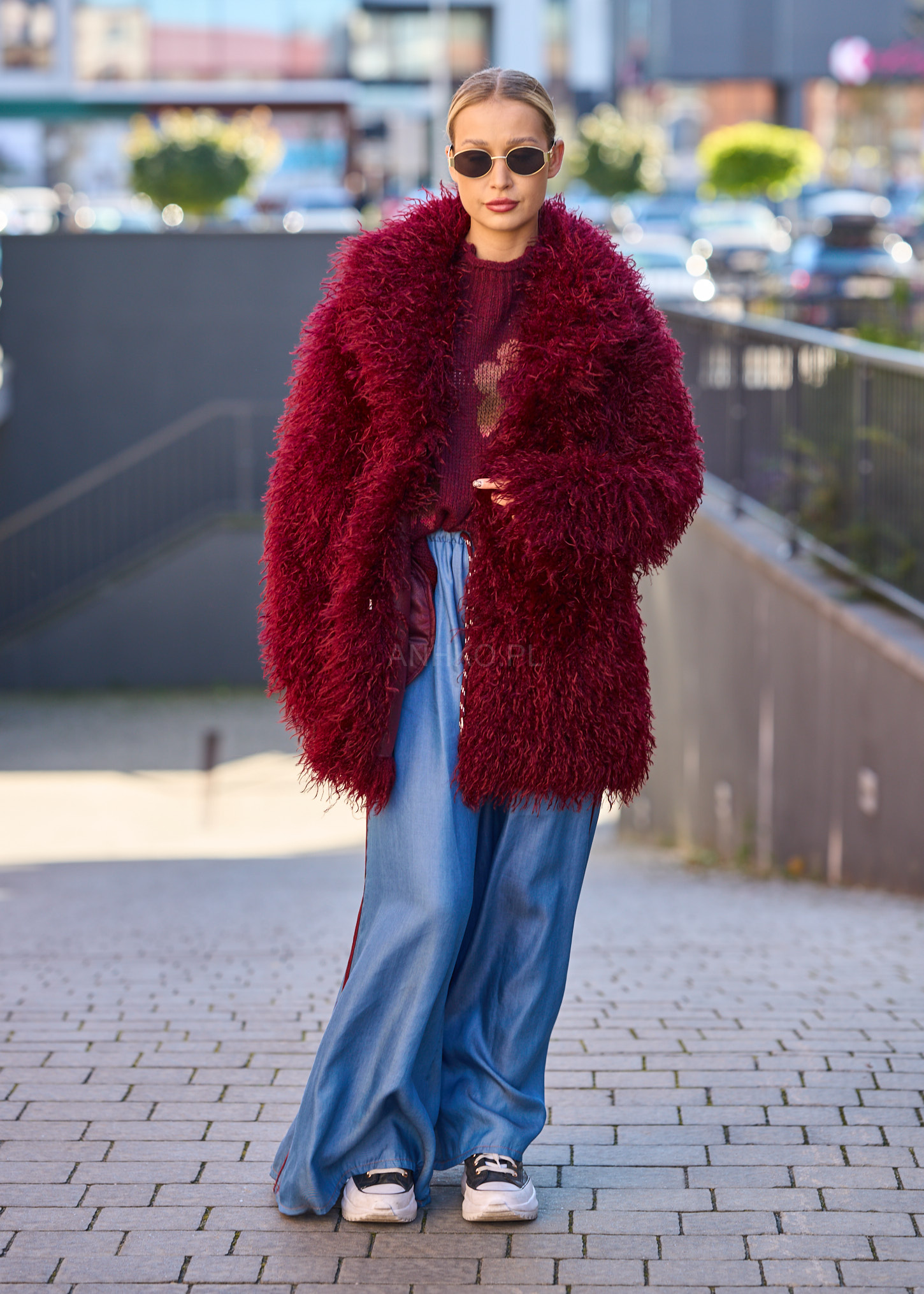 Kurtka Futrzana Fluff Statement Wiśniowa - Stylowy płaszcz typu shaggy w kolorze głębokiego bordo. Zapięcie na pasek podkreśla talię, a miękkie, futrzaste wykończenie dodaje charakteru każdej stylizacji. Idealny na sezon jesienno-zimowy – wyróżnij się, zachowując komfort i ciepło.