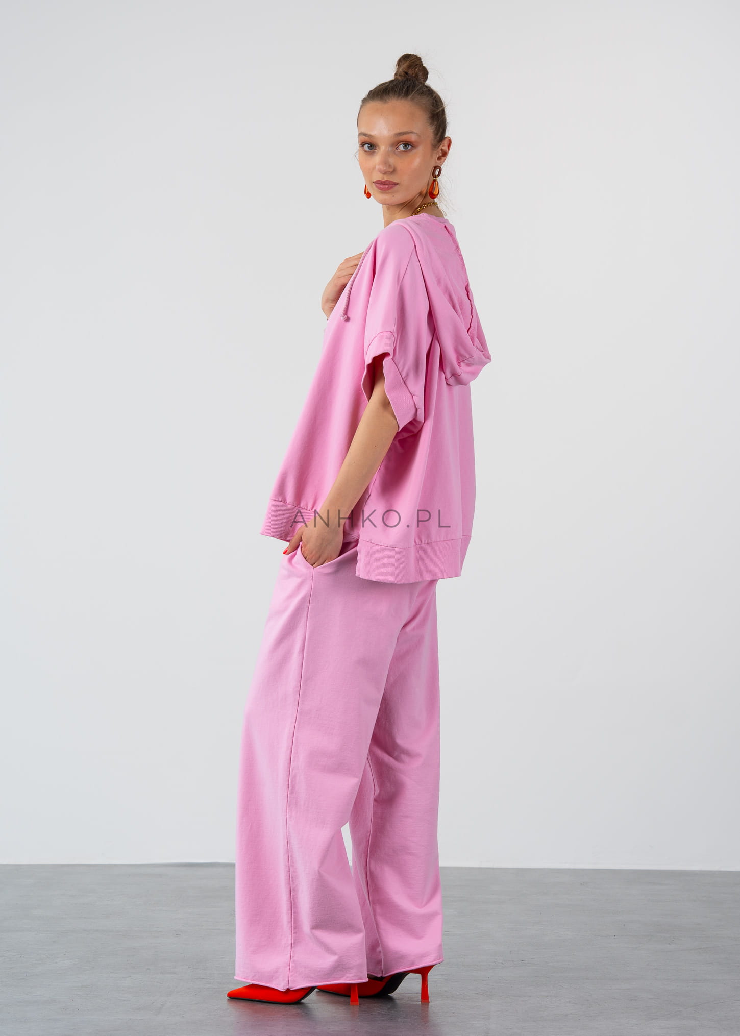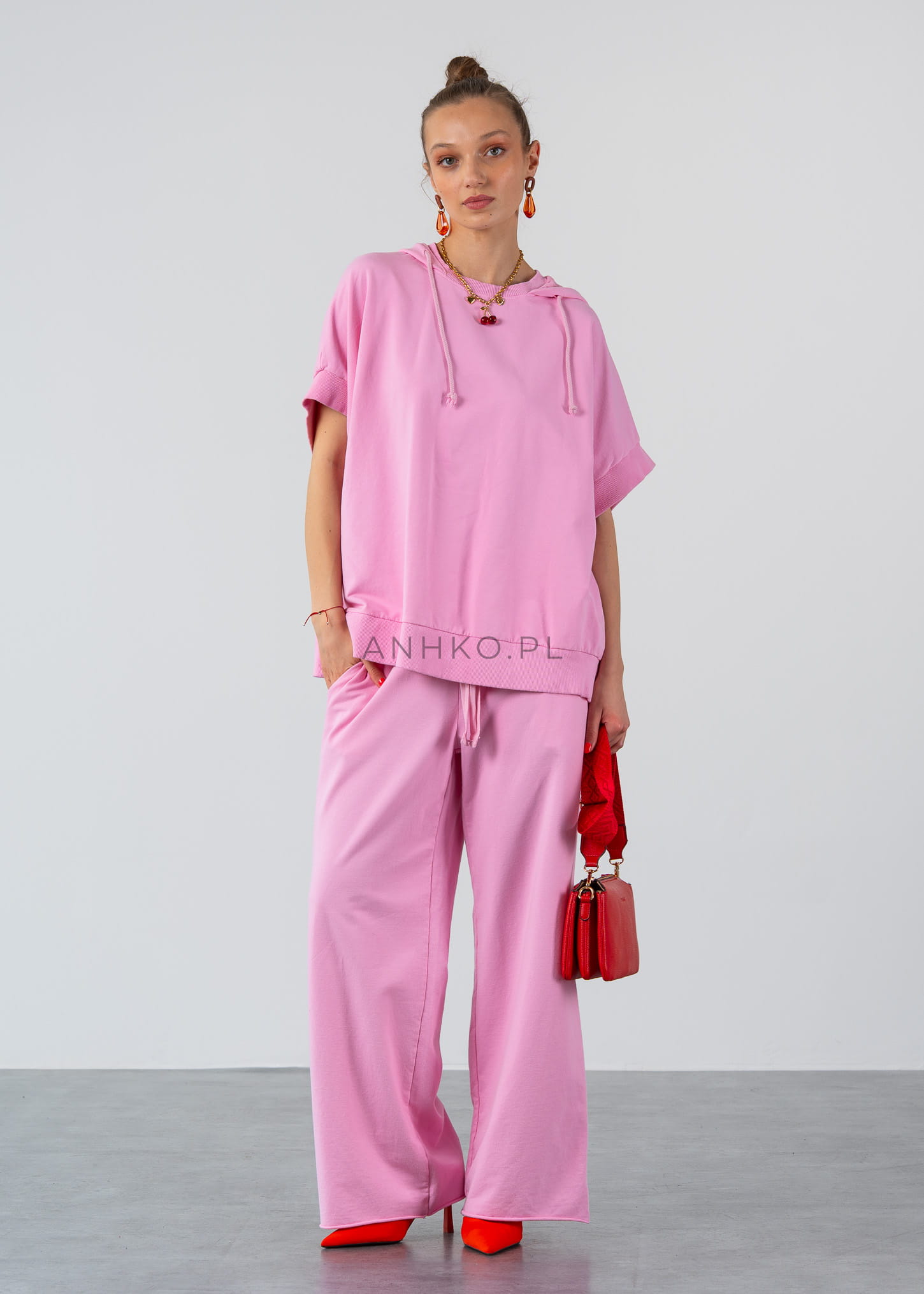 Bluzka z Kapturem Sunny Love Różowa - Stylowa, oversizowa bluzka w różowym kolorze. Wykonana z wysokiej jakości bawełny z dodatkiem elastanu, zapewnia maksymalny komfort i swobodę ruchów. Idealna na co dzień – świetnie pasuje do jeansów, spódnic i legginsów.