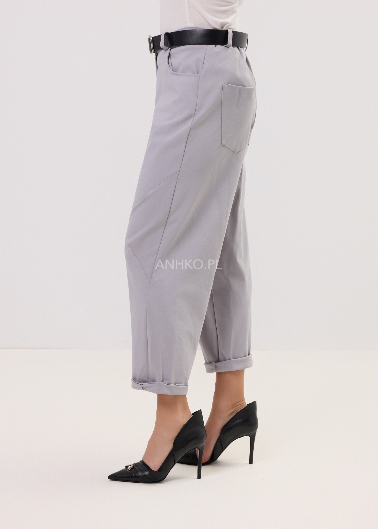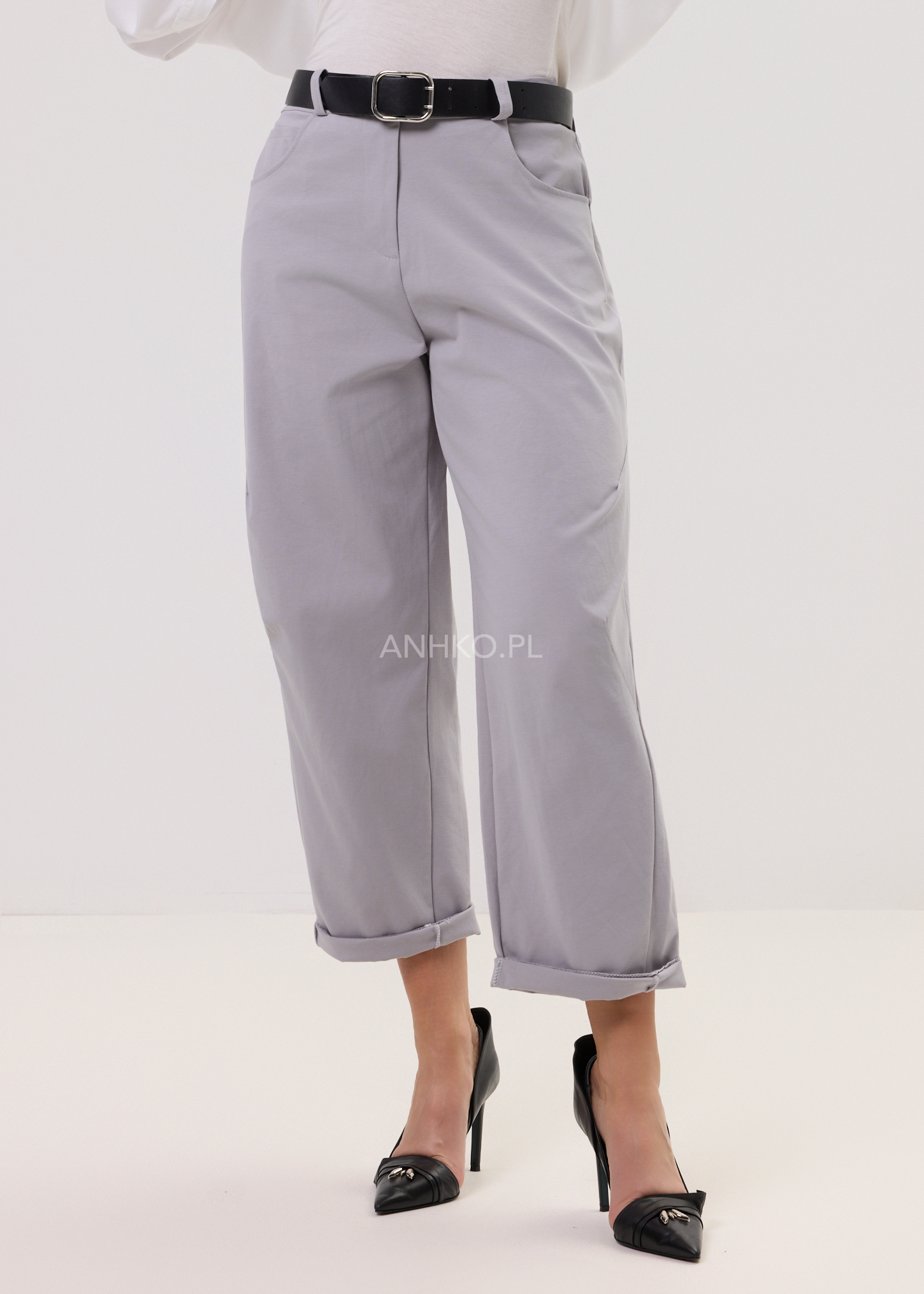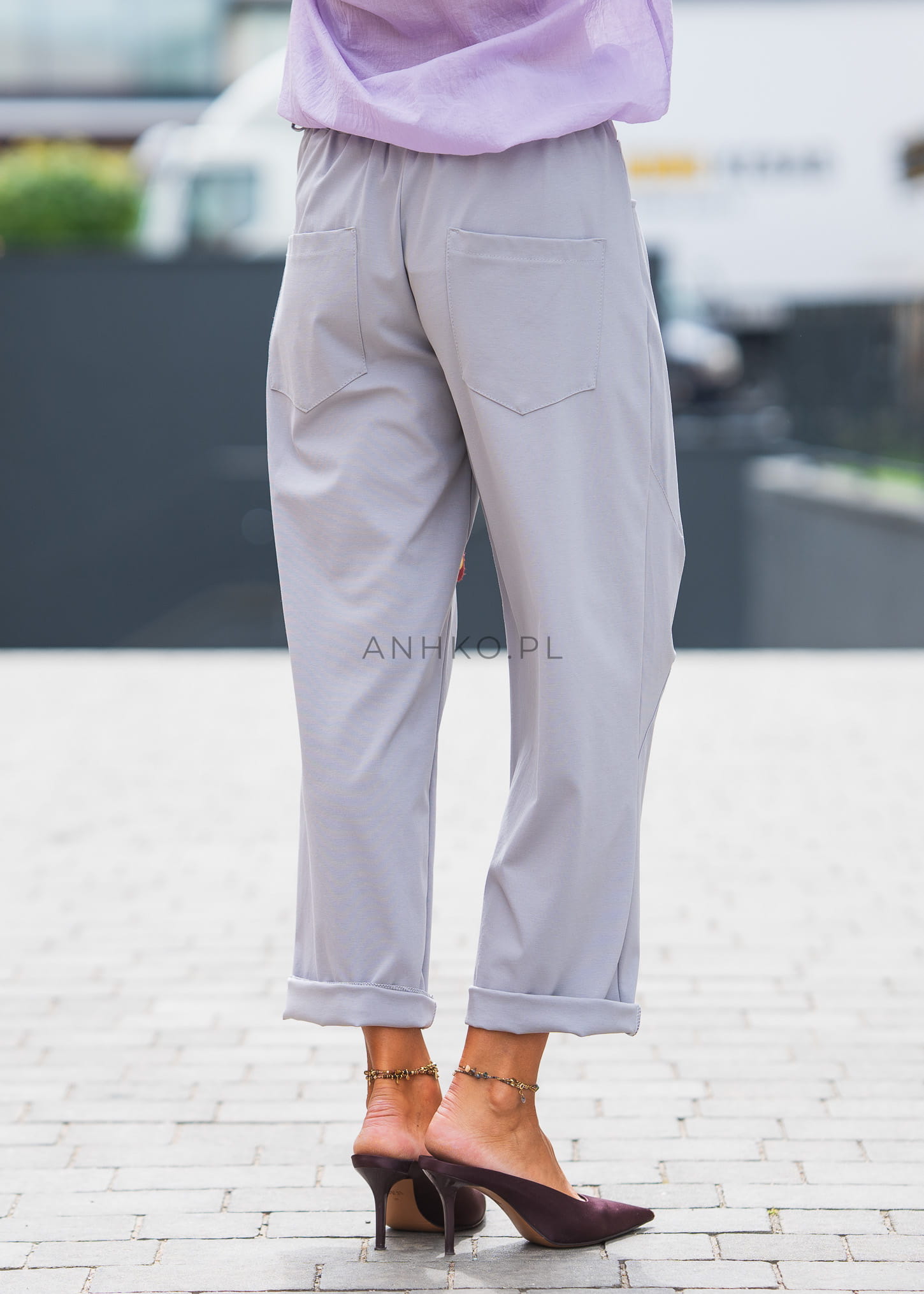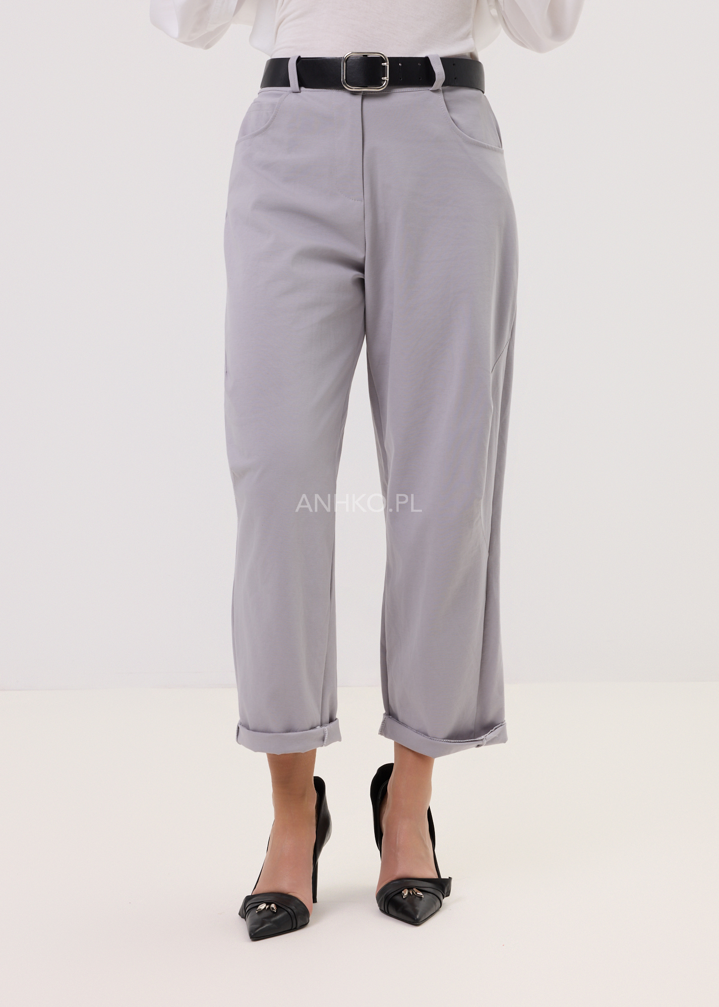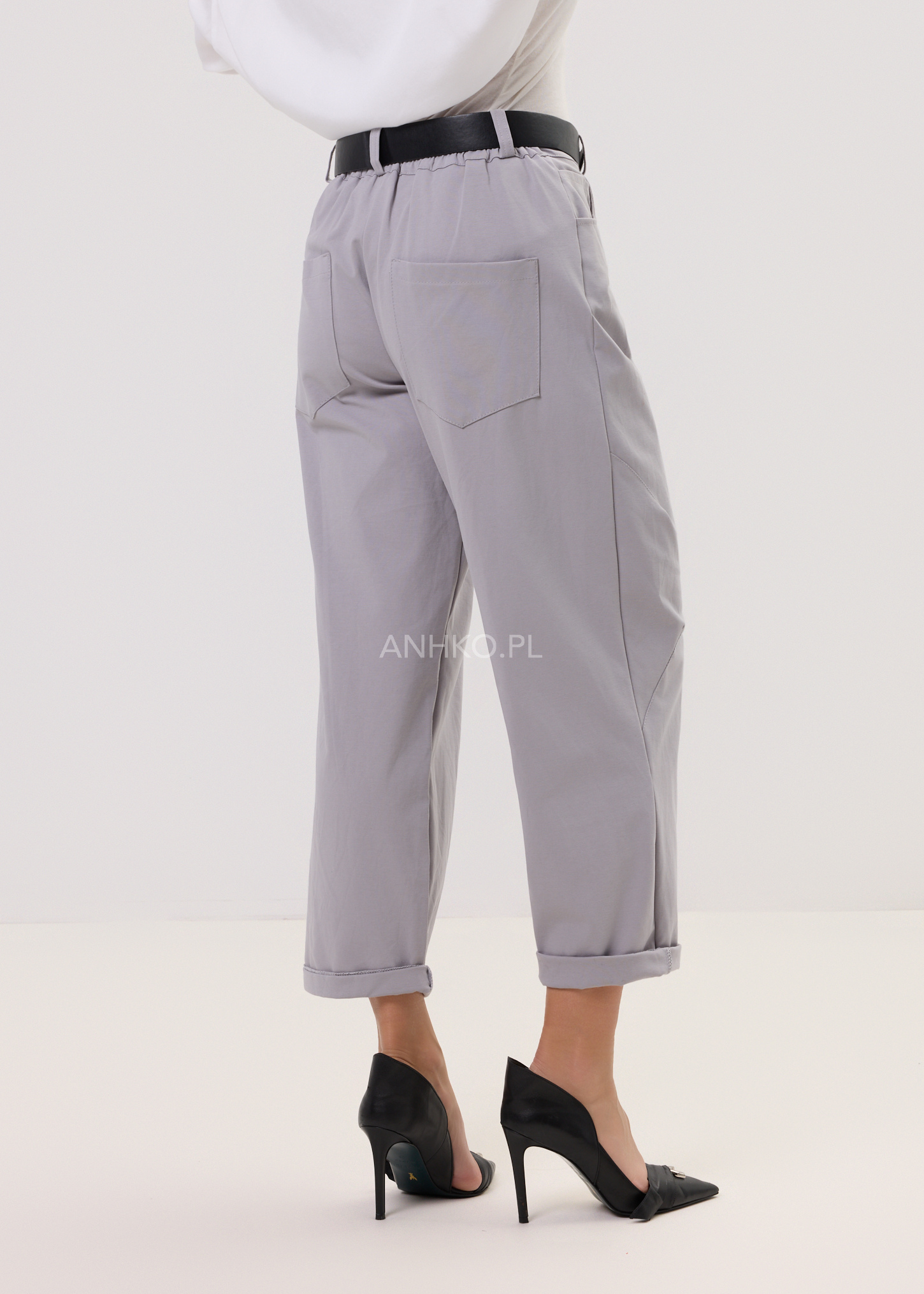 To minimalistyczne spodnie, które łączą miejski styl z maksymalnym komfortem. Dzięki elastycznemu pasowi i miękkiej mieszance wiskozy z nylonem i elastanem idealnie dopasowują się do sylwetki. Model ma prostą nogawkę, kieszenie z przodu i tyłu oraz pasek z guzikiem. Stonowany, jasnoszary kolor sprawia, że będą pasować zarówno do klasycznej koszuli, jak i do luźnego t-shirtu. Sprawdzą się w pracy, na spacerze, w podróży czy na niezobowiązujące spotkania.