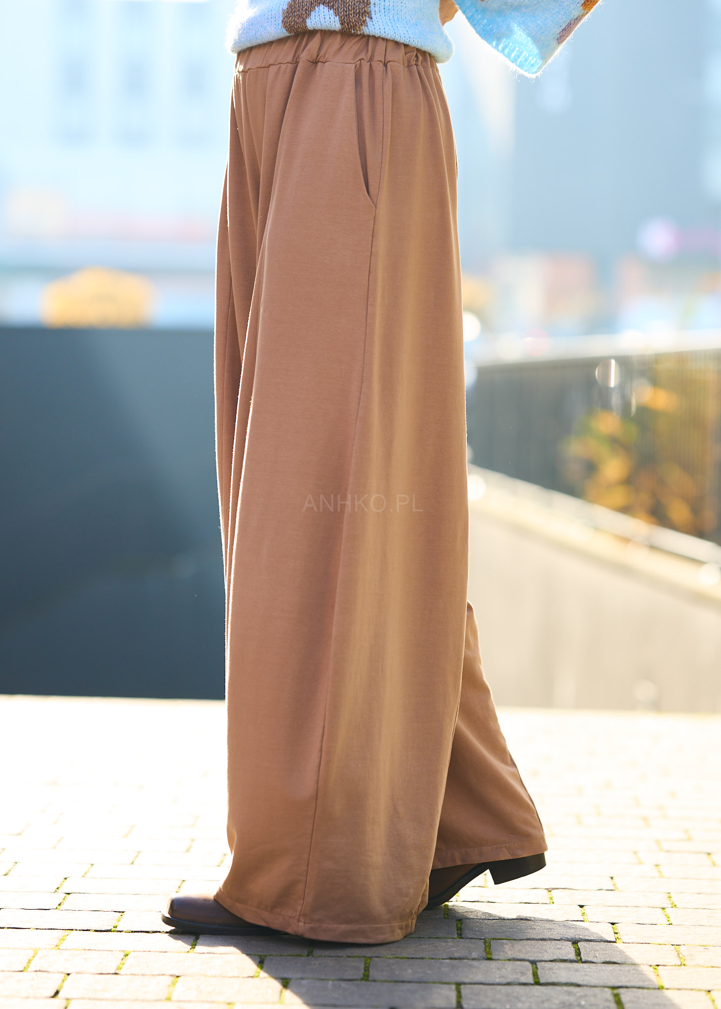 To uniwersalny model, który łączy komfort i styl. Wykonane z wysokiej jakości mieszanki bawełny i elastanu, gwarantują swobodę ruchów i wygodę przez cały dzień. Szerokie nogawki dodają elegancji, a elastyczna talia sprawia, że dopasowują się do każdej sylwetki. Te spodnie idealnie komponują się zarówno z elegancką koszulą i szpilkami, jak i z luźnym T-shirtem oraz sneakersami. Doskonałe na spotkania biznesowe, casualowe wyjścia czy wieczorne kolacje.