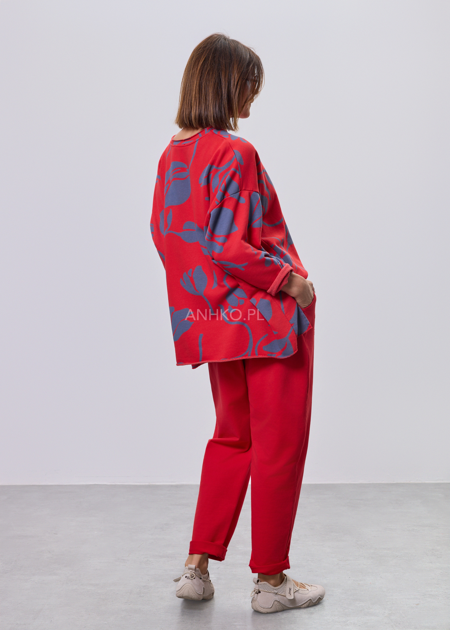 Bluza Hidden Czerwona - Oversizowa bluza o artystycznym charakterze, zaprojektowana z myślą o wygodzie i wyrazistym stylu. Swobodny krój, długie rękawy i nowoczesny print sprawiają, że to idealny wybór na codzienne, miejskie stylizacje.