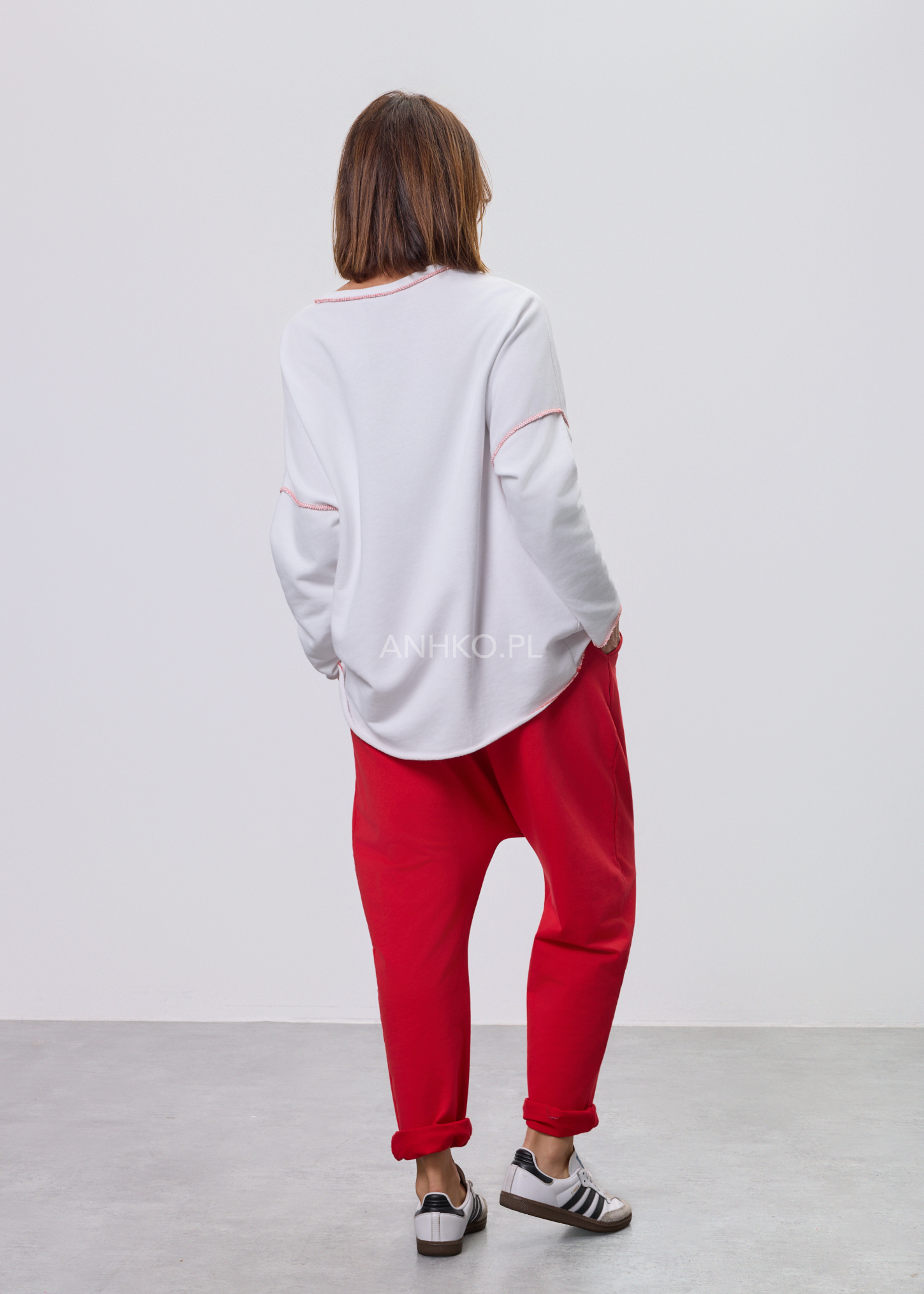 Bluza Milano 95 Biała - Nowoczesna bluza oversize o minimalistycznej formie z wyrazistym haftem i kontrastowymi przeszyciami. Komfortowa, lekka i stylowa – idealna do codziennych stylizacji miejskich, podróżnych i casualowych. Świetnie łączy wygodę z modowym charakterem.
