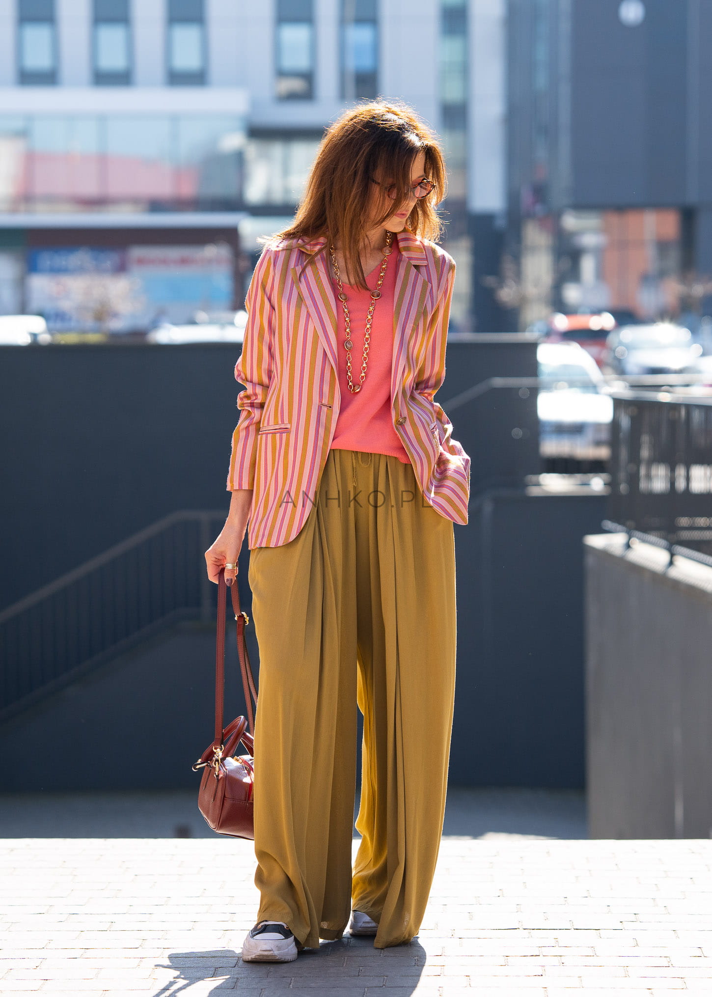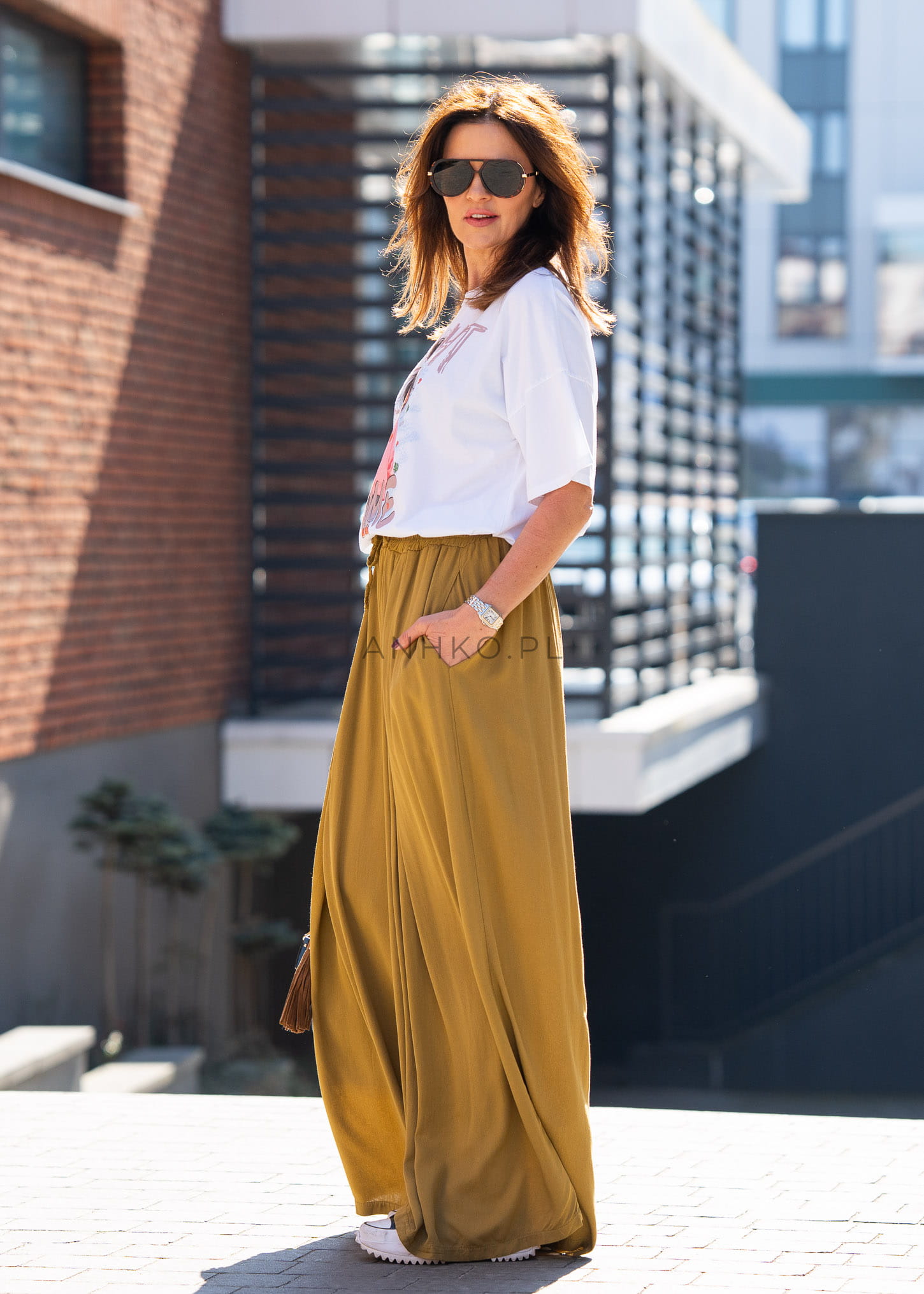 Elastyczna talia ze sznurkiem pozwala na indywidualne dopasowanie, a przewiewna wiskoza sprawia, że spodnie są niezwykle przyjemne w noszeniu przez cały dzień. To model, który doskonale odnajduje się zarówno w miejskich stylizacjach, jak i w bardziej dopracowanych zestawach z eleganckimi dodatkami.