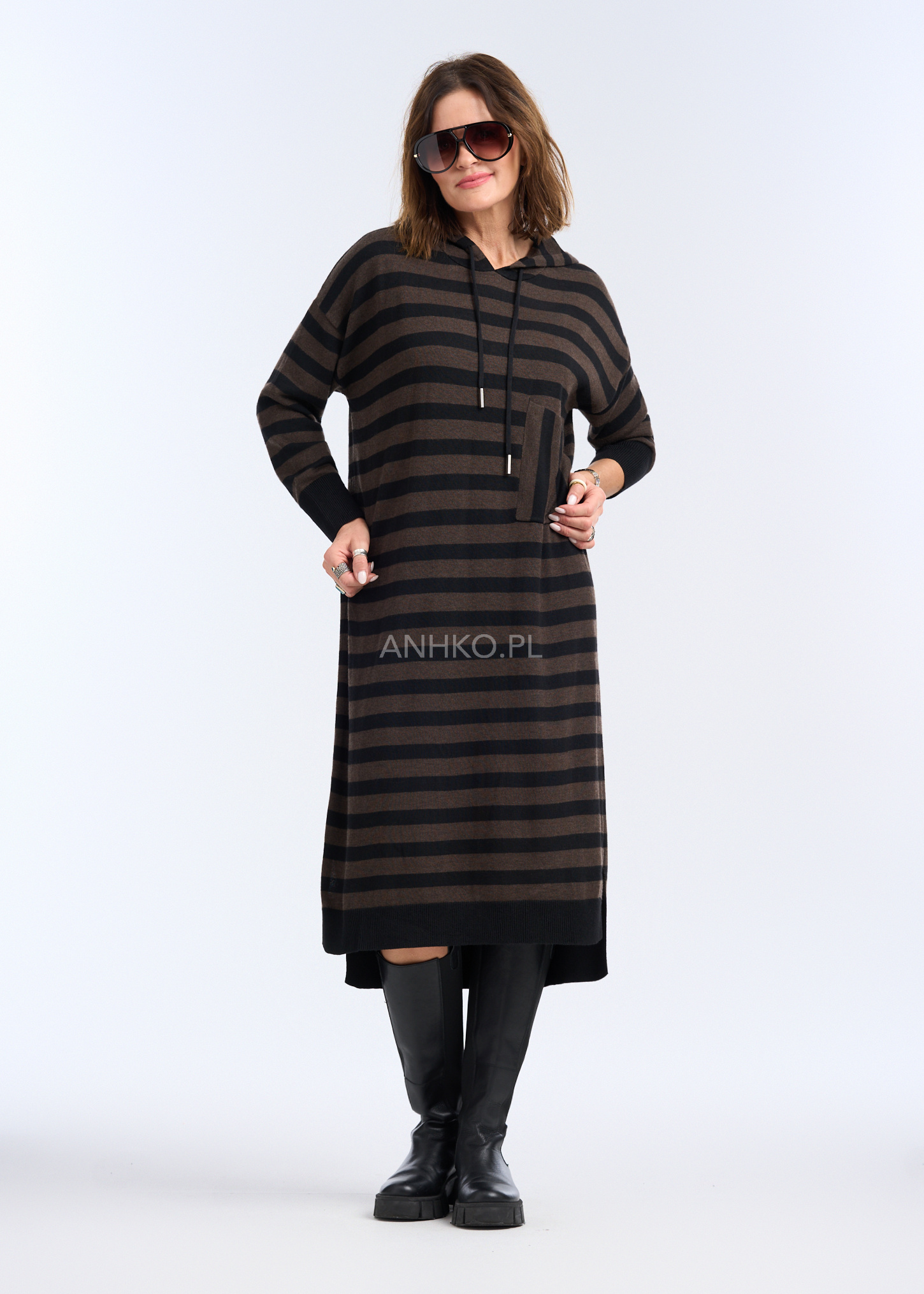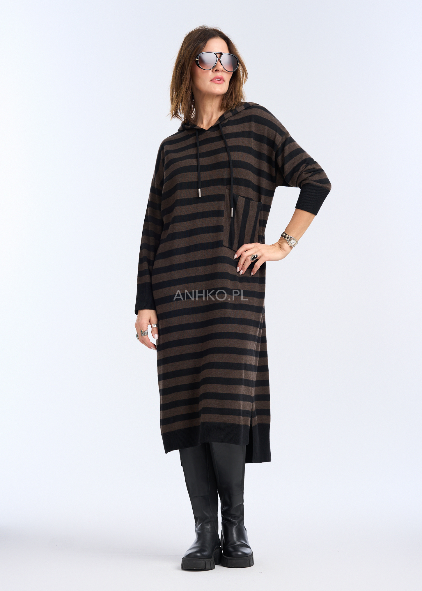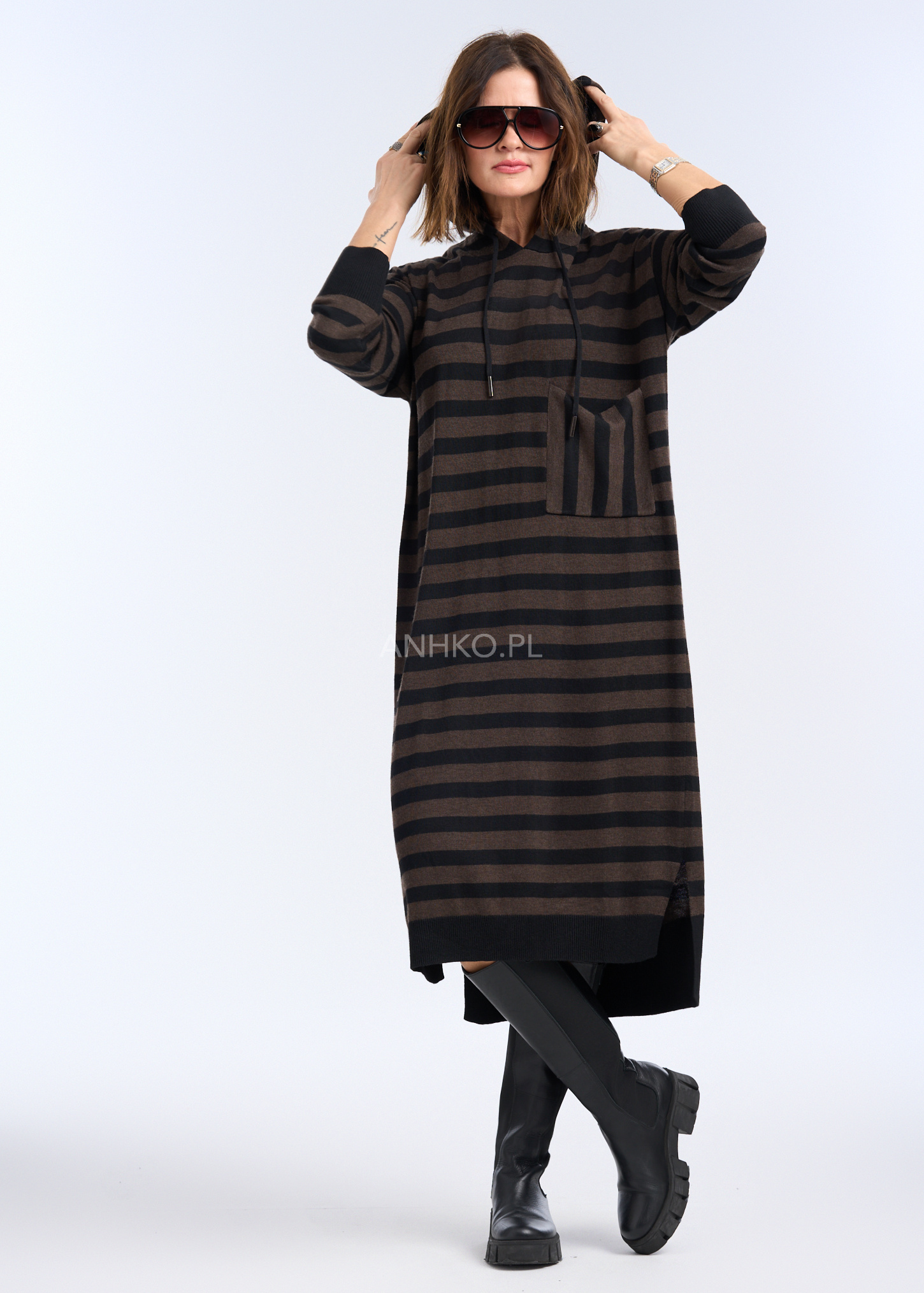 Sukienka Dzianinowa Elowyn Drift Brązowo-Czarna