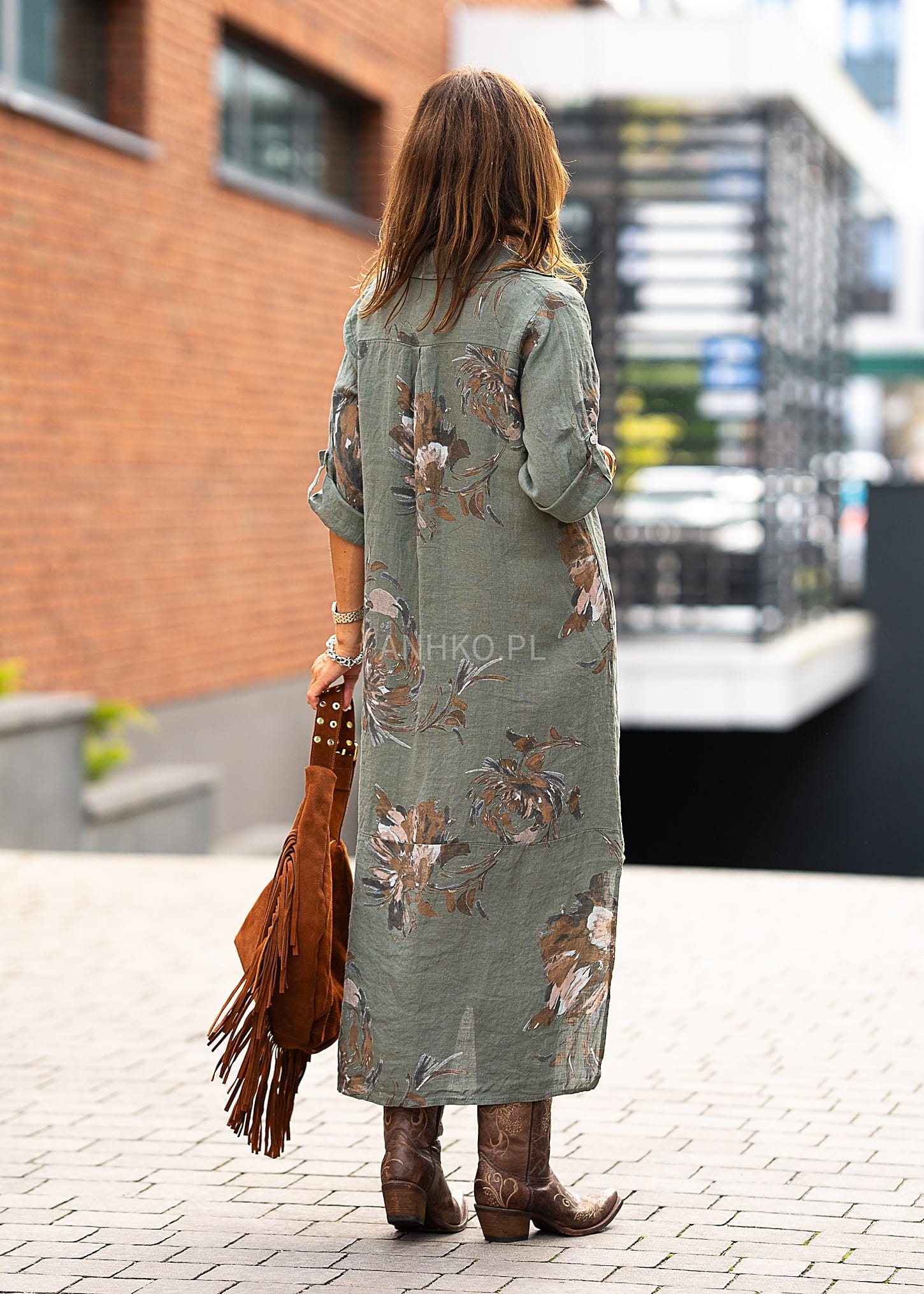 To sukienka, która zachwyca naturalnością i włoskim stylem. Jest przewiewna, lekka i idealna na lato. Długość maxi, klasyczny kołnierzyk i zapięcie na guziki nadają jej swobodny, ale elegancki charakter. Roślinny wzór w odcieniach brązu wprowadza subtelny klimat boho. Można ją nosić jako sukienkę lub narzutkę – świetnie sprawdzi się na plaży, w mieście, na wakacjach czy podczas nieformalnych spotkań. Połącz ją z sandałami, espadrylami lub klapkami.