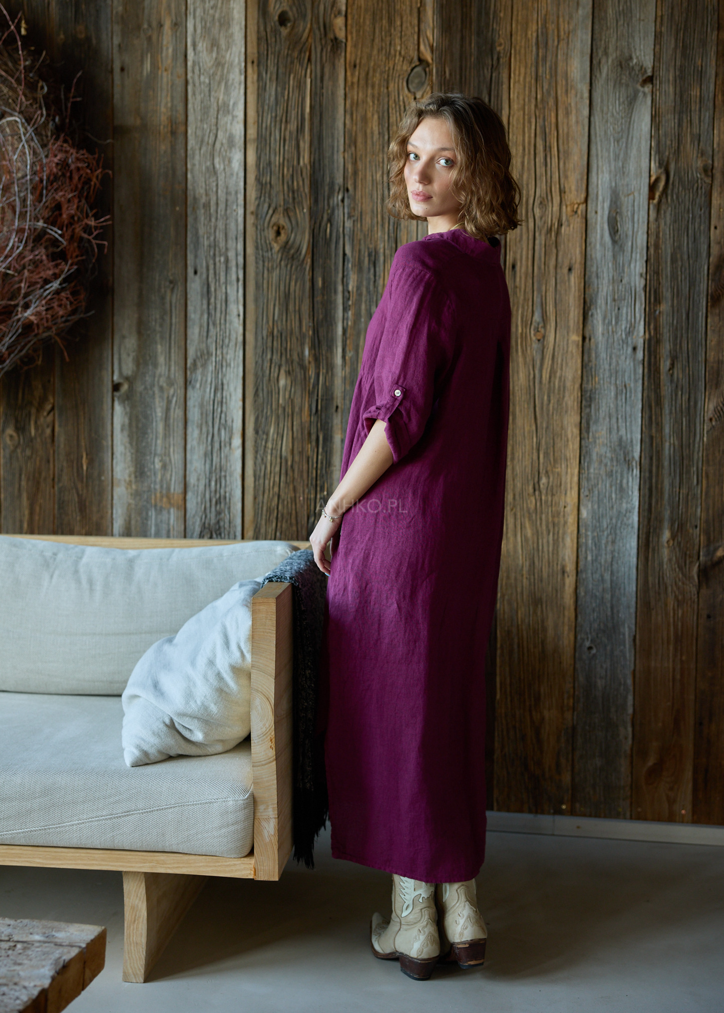 Sukienka Lniana Molina Long Śliwkowa
