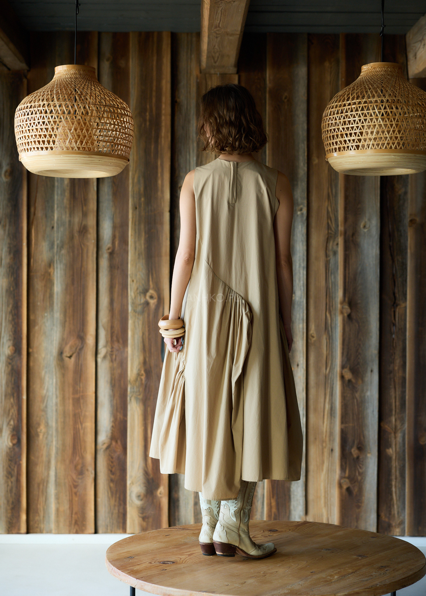 Luźna konstrukcja i lekki, naturalny materiał zapewniają komfort noszenia, a praktyczne kieszenie dodają funkcjonalności. To model dla kobiet, które lubią wyróżniać się stylem – idealny do miejskich stylizacji z nutą avant-garde.
