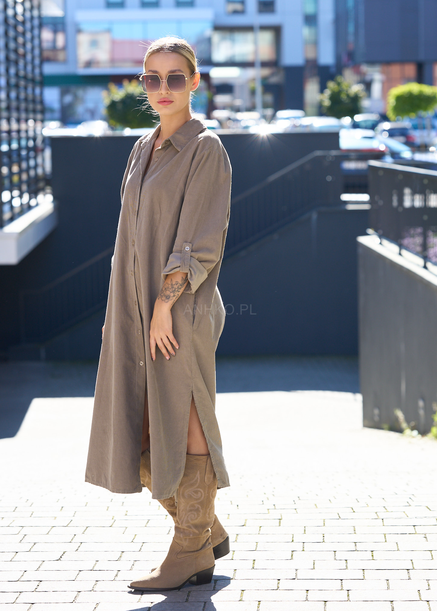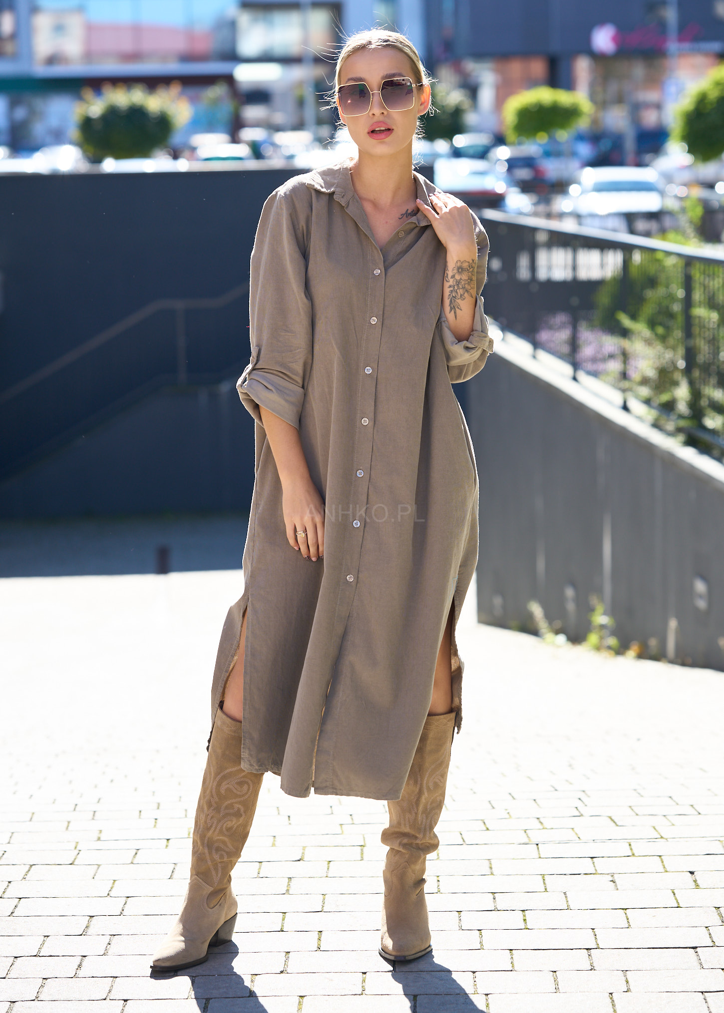 Ta wyjątkowa sukienka koszulowa to połączenie wygody, elegancji i codziennego stylu. Wykonana z wysokiej jakości bawełny, zapewnia komfort noszenia przez cały dzień. Delikatny, jednolity kolor oraz klasyczny kołnierzyk dodają jej subtelnej elegancji, a luźny krój sprawia, że jest idealna zarówno na formalne, jak i mniej oficjalne okazje. Zapinana na guziki z przodu, umożliwia regulację głębokości dekoltu. Sukienka posiada również praktyczny, długi rękaw, który można podwinąć i przypiąć guzikiem, co nadaje jej dodatkowego, casualowego charakteru. Idealnie komponuje się z różnymi dodatkami, tworząc wiele ciekawych stylizacji.