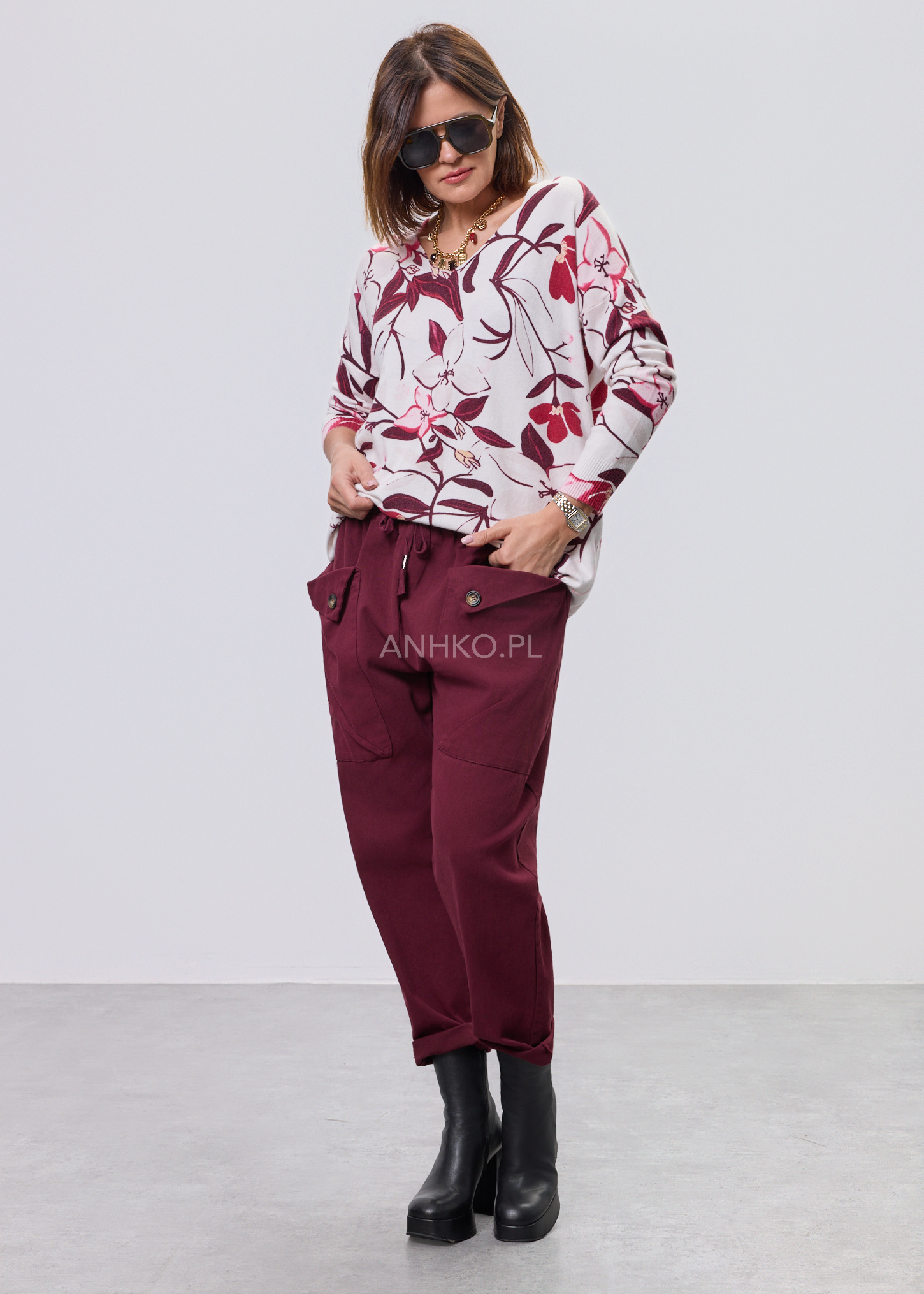 Spodnie Silent Bordowe - Spodnie o nowoczesnym kroju, stworzone z myślą o komforcie i funkcjonalności. Elastyczny pas, praktyczne kieszenie oraz miękka, przyjemna w dotyku struktura sprawiają, że model idealnie sprawdzi się w codziennych i casualowych stylizacjach.